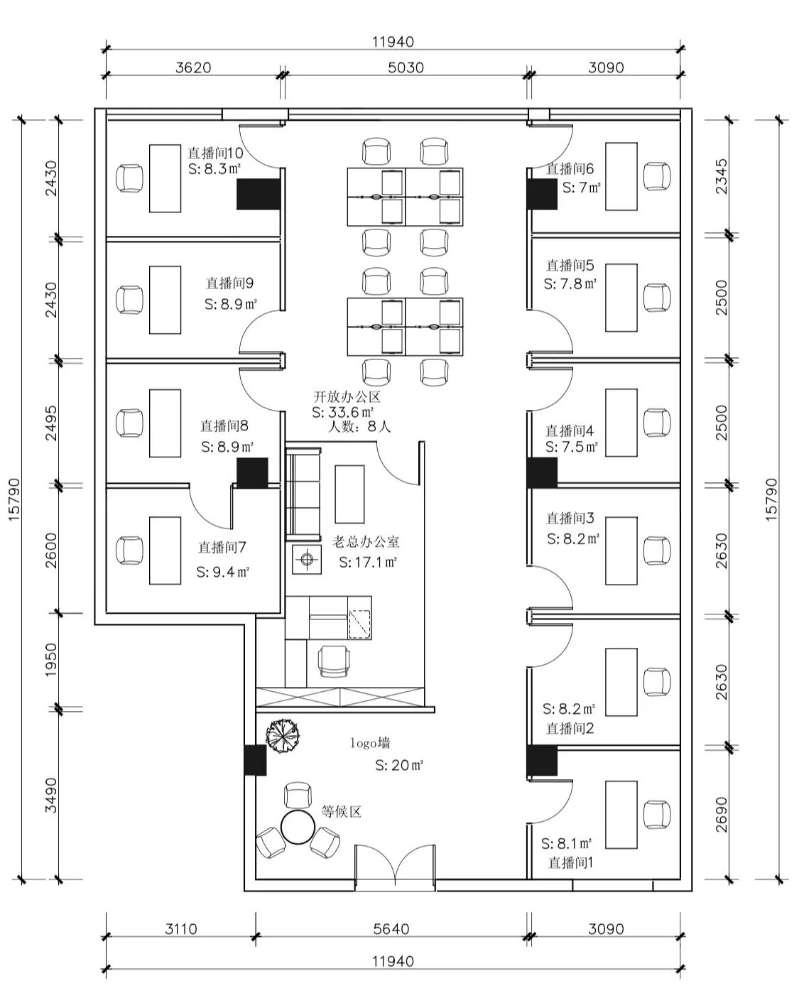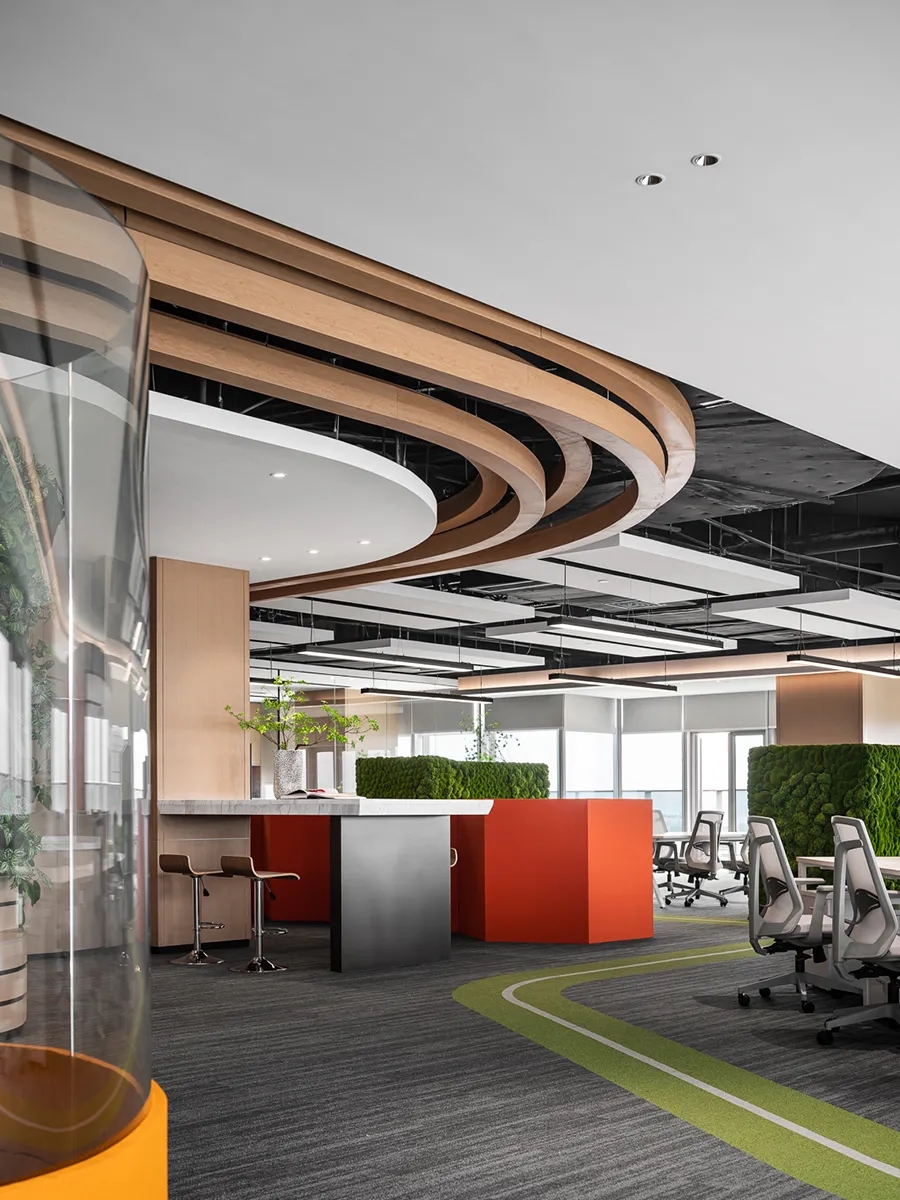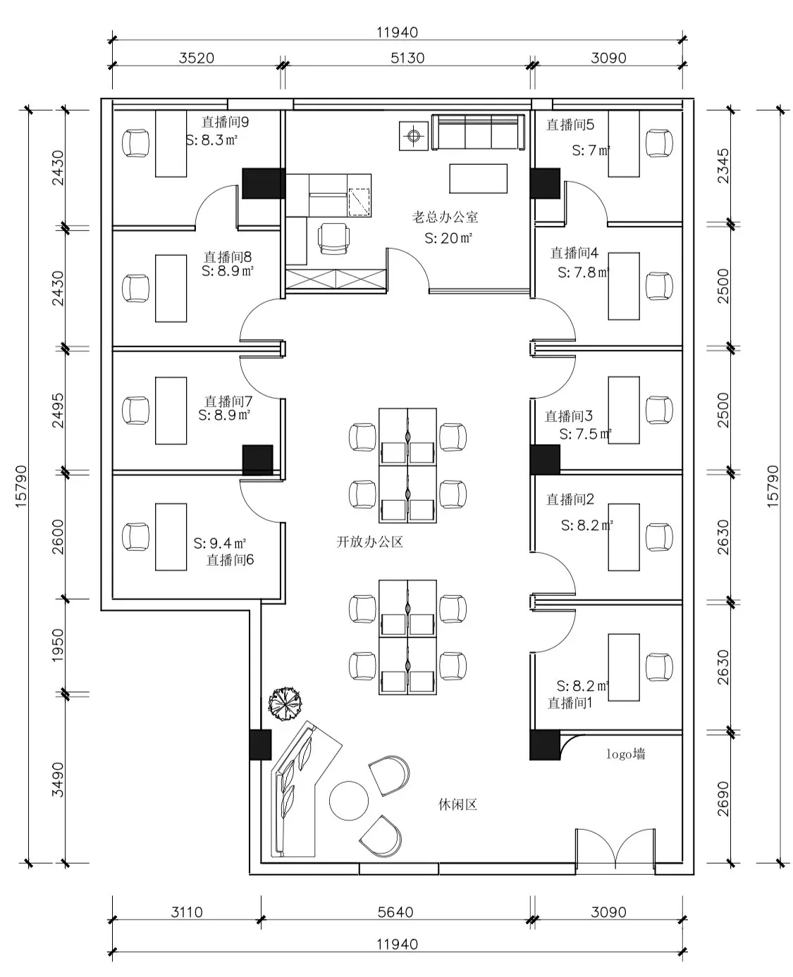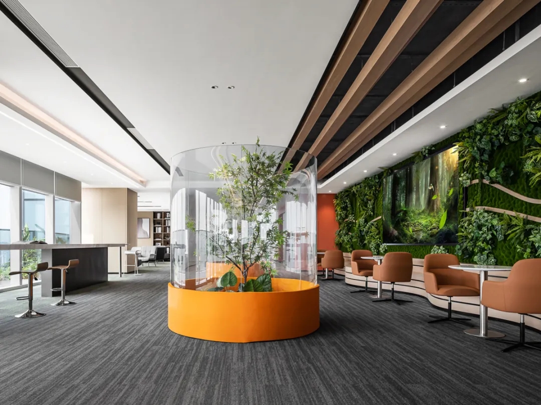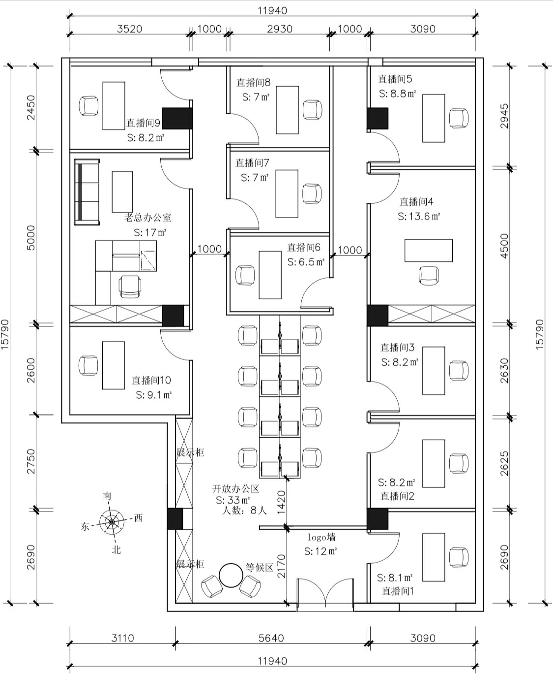 这个办公空间主要为服装材料研发部和设计部,甲方需要在短时间内完成改造,且造价成本不高。对于办公空间设计要求为年轻化、创新同时兼具创意感,空间需要划分出区陈列面料,会客区、会议室,同时大面积用于综合办公,便于团队研讨。