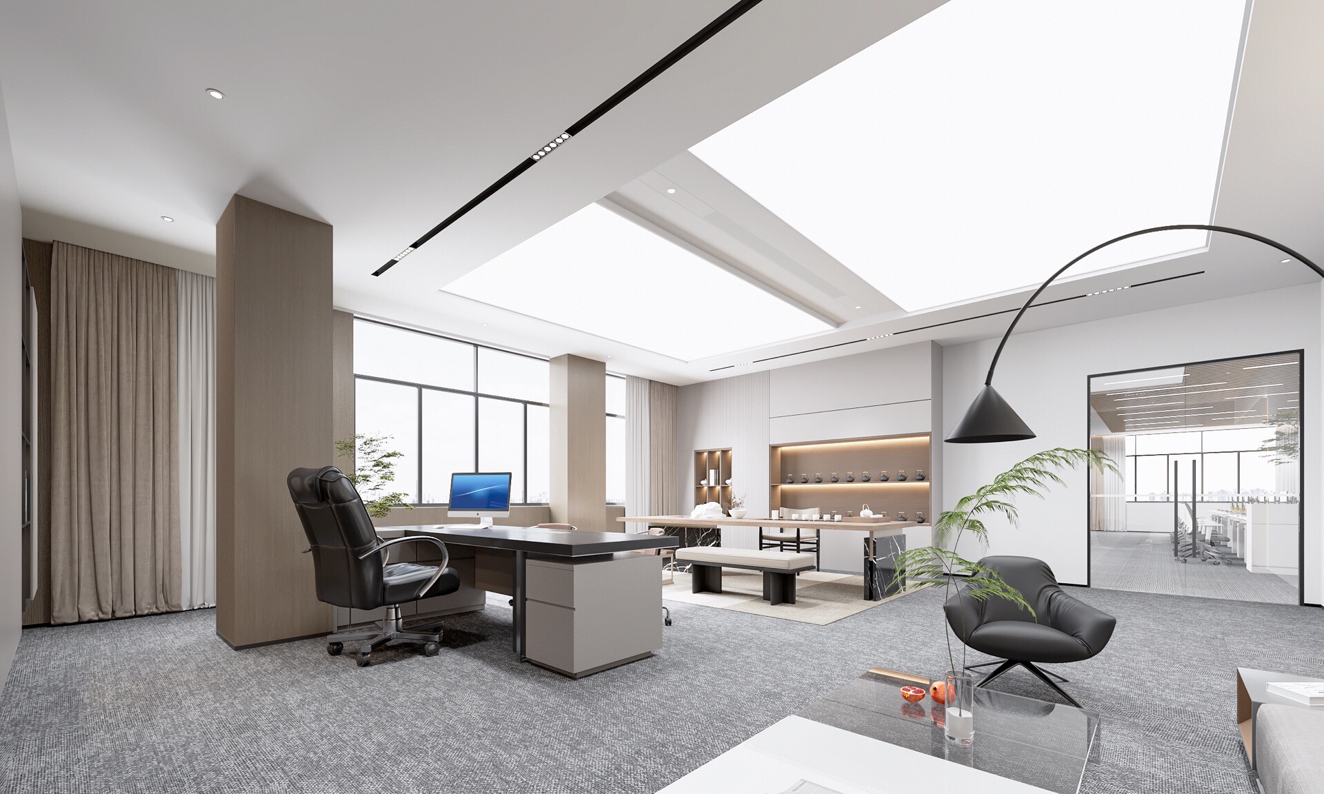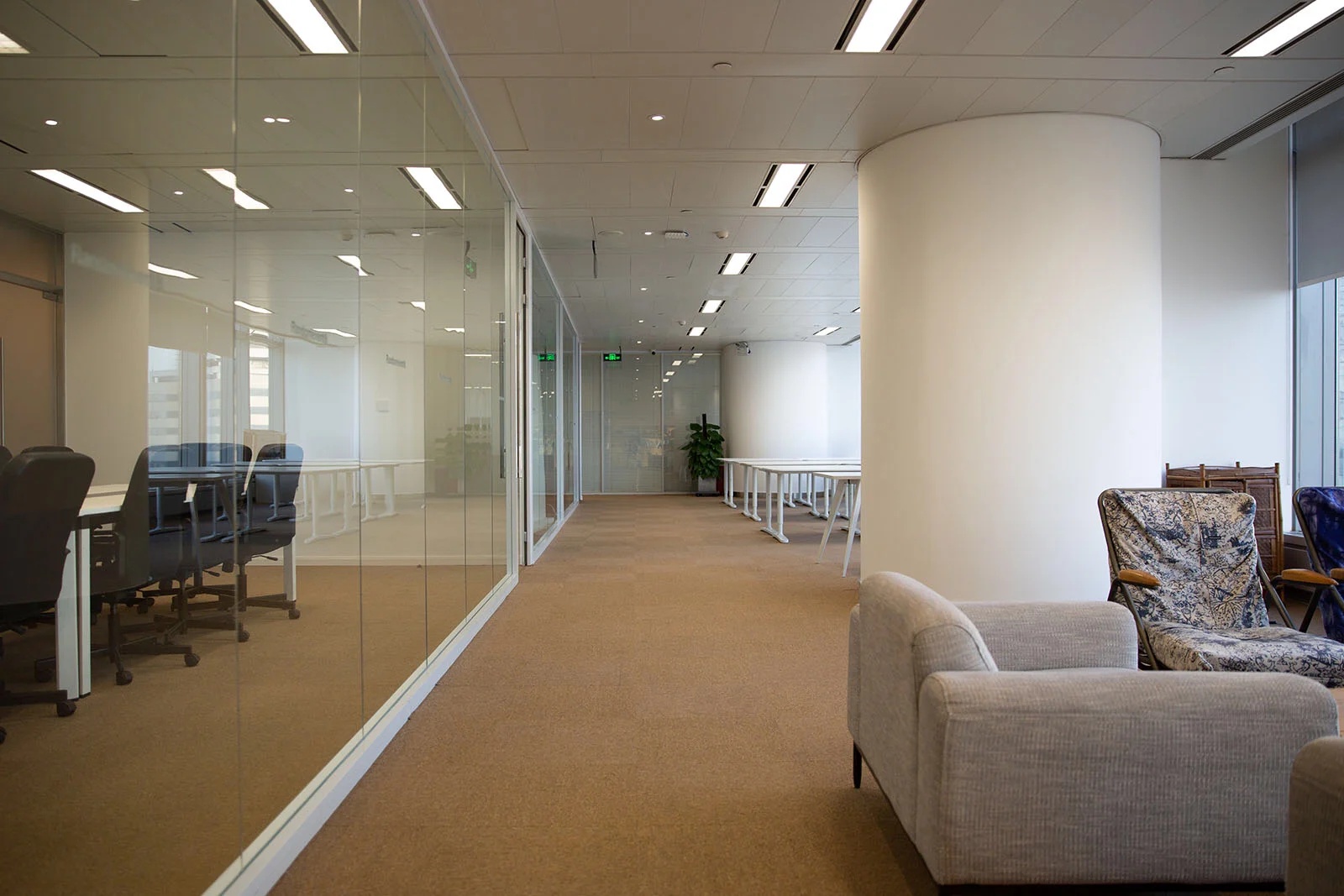 甲方对空间功能数量、工位数量及储藏数量有要求,并框定了造价及施工期限。有了限定也就有了局限,我们以简洁的手法融入现有的空间形态为切入点进行构思。动线通畅,色块清晰,功能分明。开放式现代化办公空间,改造之前办公区域相对幽闭、压抑的状态。更能使团队沟通便捷,有效。整个空间白色为主色调,呈现明快,干净,极简的设计效果。