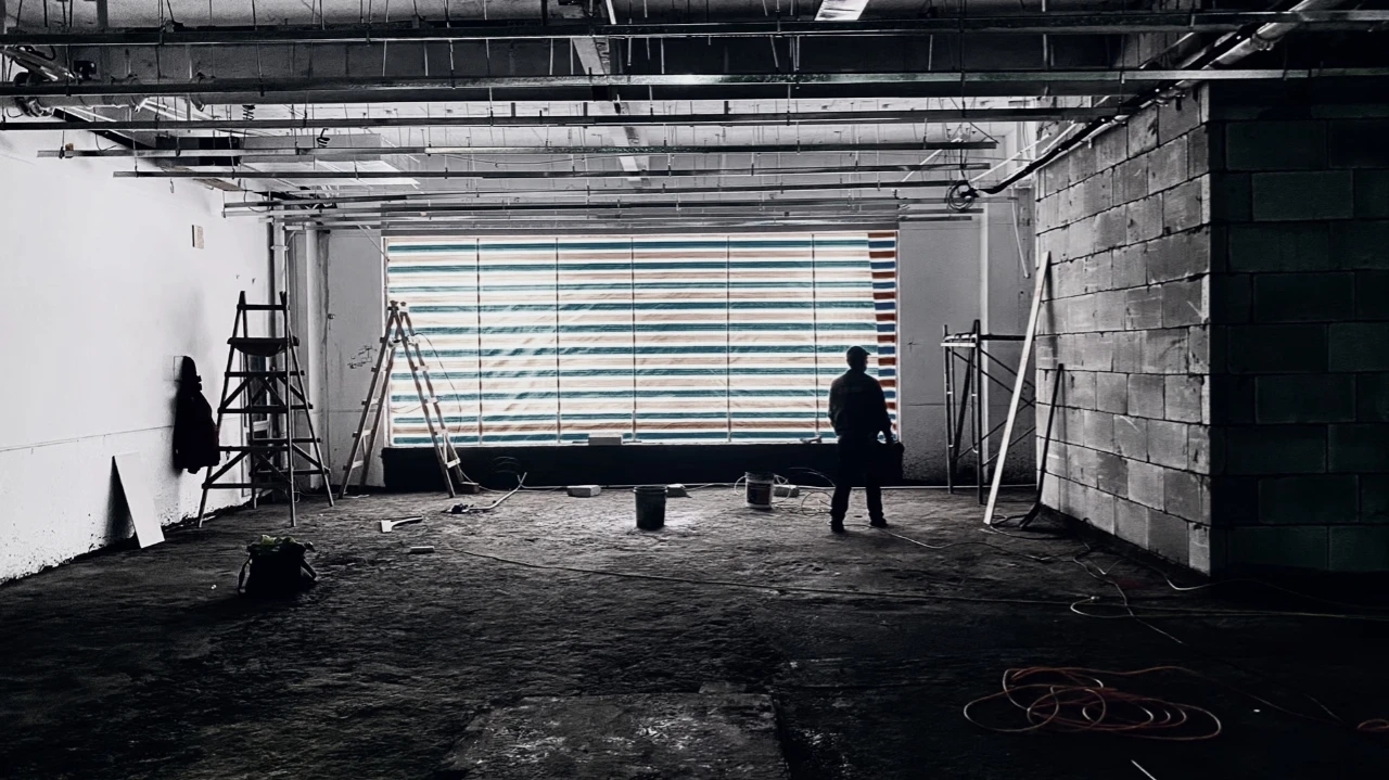 玻璃砖的几何构图,划分出纵横两向的壁画