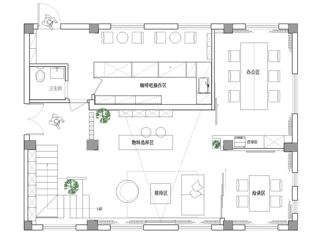 一个最佳的办公空间,应注重将生活和工作完美融合,增加空间的开放性和趣味性,作为一个平台培养着日常生活状态,分享工作和日常,延伸出更为有趣的生活方式,并且在稳定员工、保持高效产出的同时,还能在客户到访时辅助与推动合作达成。