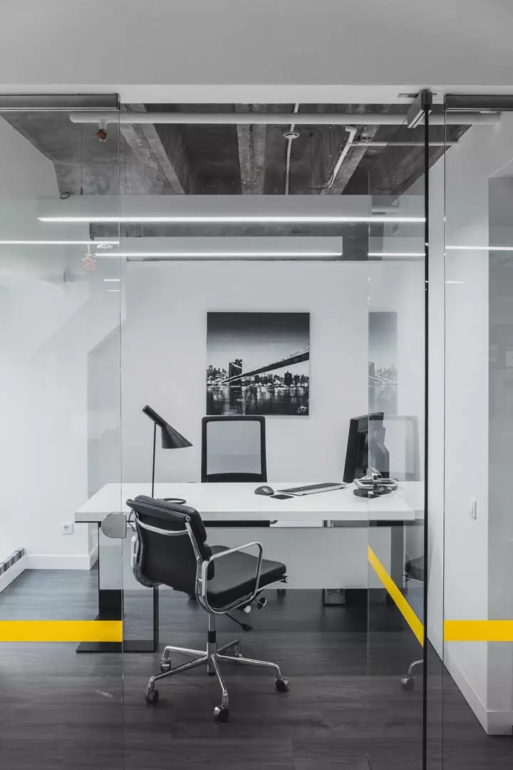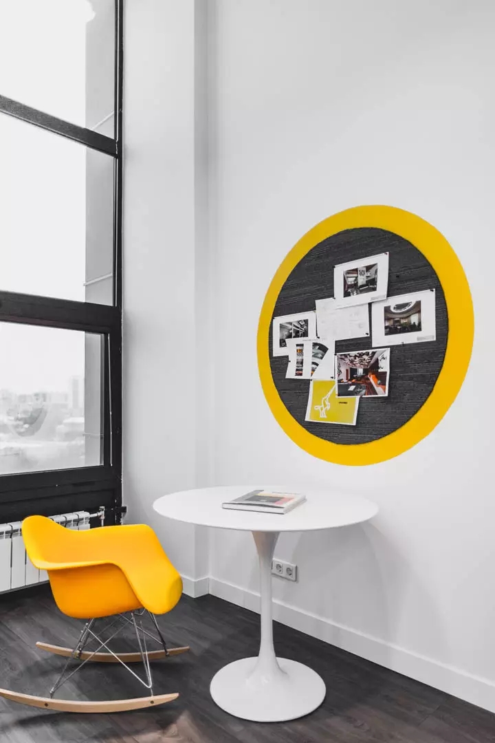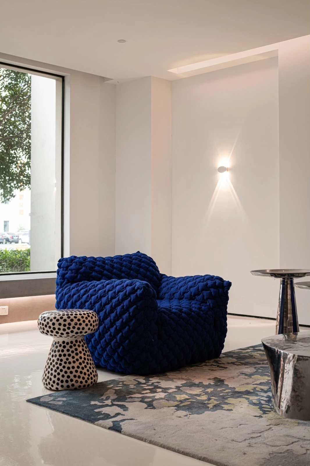 在空间中使用黑白两色,勾勒干净利落之感,采用少量亮色软装点缀出空间的活力感,以此强化使用者对空间的视点,同时增强人与人、人与空间的互动,达到彼此舒适的状态。