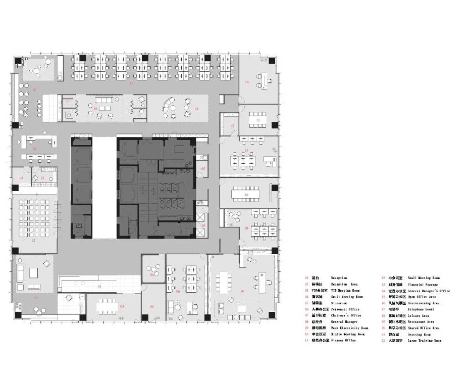 我们的设计灵感正是来源于人眼对光的感知,所有的形体与色彩是在“光”中被感知。与其说是设计师设计了空间与物体,倒不如说光赋予一切以形状。空间的平面排布“逐光而居”,每个区域都以最大程度引入自然光线为原则,让员工获得360度的绝佳视野和光线,享受沐浴着阳光的现代化工作空间。