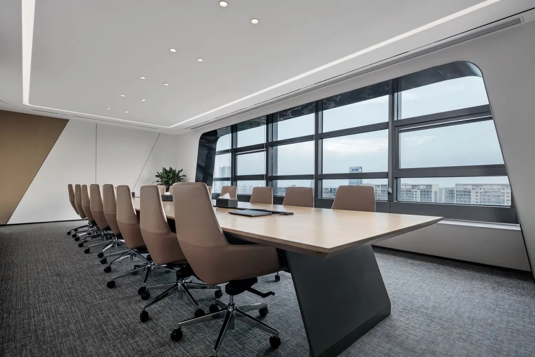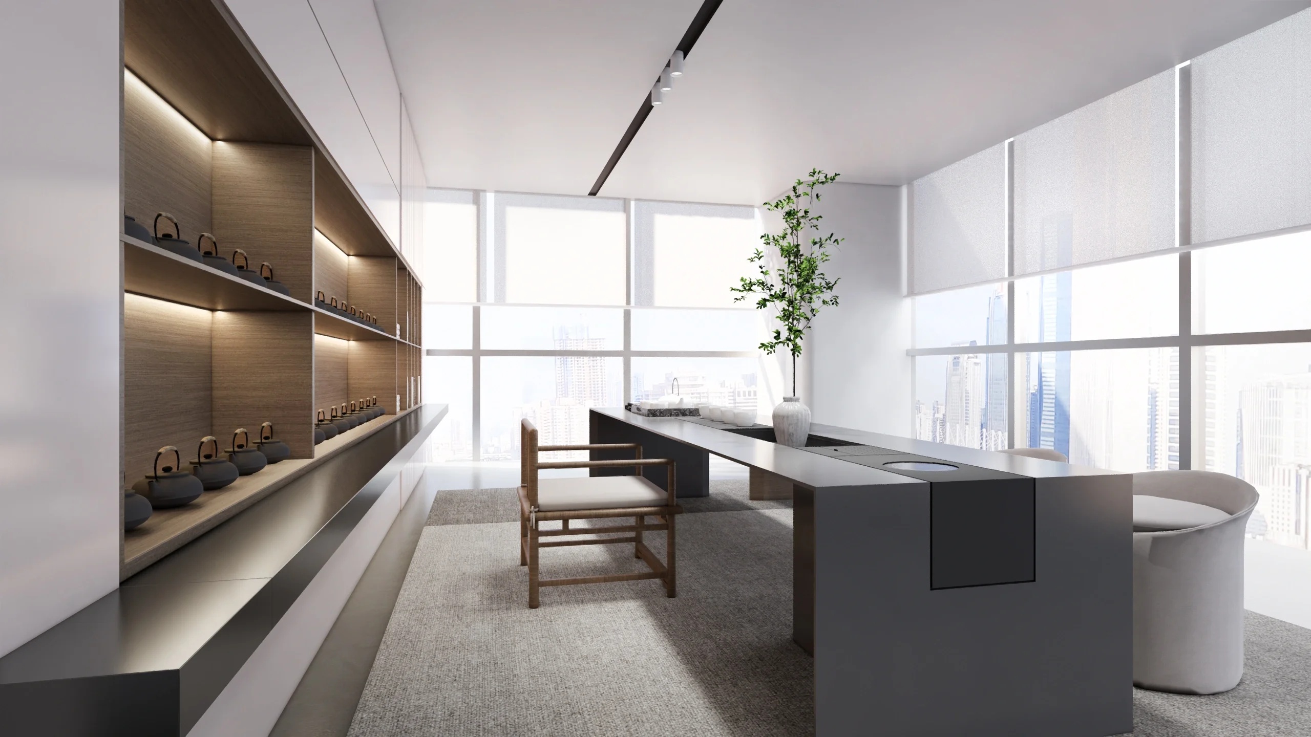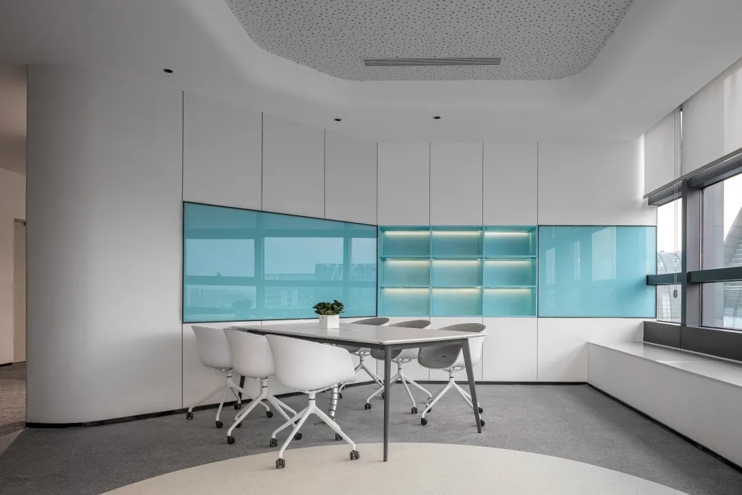工作区的办公桌采用了不同的尺寸和设计,我们还创建了用于存放行李的架子,这些架子易于使用并提供免费地址。 自由空间在地板上表达公司名称,并通过设置大柜台成为品牌象征的地方。 通过在接待室和会议室使用即时调光膜,我们能够创造一个结合设计和功能的空间。