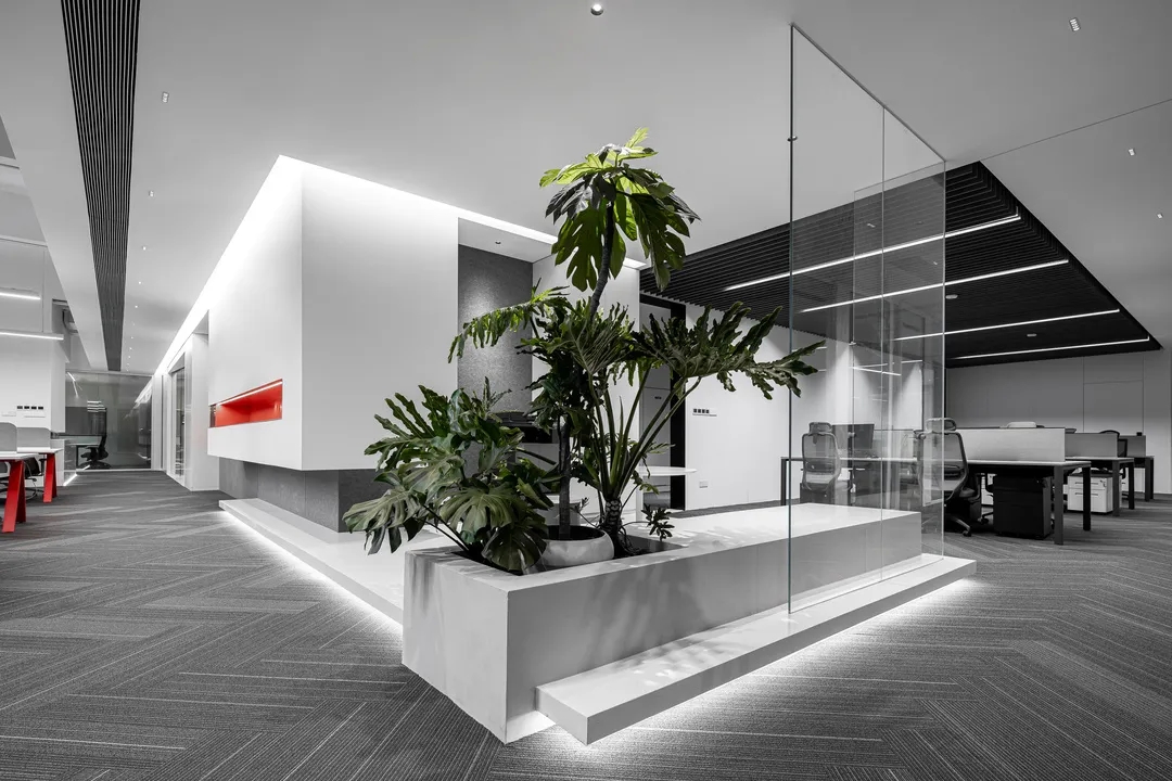 办公空间作为一个人员的流动的空间,受到社会需求、价值体系、科技文化的极大影响。设计团队力求避免浮夸的极端表现形式,坚持为了设计而设计,突破惯性思维的束缚,希望通过适度有效的手法解决办公空间基本布置问题,提升空间使用率;也希望在简约的秩序中帮助企业通过空间气质沉淀,提升自身社会价值,使物质与感官产生共鸣,展望更深远的企业发展前景。