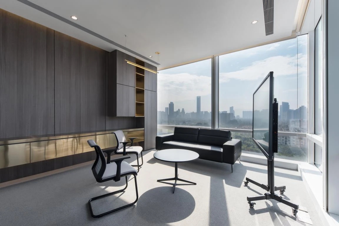 根据企业需求构建出不同大小的会议室,配置功能齐全的多媒体设备以及可书写的墙面设备,半透明玻璃既保证了私密性,又不缺失领域感,构建出灵活高效的交流空间。