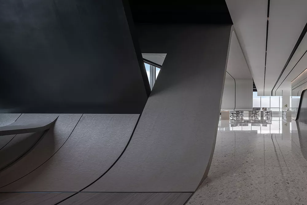 未知,无拘界限。自由、突破、往外延伸示意着每次“未知”的开始,促使我们去探索不被定义的界。在此基础上延展出“无限可能”的概念,营造出“对话、沉浸、玩味”的空间,白与灰、肌理与质感,并置其中。