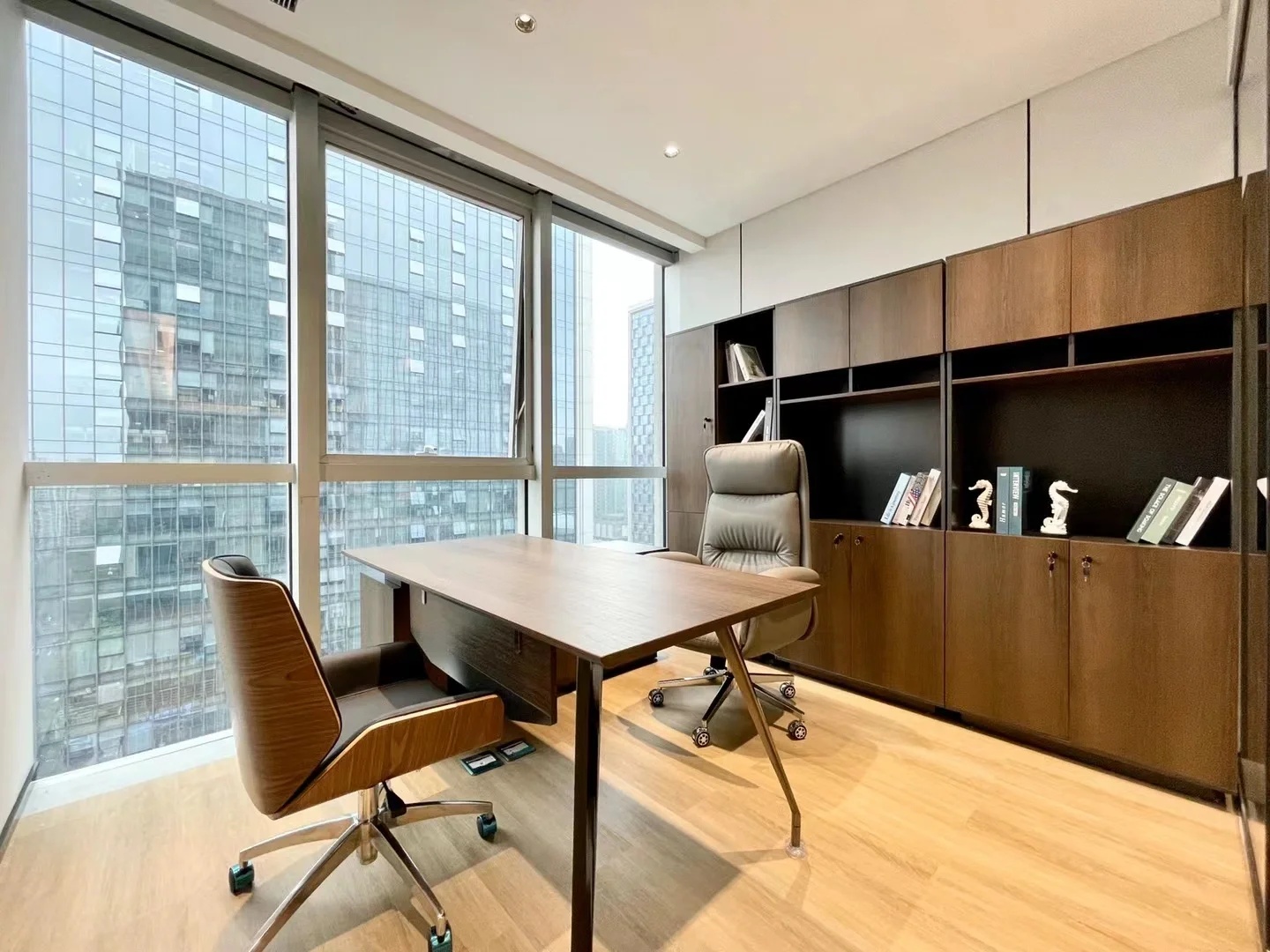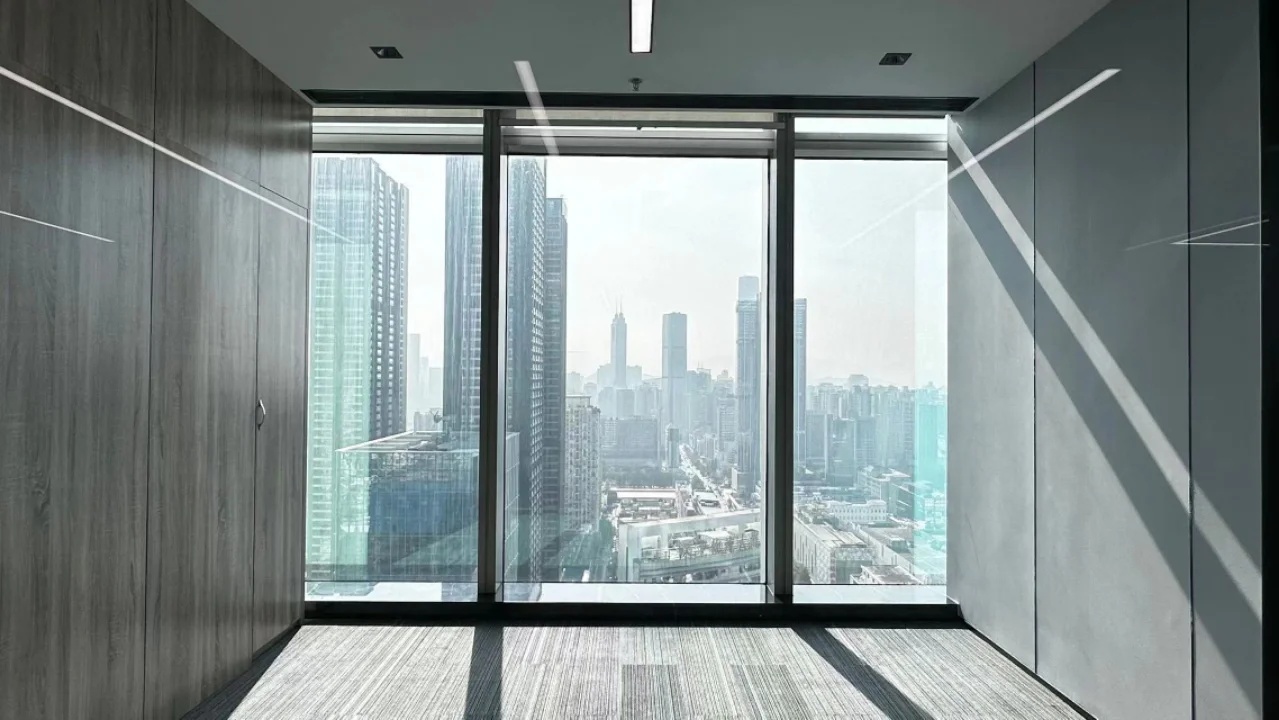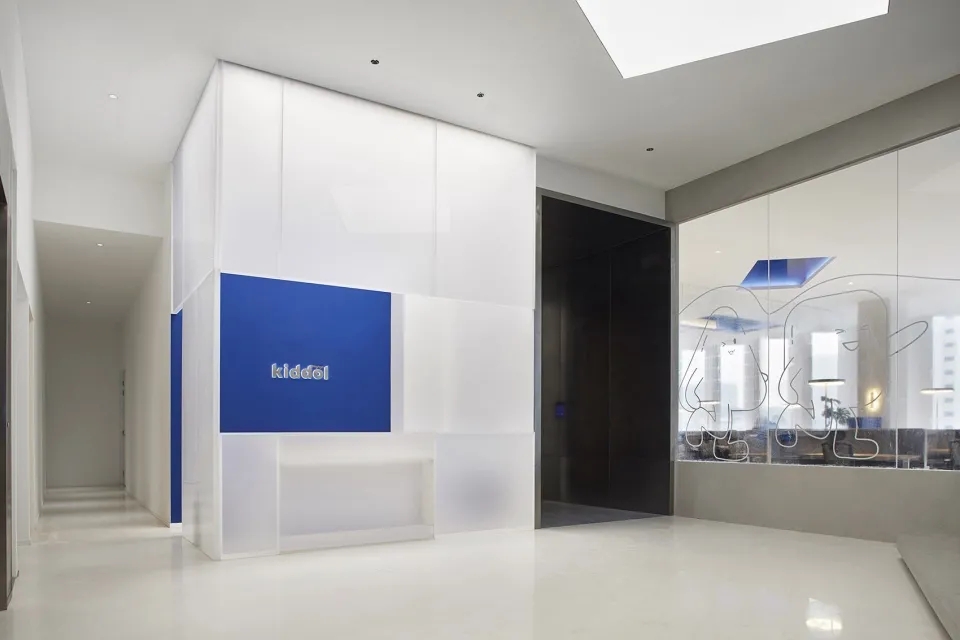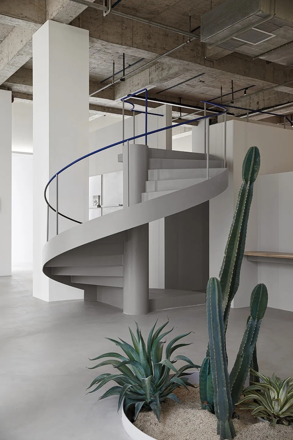 场地的现状条件是非常严峻的。客户租用的空间是相邻的独立两户,由厚重的墙体分隔为左右两个空间,两户之间仅可以通过外部的外廊连接。空间呈窄开间,大进深的长条矩形平面,中部区域的自然采光很弱。另外,梁的间距较密,梁下的高度也较低,仅有2.6米净高,让人略有压抑之感。