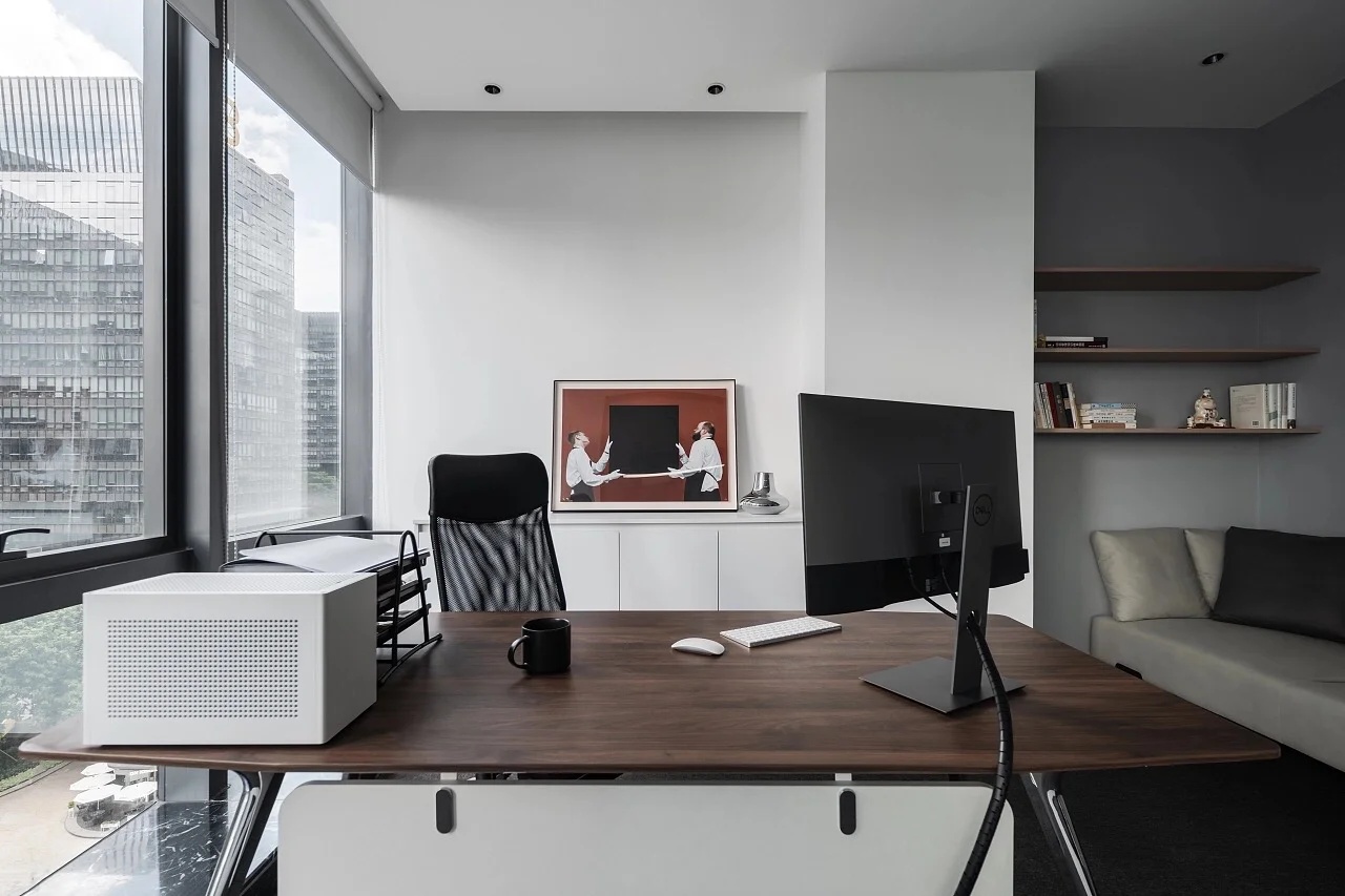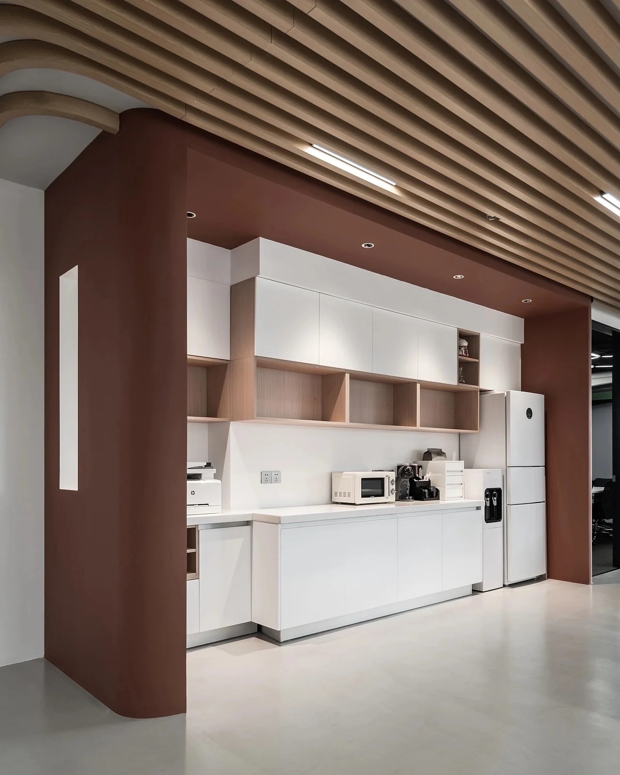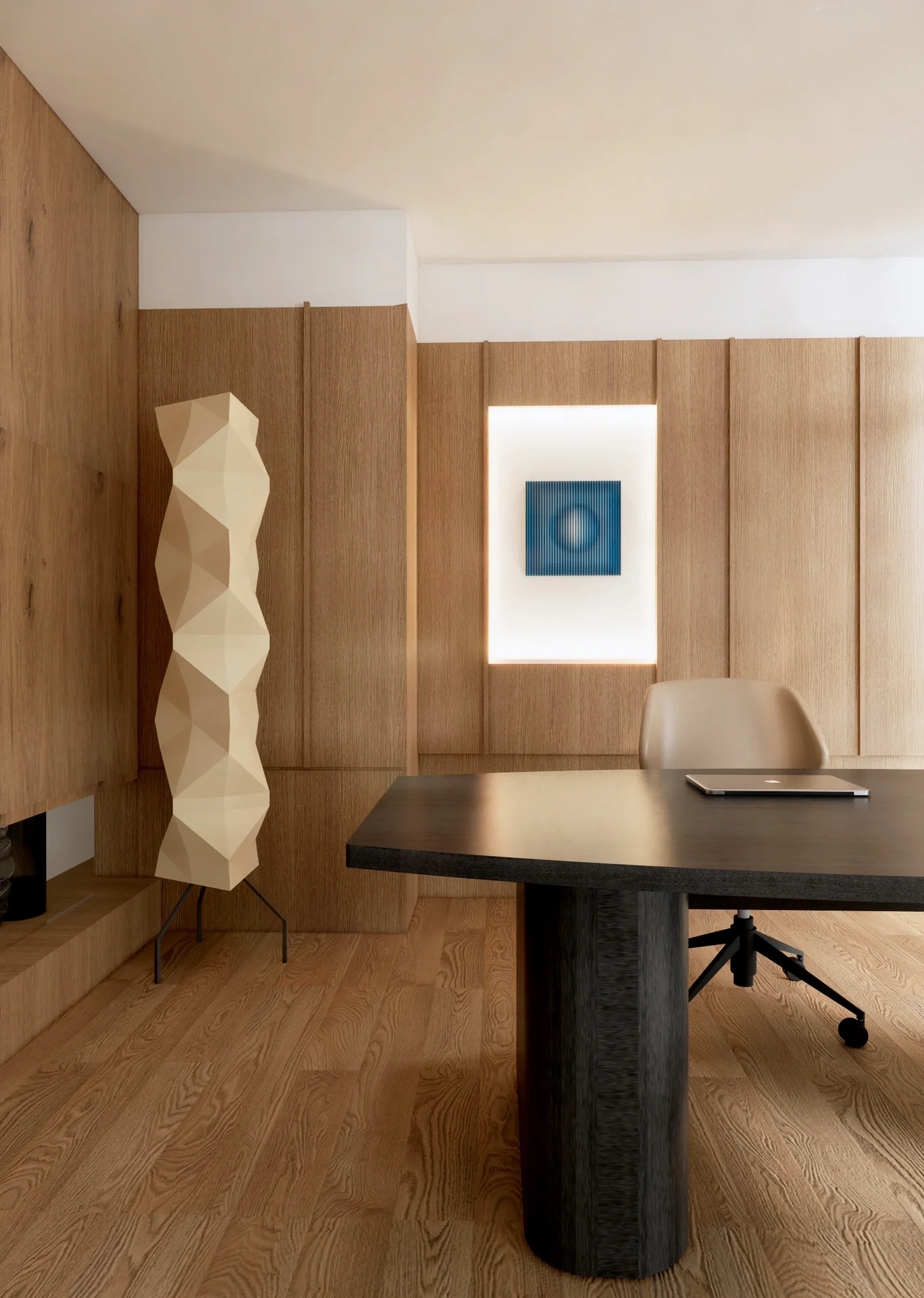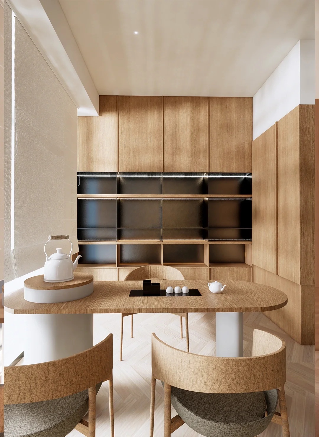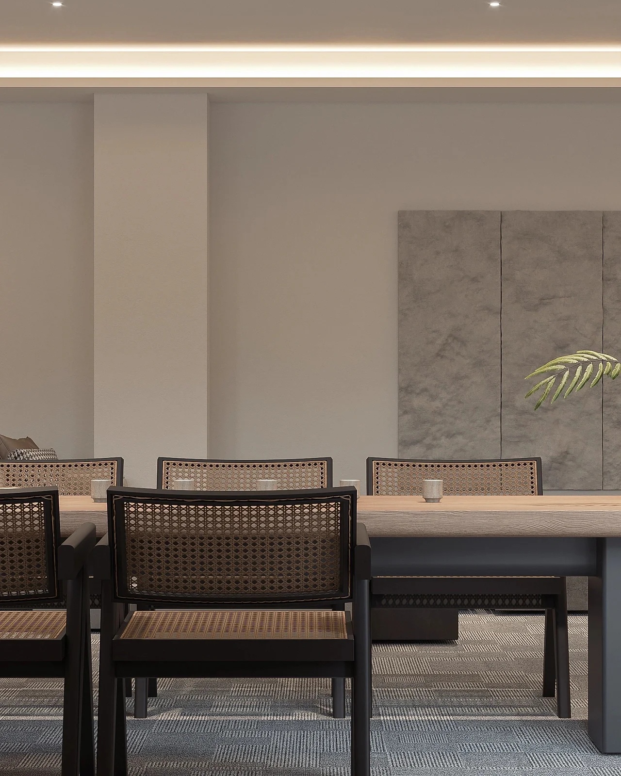 工作室内蕴含多项自家精心设计——由布垫墙身和陈列架组合、厨房间隔、饰柜及为设计师们量身打造的收纳空间,到磨砂木作把手等。空间遍布多款具设计感的家私,包括Artek、KarimokuCase Study、Nikari、Benjamin Hubert系列、采用柔软面料Kvavdrat制作而成的家具以及由著名的半世纪历史老店海安咖啡室所捐赠的怀旧餐桌椅,家具摆设的丰富性突显团队在建筑语言上对工艺细节及功能性的追求。