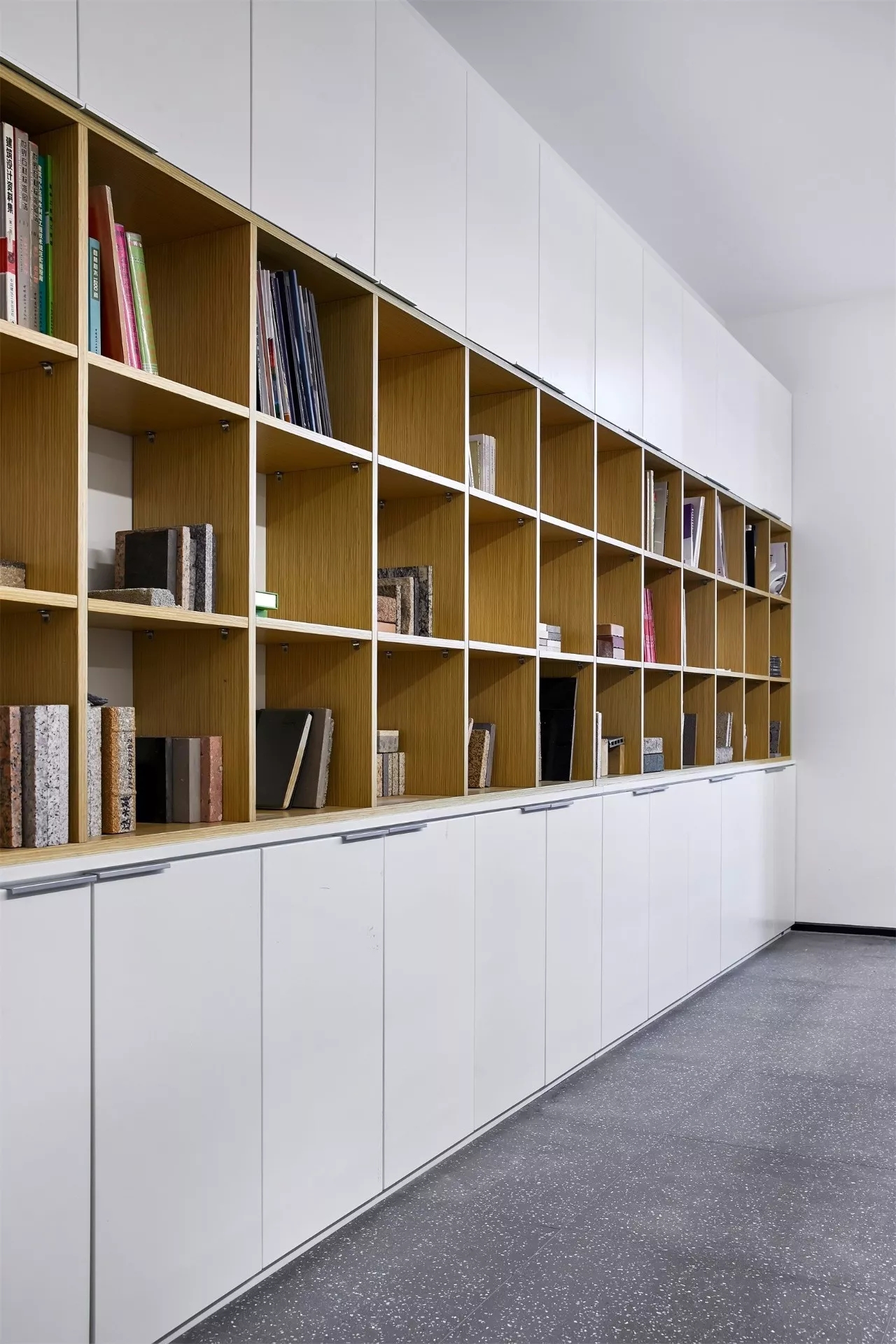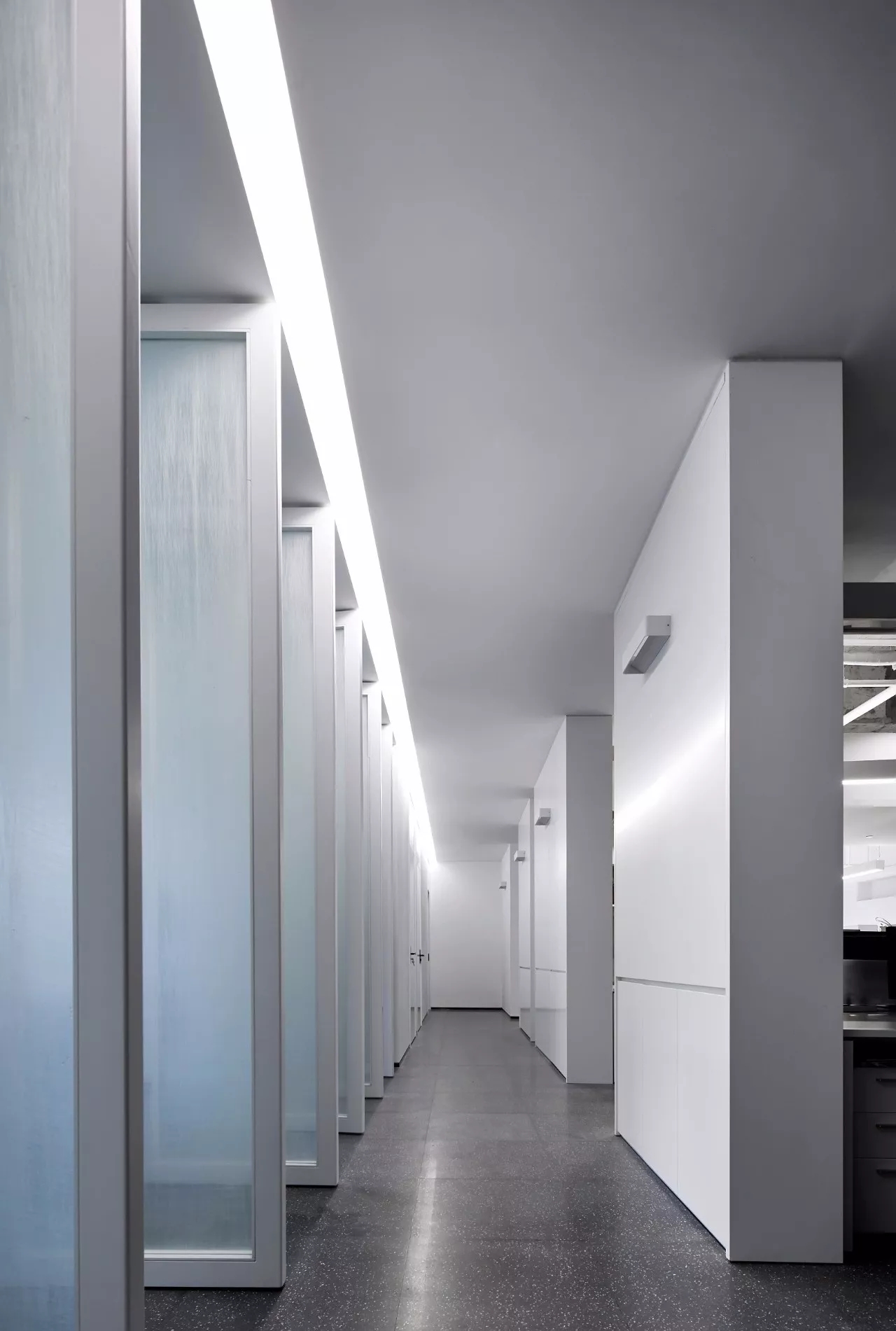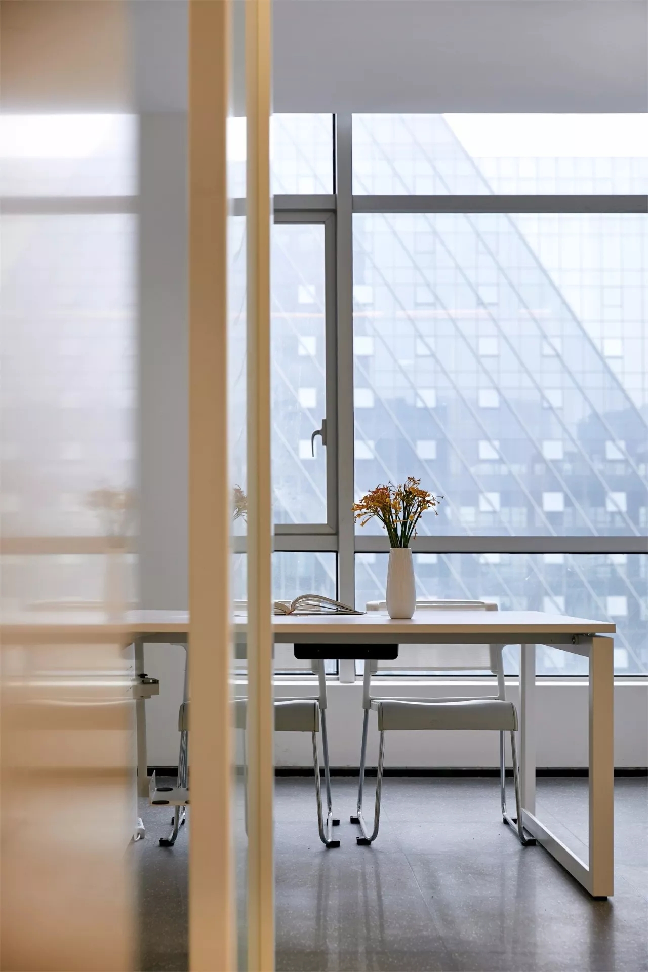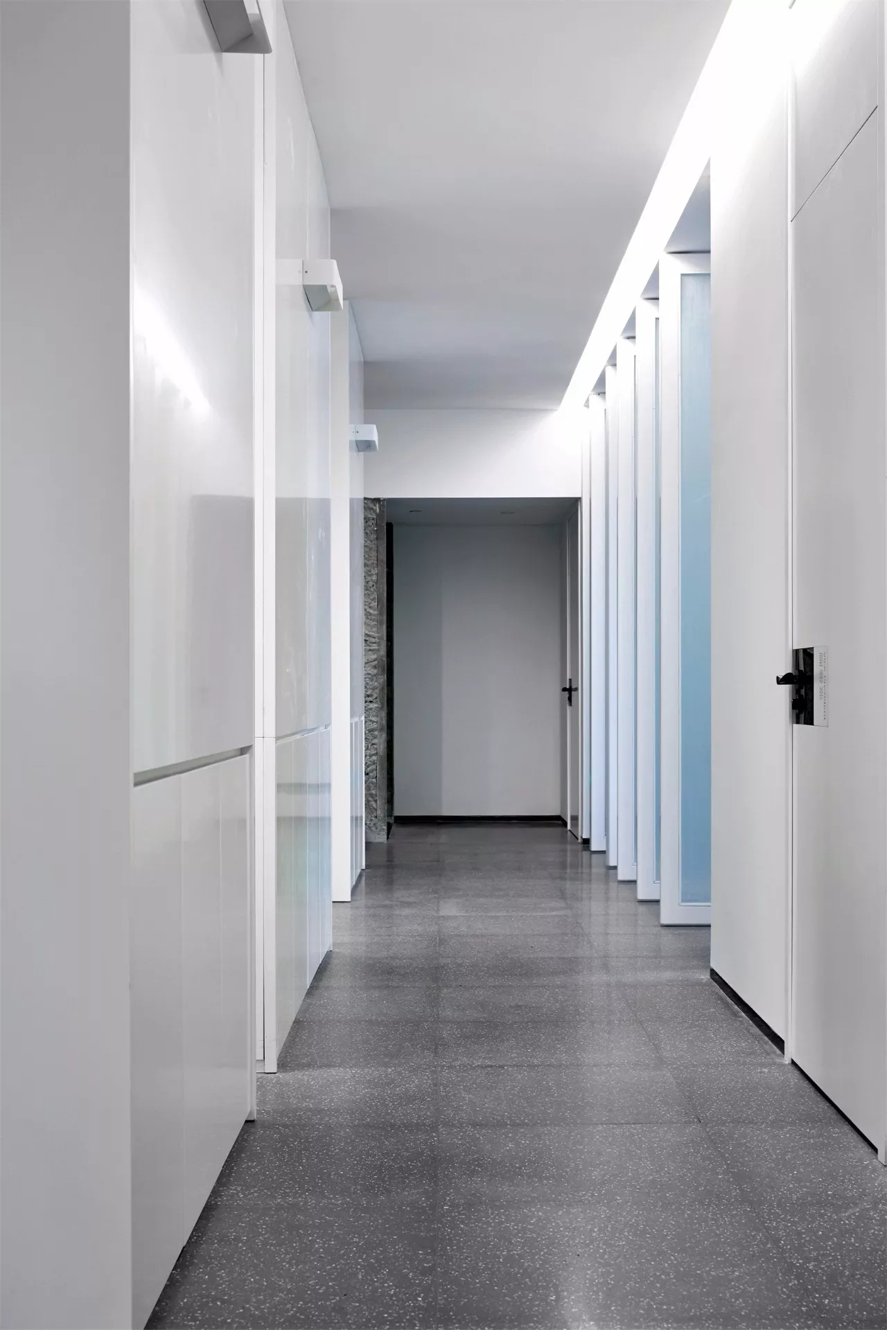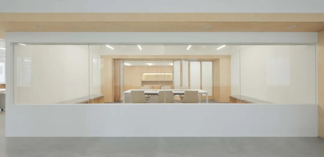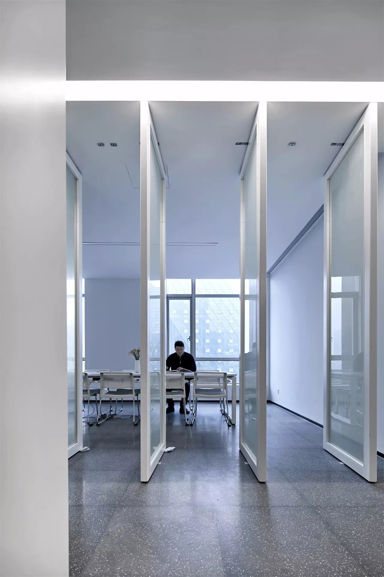在设计上用干净洗练的线条,宁静的色调和光源,来营造工作环境特有的气质与氛围。空间平面规划以区域布局分隔,在满足功能需求的前提下利用材料特性的变化,拓展了空间的纵深面积