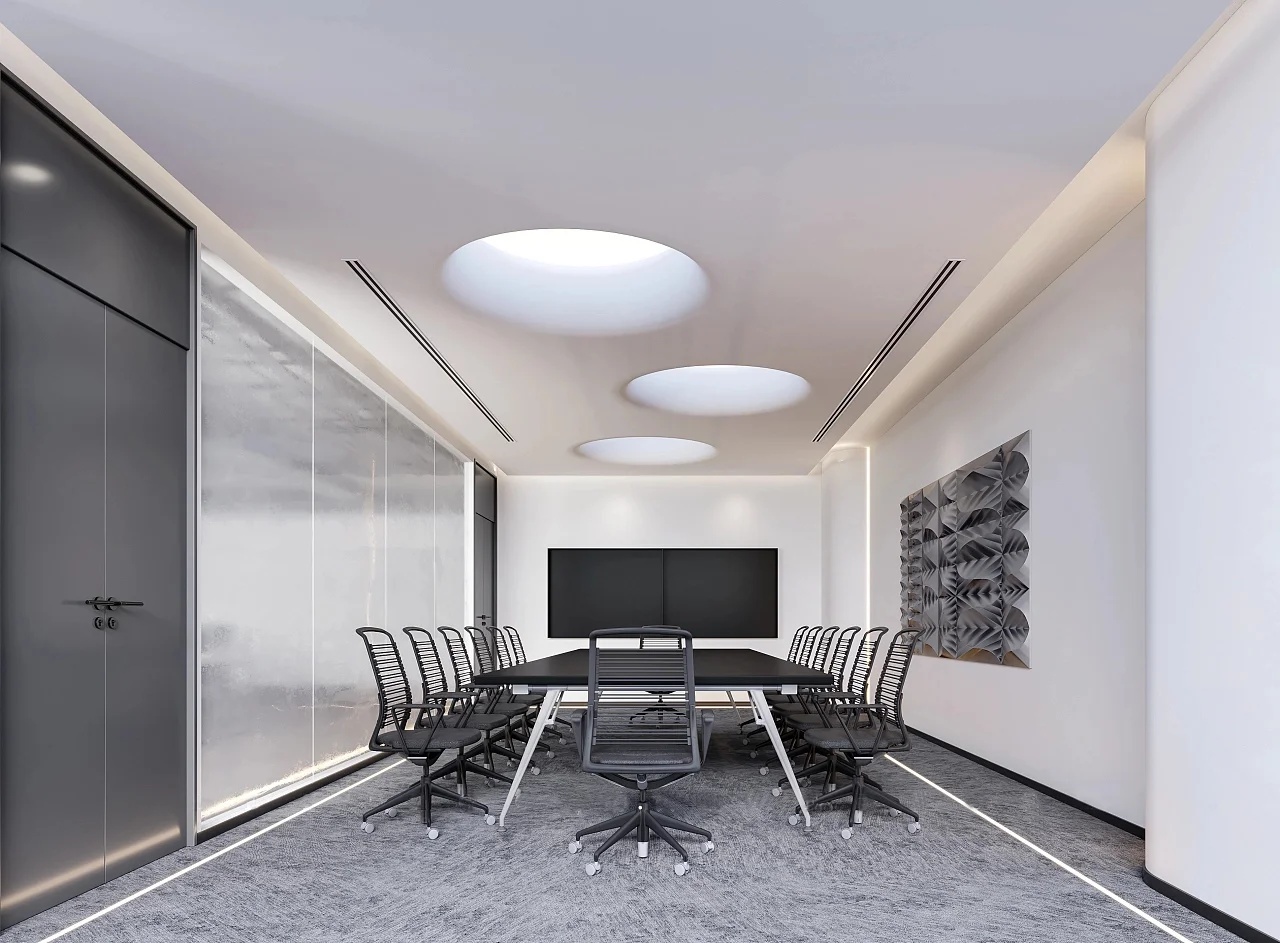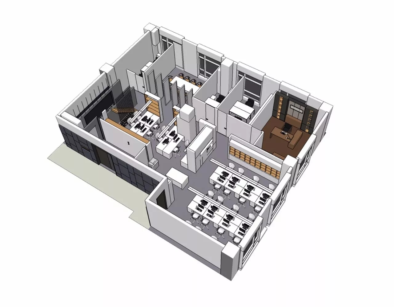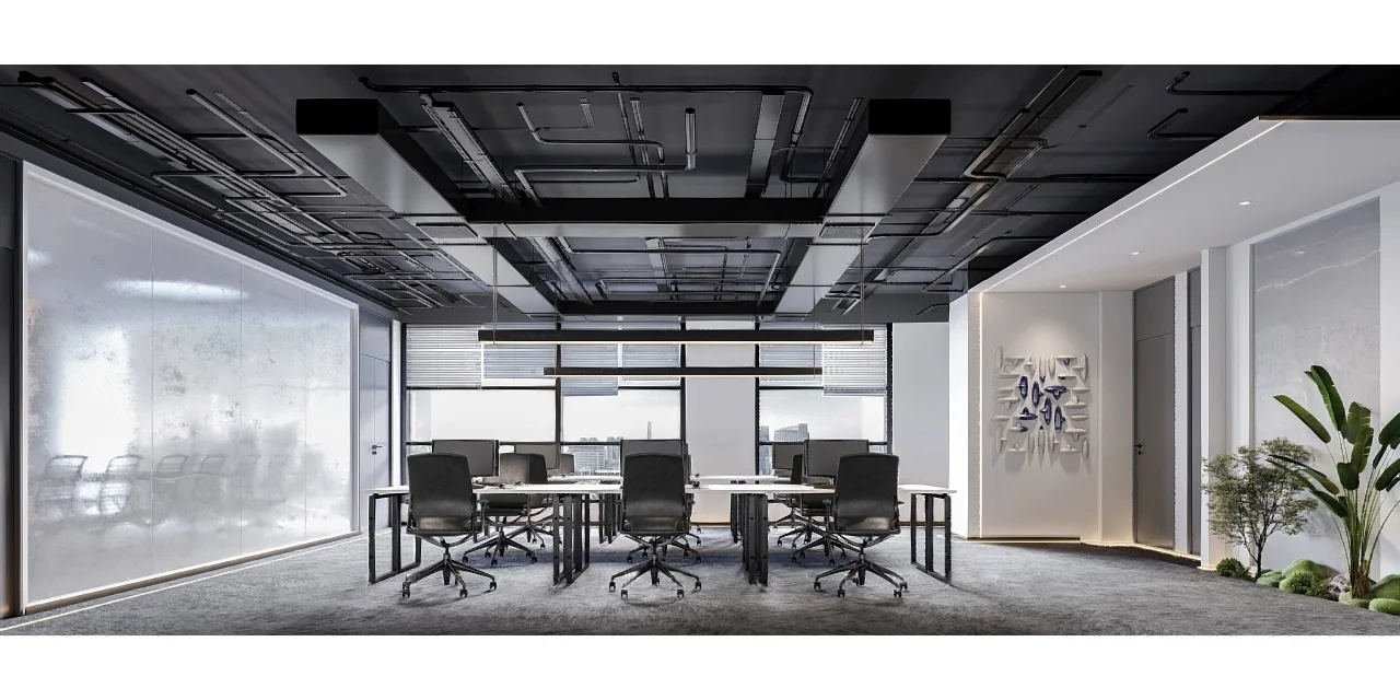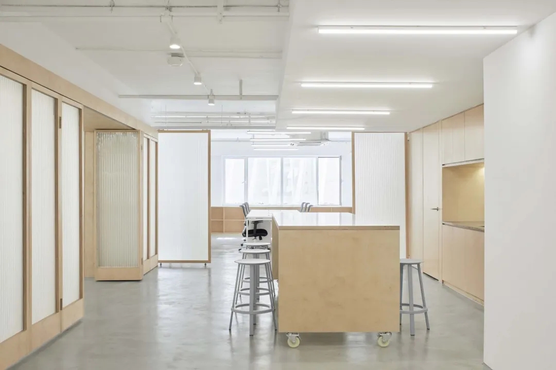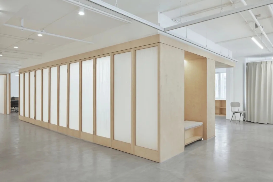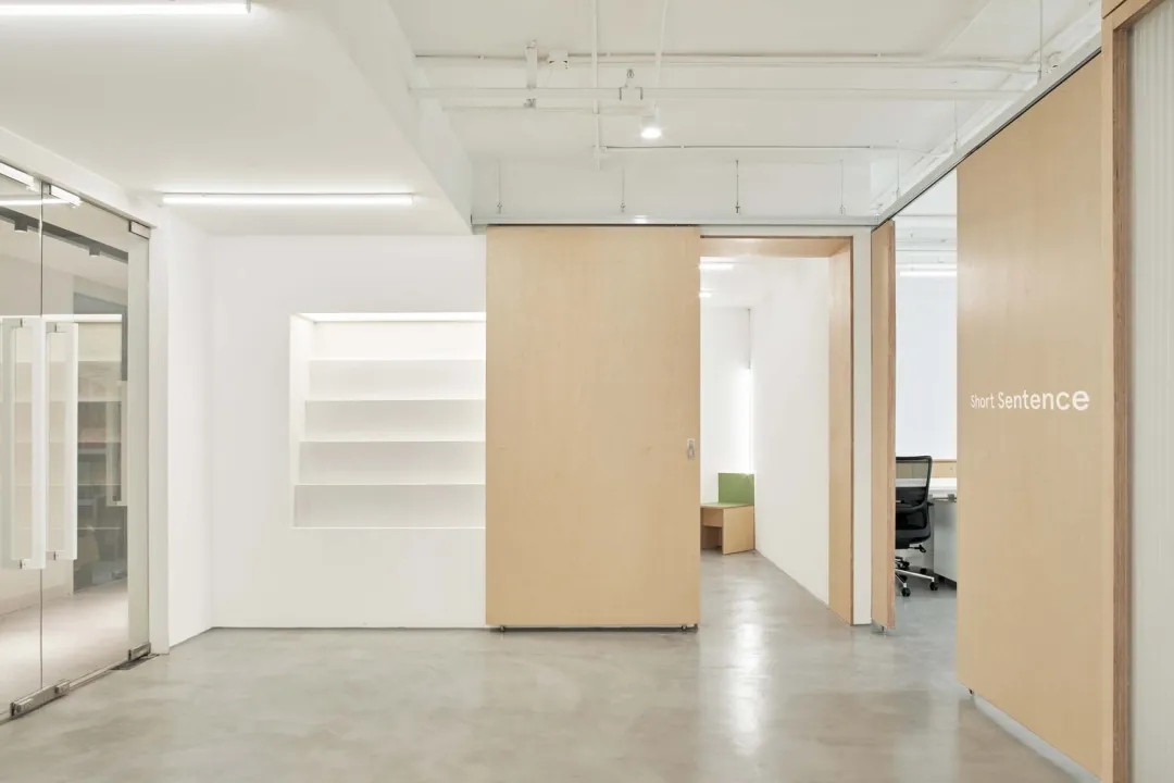 在设计上用干净洗练的线条,宁静的色调和光源,来营造工作环境特有的气质与氛围。空间平面规划以区域布局分隔,在满足功能需求的前提下利用材料特性的变化,拓展了空间的纵深面积
