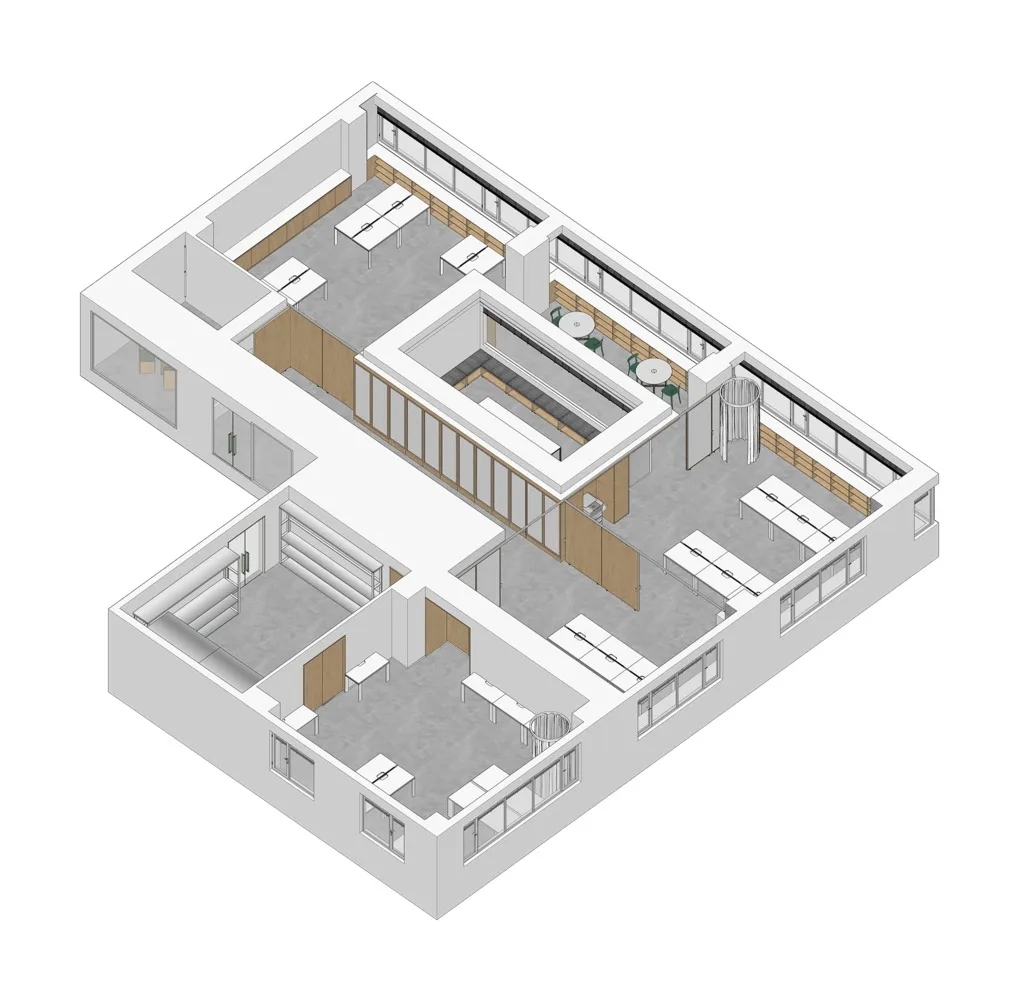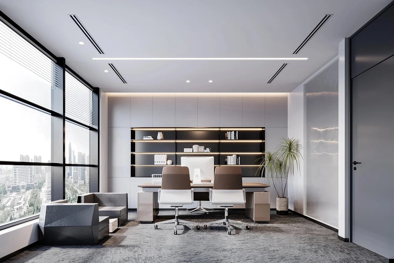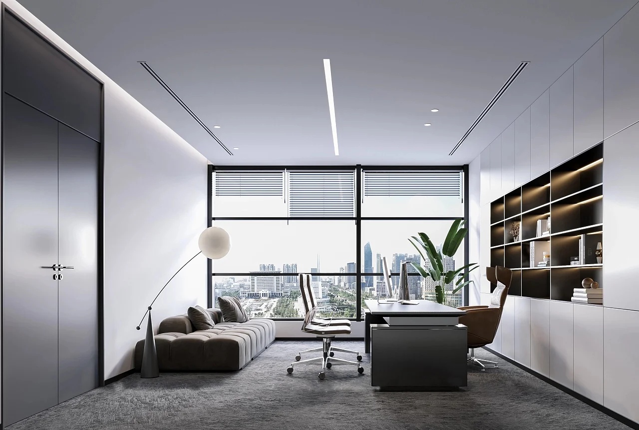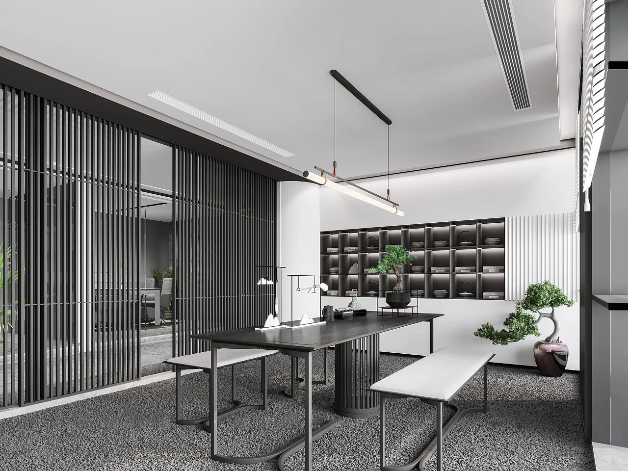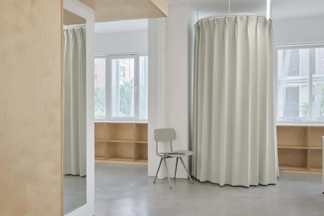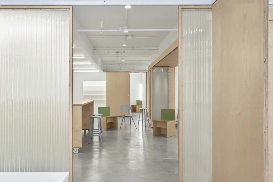 在设计上用干净洗练的线条,宁静的色调和光源,来营造工作环境特有的气质与氛围。空间平面规划以区域布局分隔,在满足功能需求的前提下利用材料特性的变化,拓展了空间的纵深面积