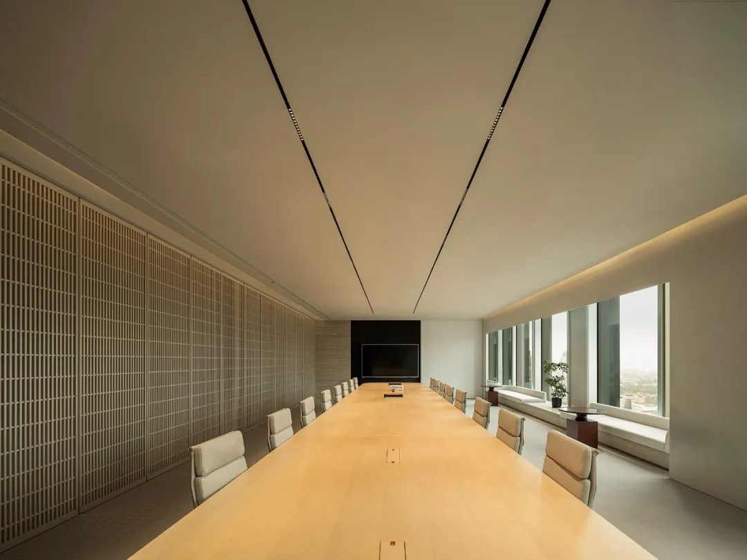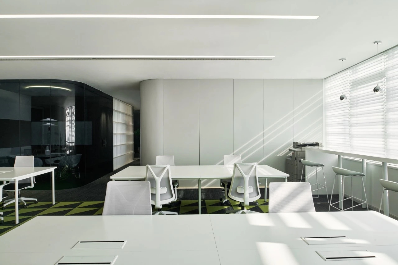办公区采用线性光带、漫反射,创造出柔和、安静的光环境。让员工拥抱阳光、空气和自然的同时,光线设计凸显晋强公司透明、高效的企业理念。