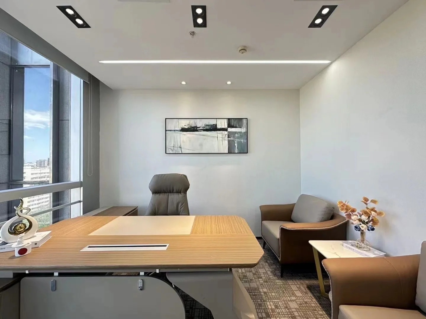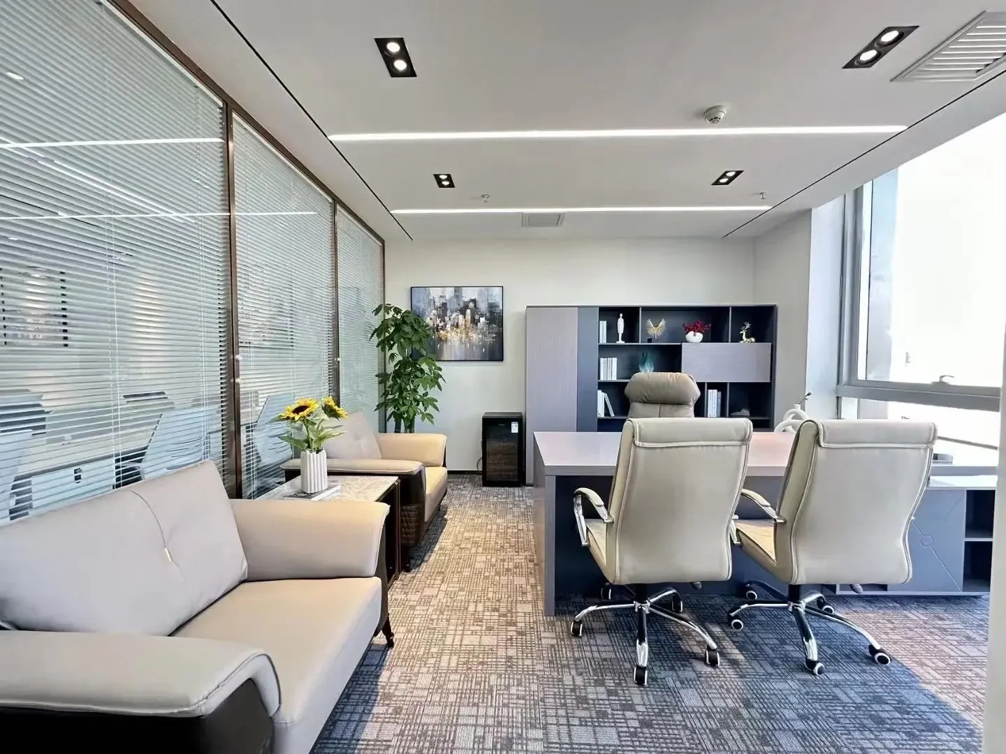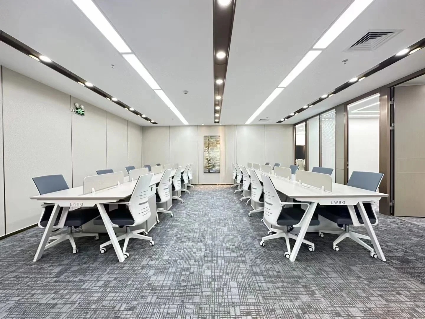 办公区采用隐缝吸音岩棉板吊顶,令员工安静舒适。储物柜妥善安置产品资料、个人物品,让职场干净整洁。