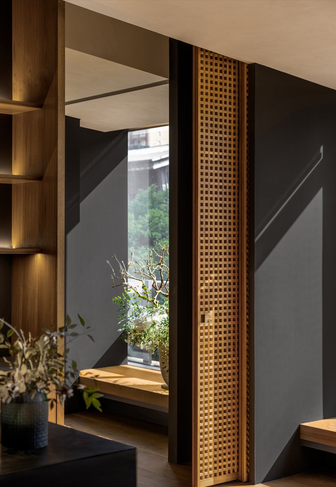 白色、灰色和环保绿是空间色调的主旋律
