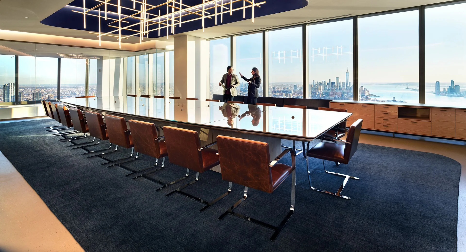 精密的电动技术,遇上经典几何语言的木质,旋转门在一动一静之间皆表达出强烈的序列美感。在当今高度连接的世界中,即时交流早已跨越时间与空间的局限,为汇聚世界各地精英的头脑风暴会带来智能化的多重场景体验。
