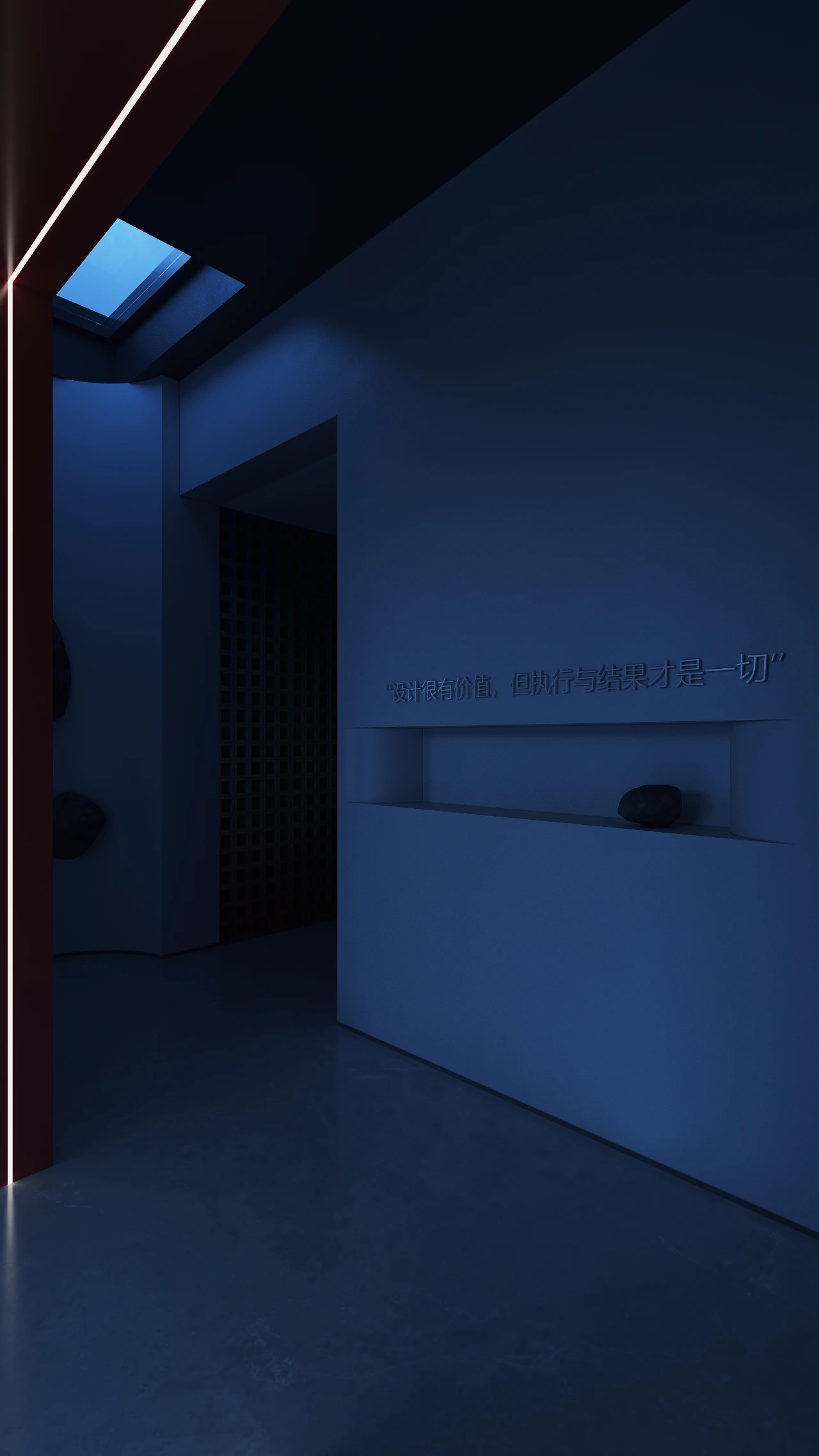 走进厅堂,迎面是正在踏浪的“弄潮儿”,红与黑,圆润与尖锐,色彩与形体的双重冲突,将弄潮精神符号化,在昂扬的姿态中,直直向前。设计师以企业文化为设计的着力点,将文化与空间结合,在无形中向来访者传达拼搏向前的“弄潮精神”