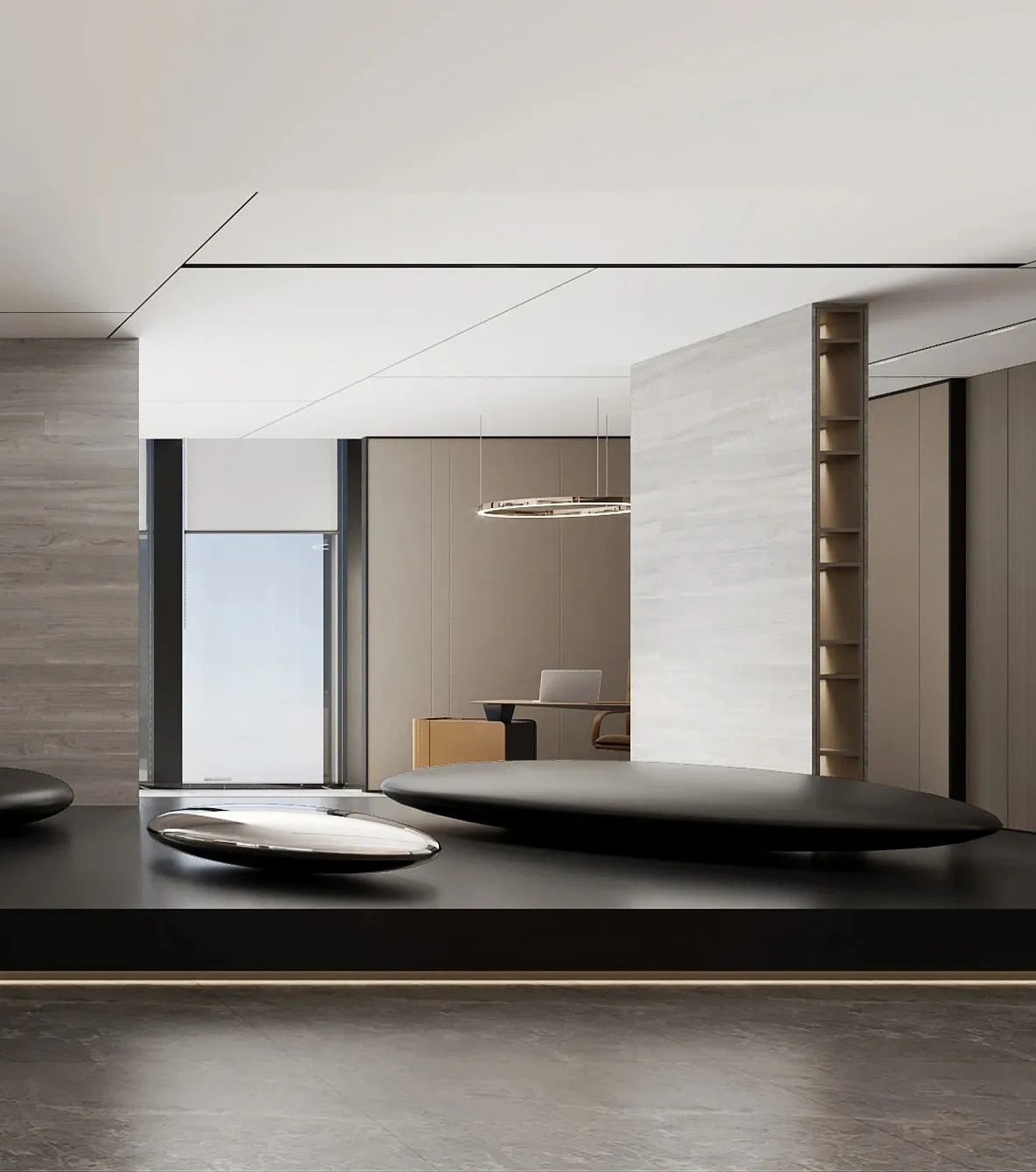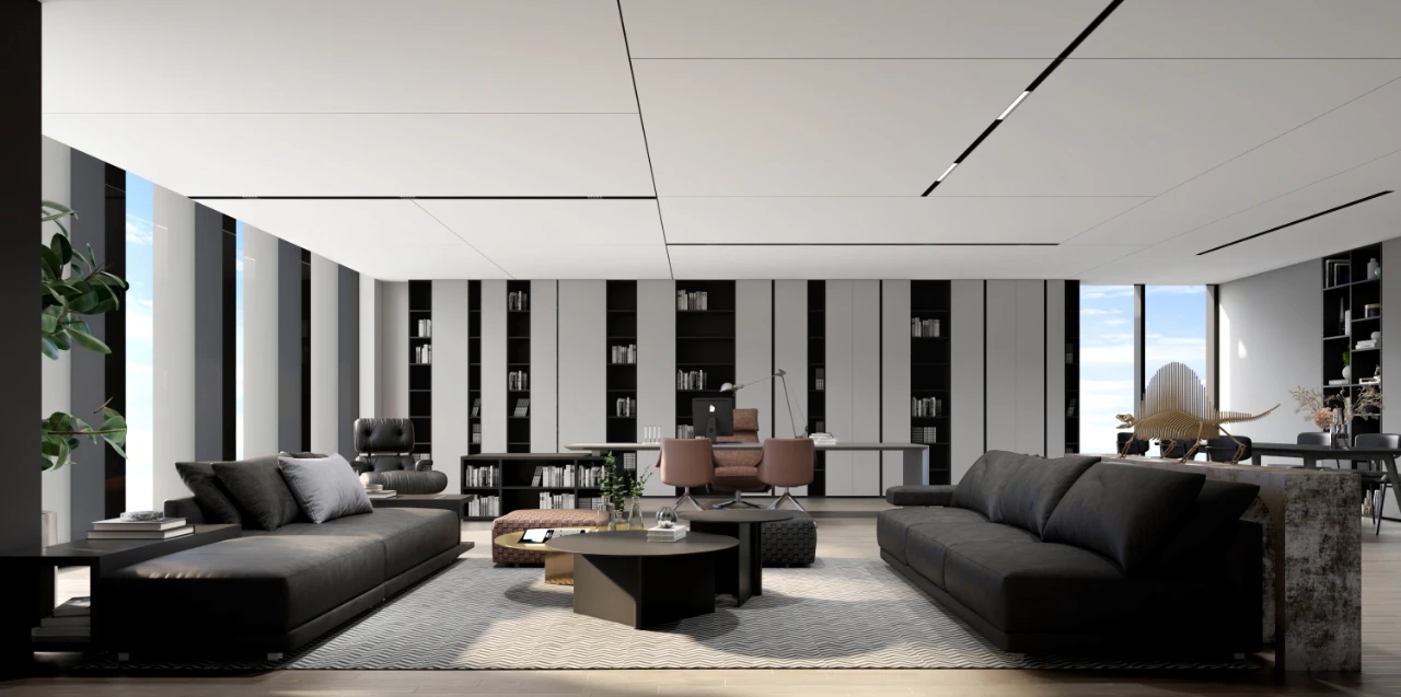 在办公空间,设计师运用现代设计元素,在满足空间需求的同时,提高空间整体的层次感,将空间美学与艺术美学合二为一。