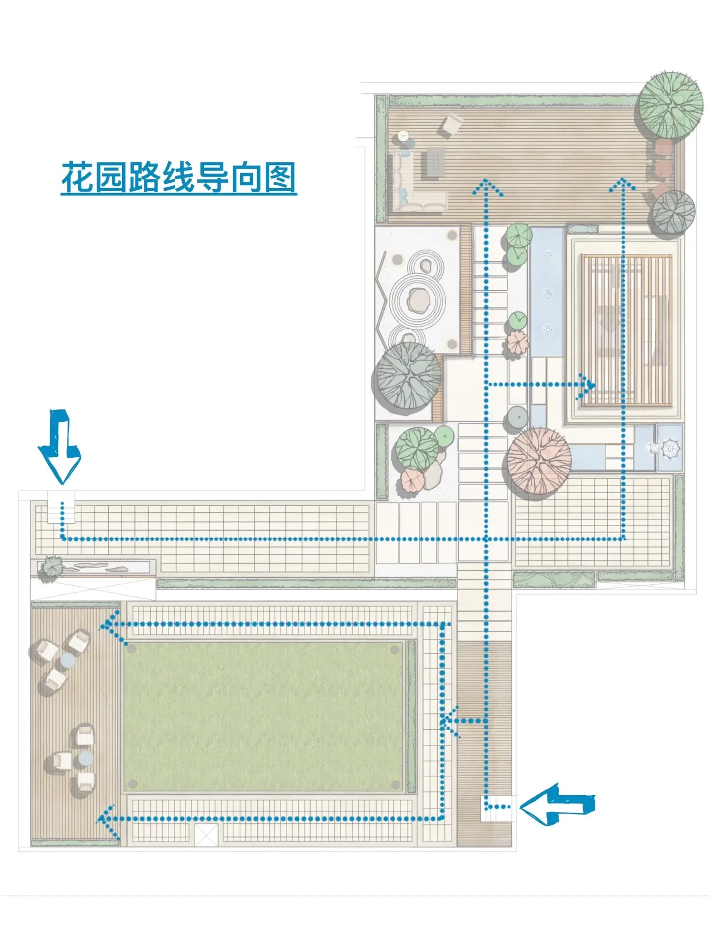 此屋顶花园在简洁舒适的现代基础上,融入了中式的古典元素,把建筑、山水及植物有机的融为一体。