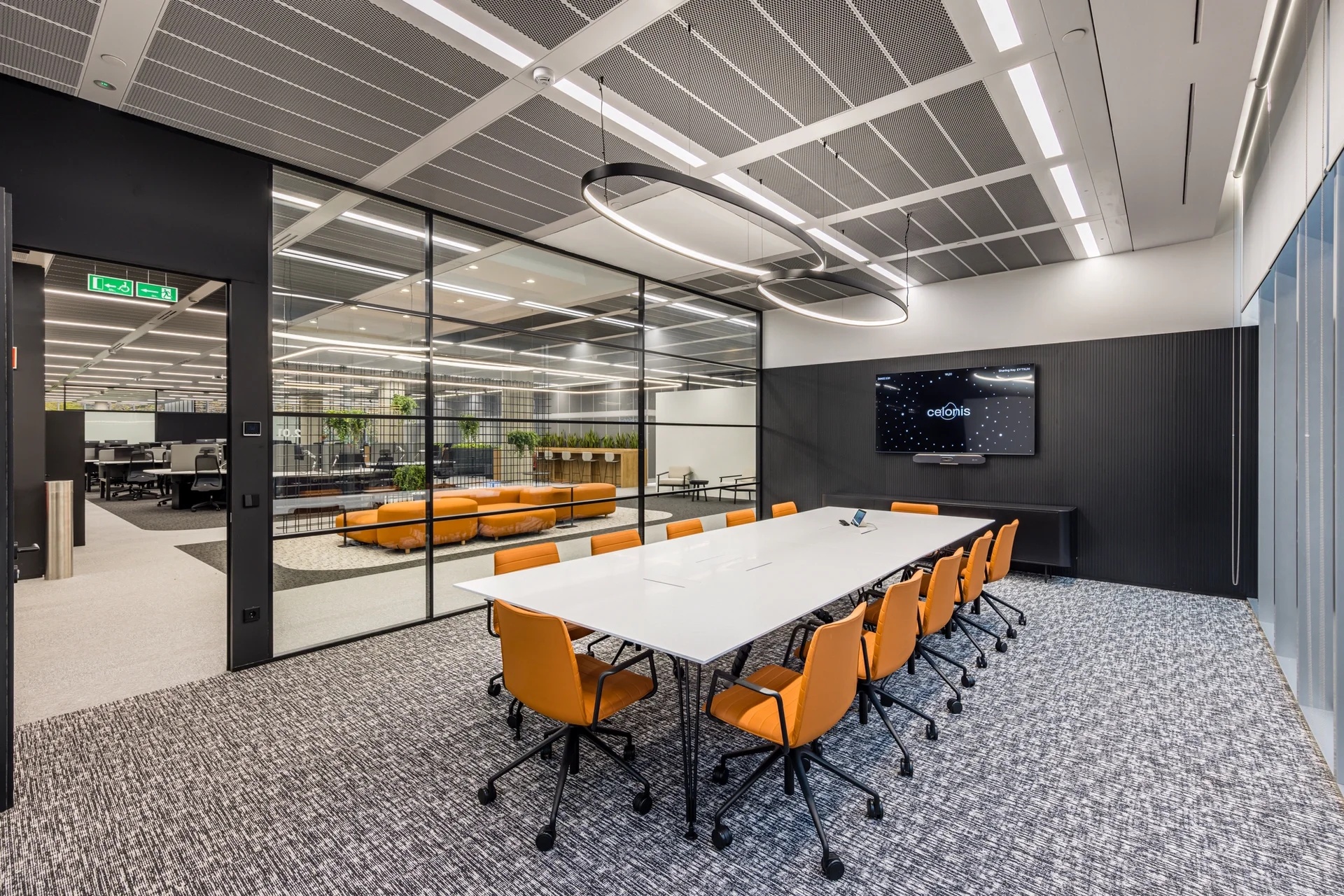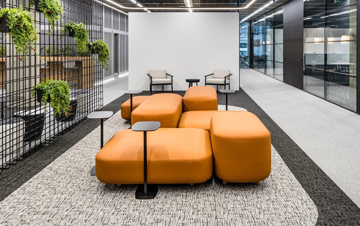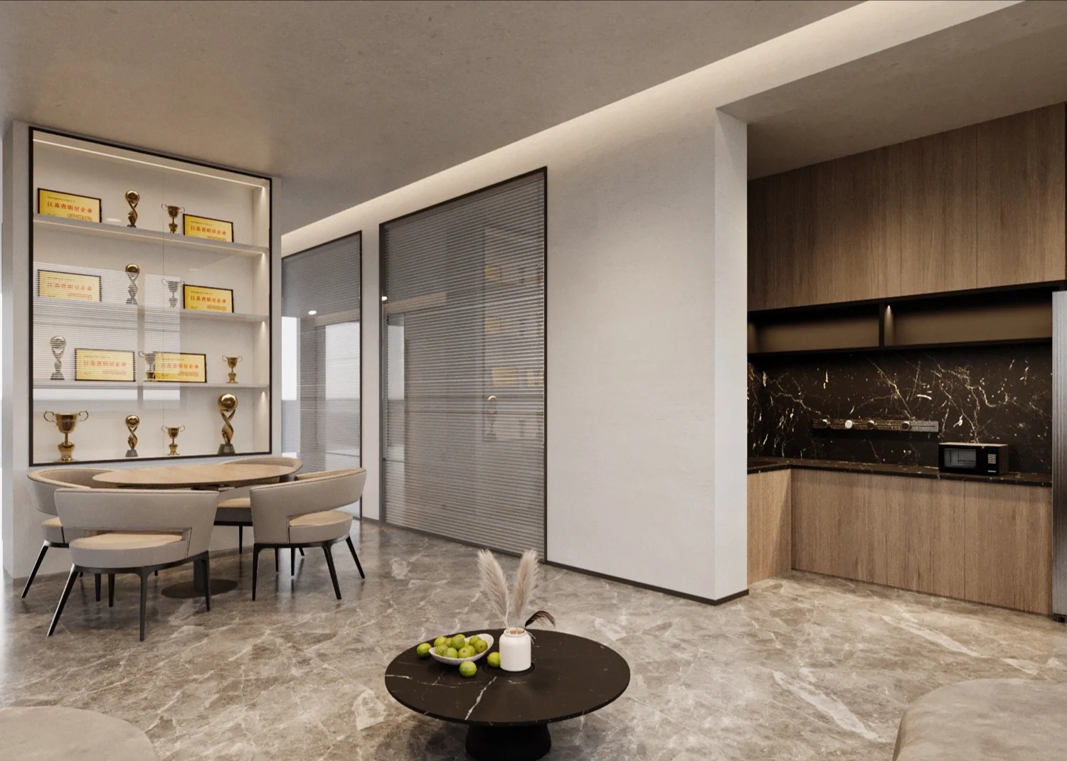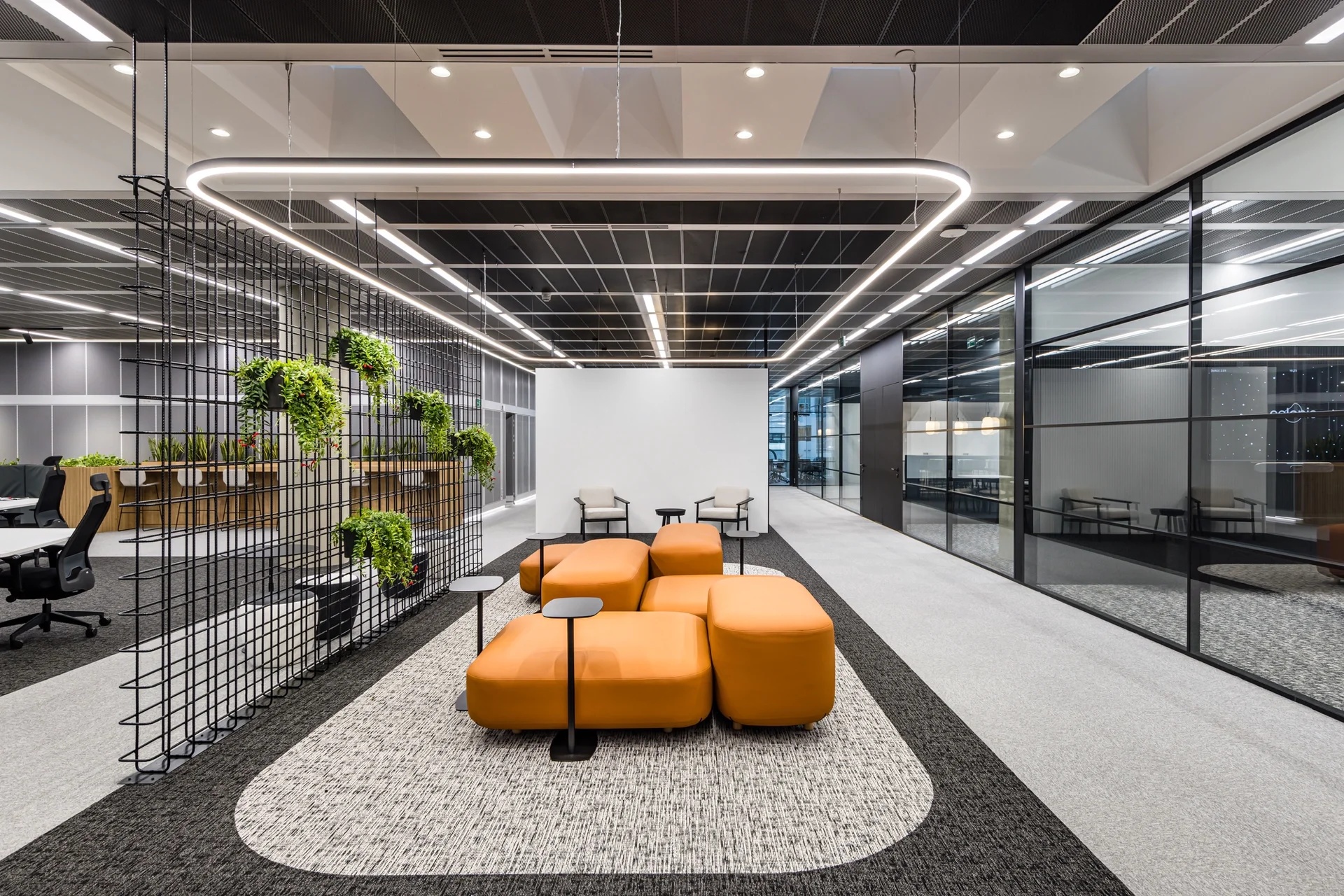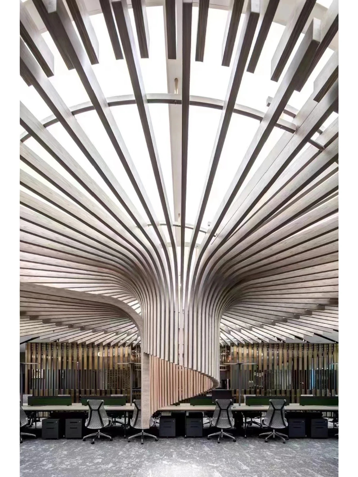 温暖明亮的配色、空间配置和动感形式,这些设计语言都旨在创建与公司结构相一致的文化气质。整个空间都在精心规划下确保最大限度地利用自然光照,而局部开放的天花板松造则增强了这种光影质感。其设计目的是让用户能够从入口和接待区的地方就能感知三维空间的深度。