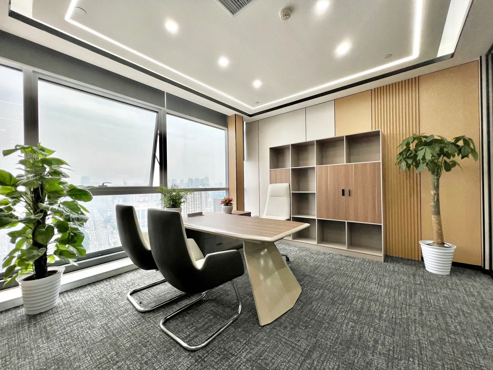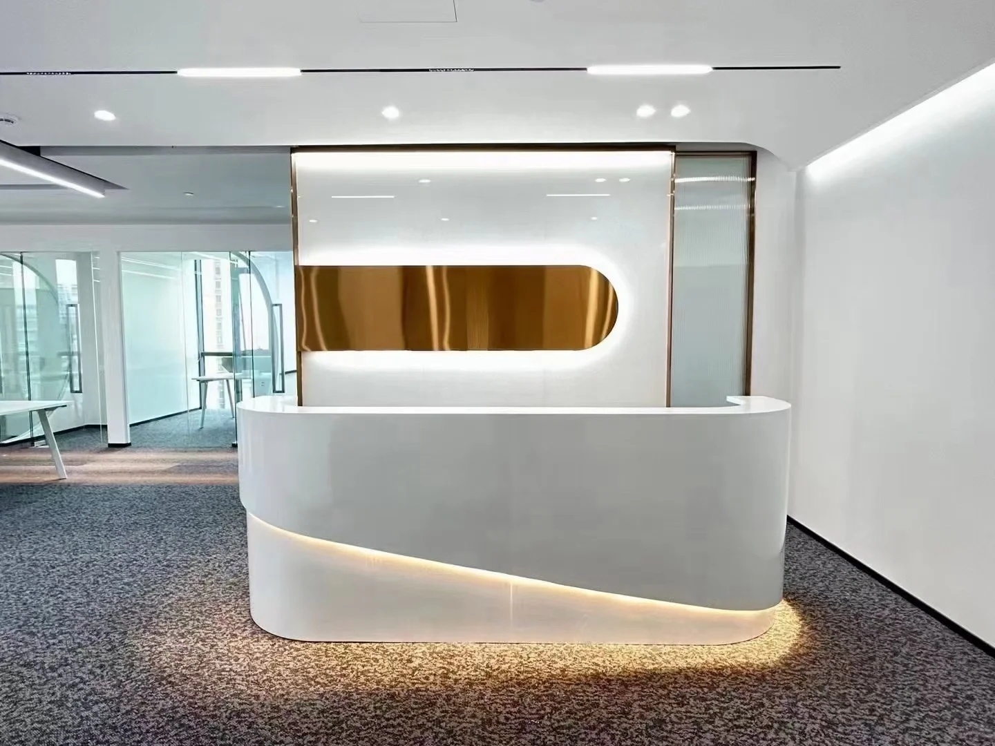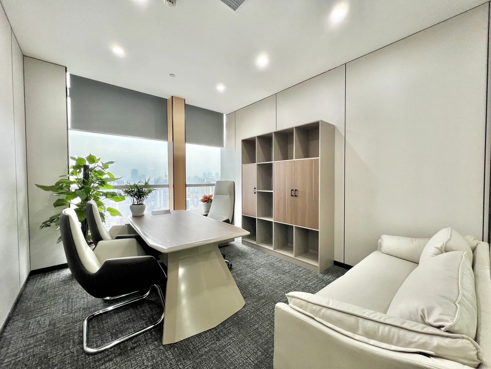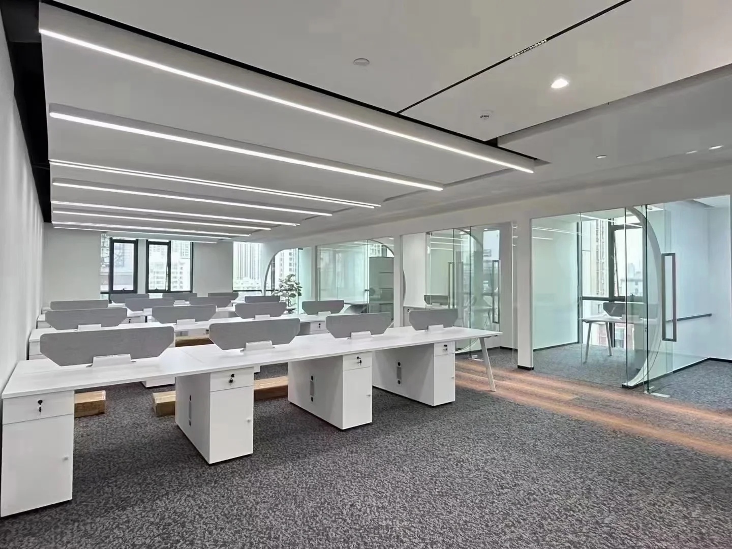 整体建筑设计采用国际化风格,建筑立面选用玻璃幕墙,金属格栅及干挂石材,整体色彩以浅色为主,配以蓝色的水面景观,营造科技感与时尚感,建筑形式简洁配以精致细节,保证落地效果;在充分考虑城市完整界面的同时,体现信汇集团科技创新的企业特点,彰显标志性、品质感及企业文化,打破传统化工企业的保守形象。