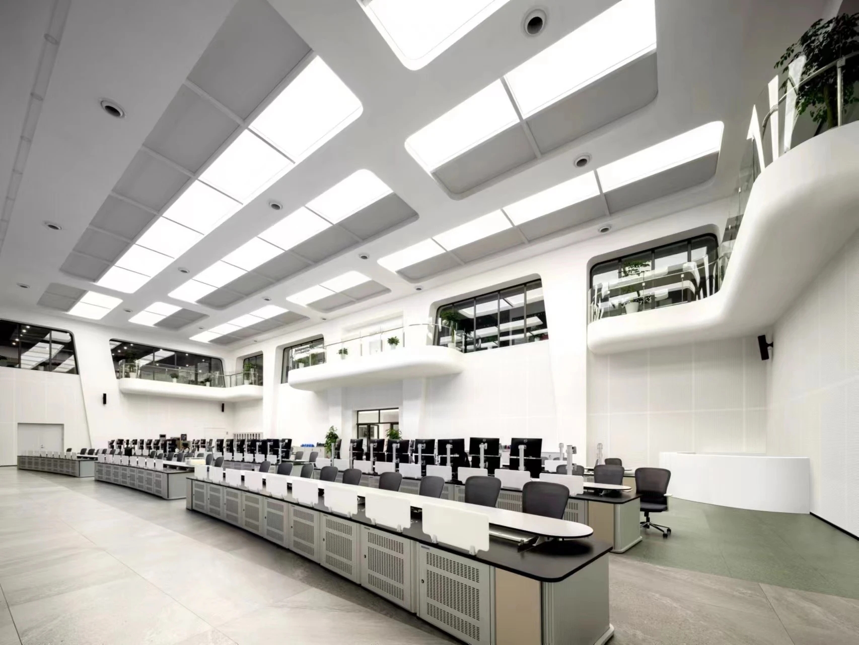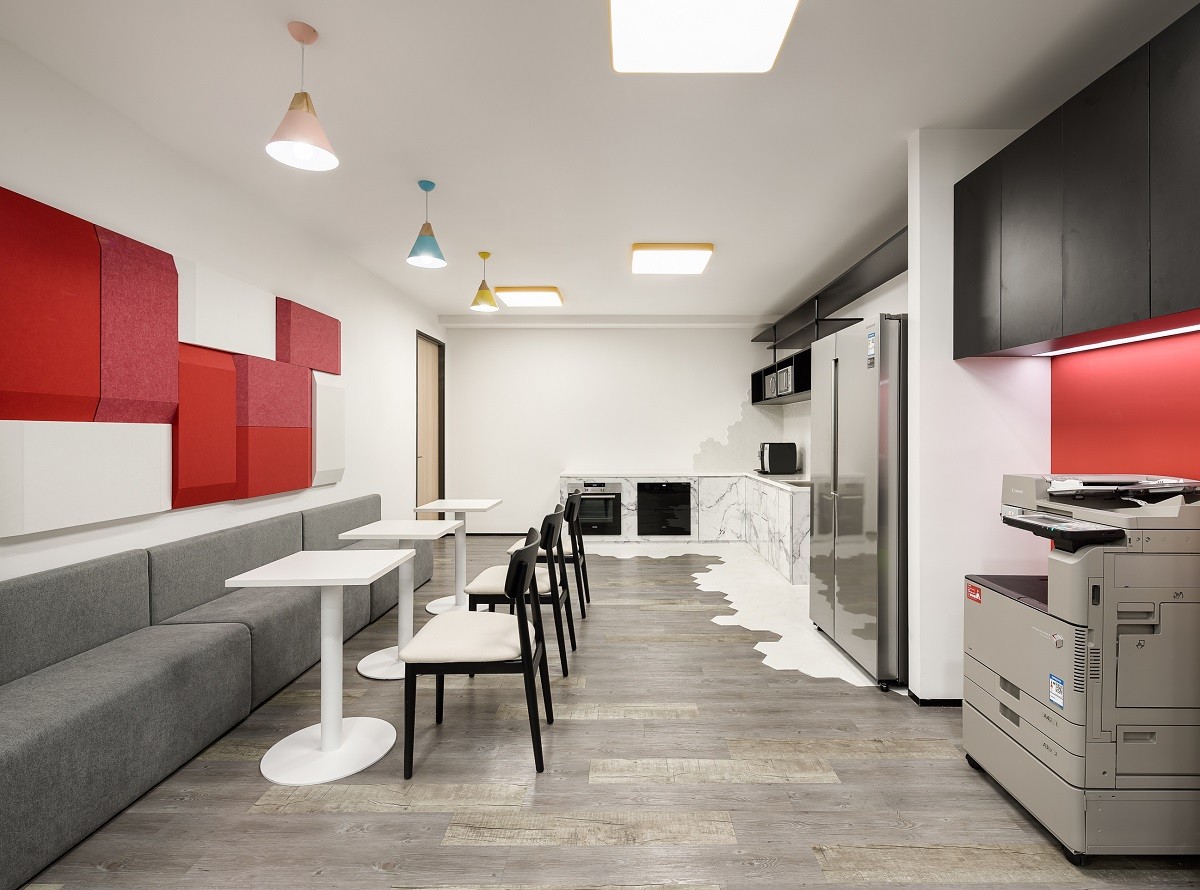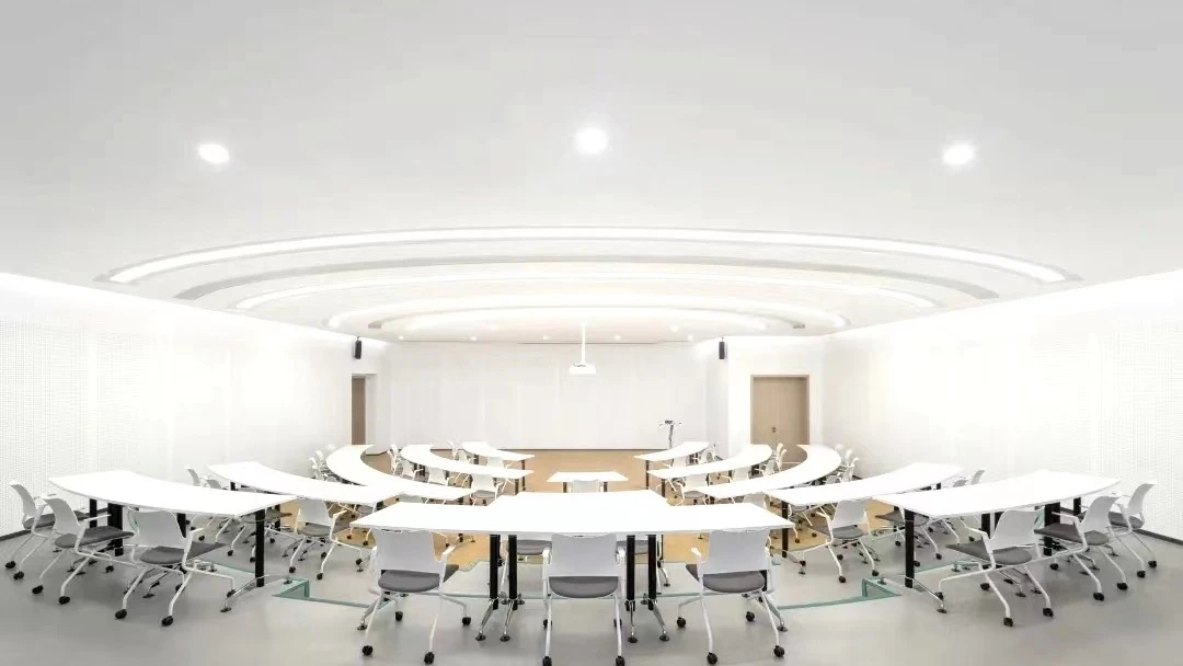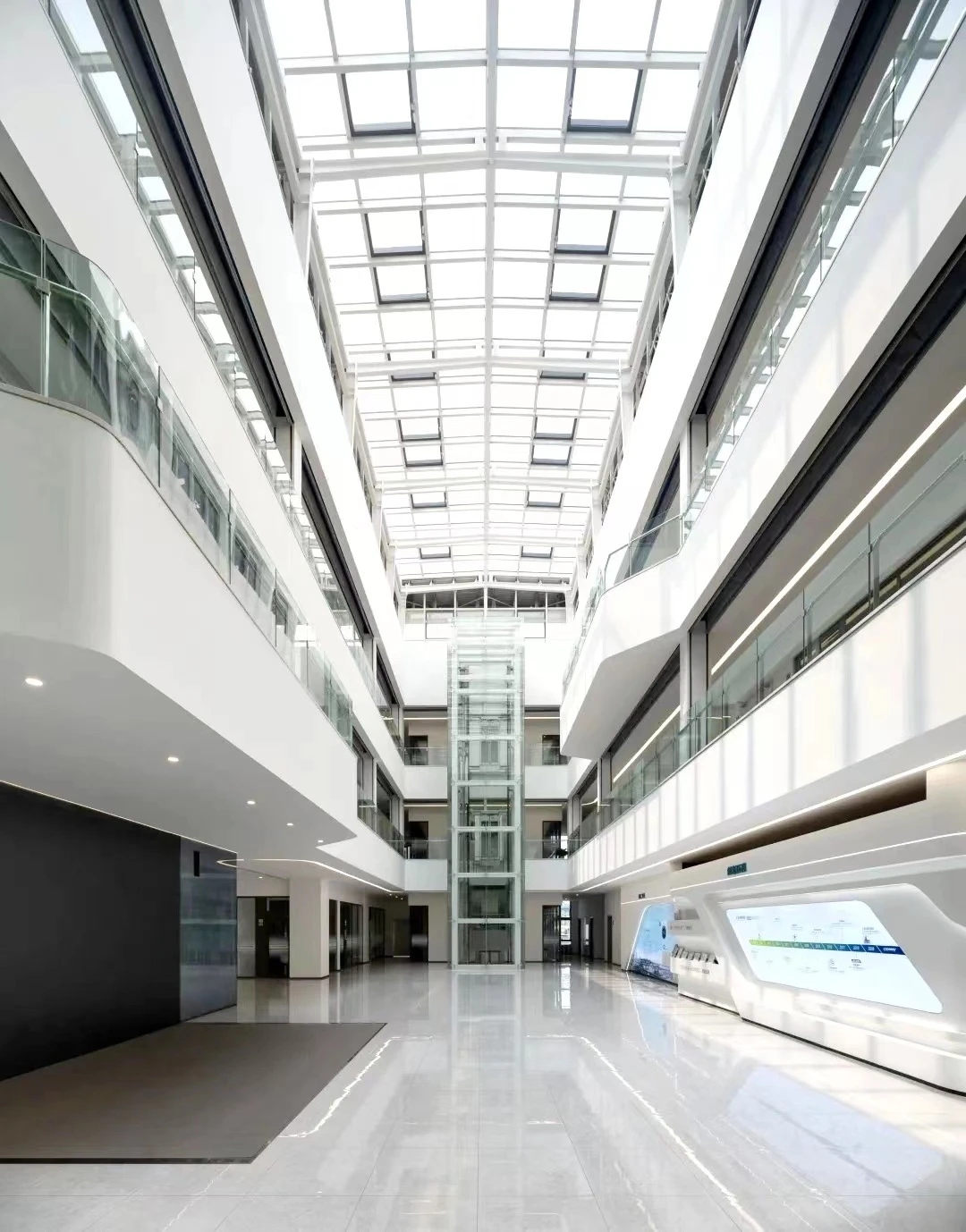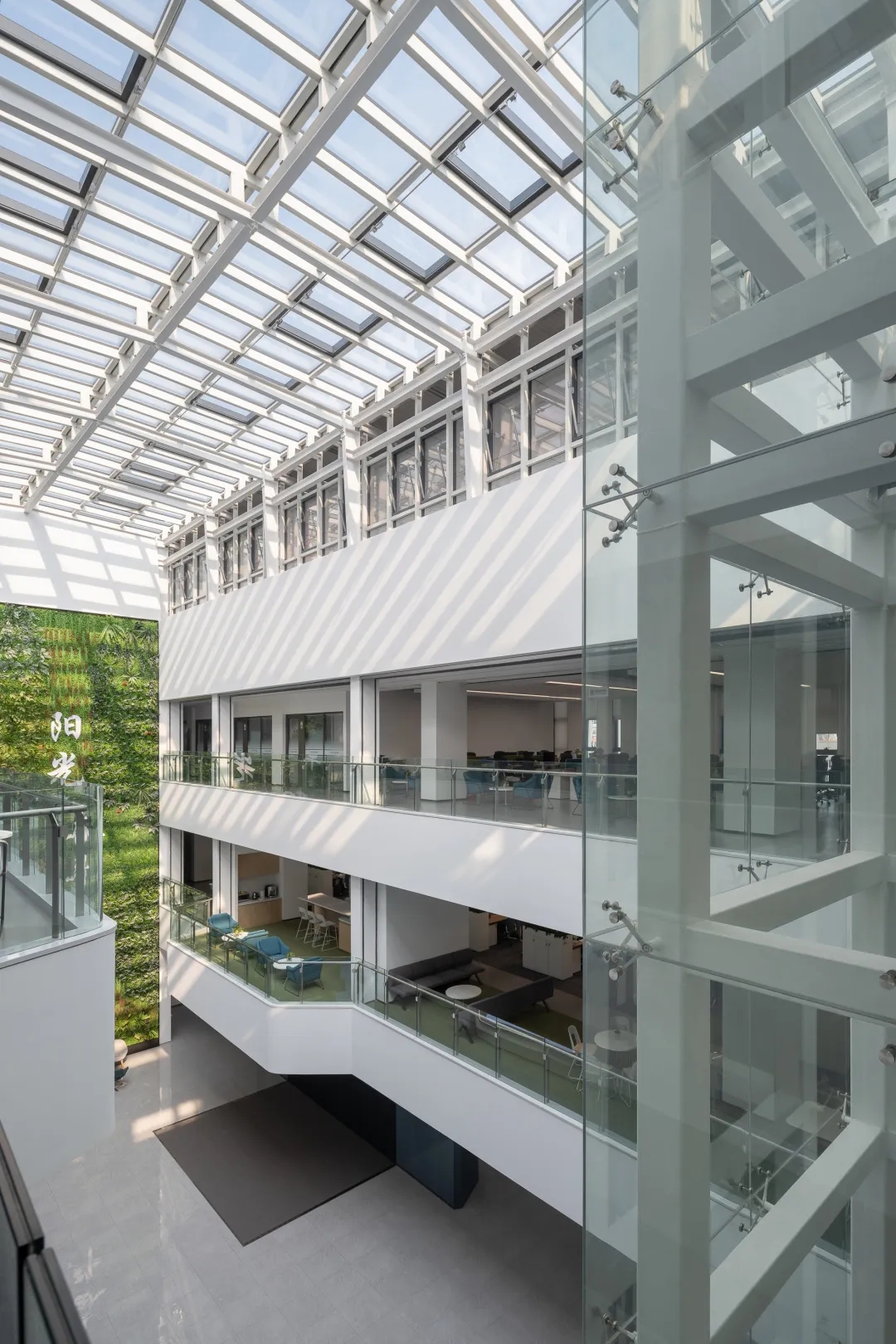 建筑功能布局体现现代化,建筑功能分三大部分:研究中心办公楼、实验楼和餐厅,三大功能相互独立又相互联系,办公人员可以通过室外连廊到达各个功能分区;研究中心办公楼采用回字形布局,环绕通高的采光中庭,为办公人员提供交流、休憩的室内空间。