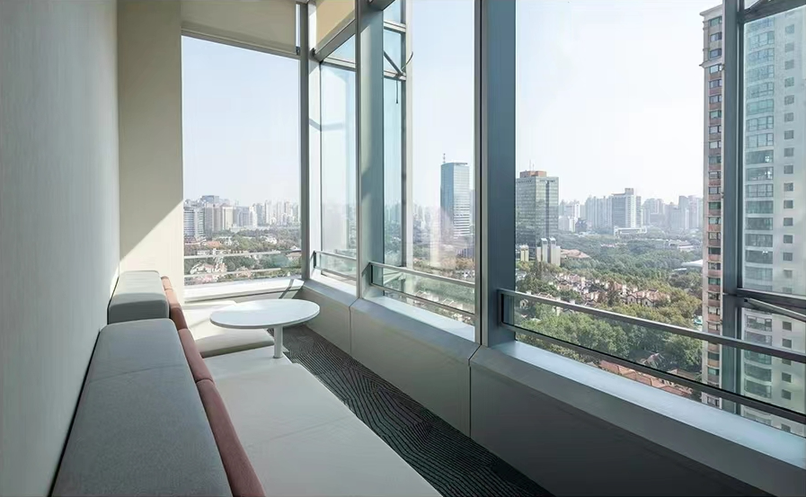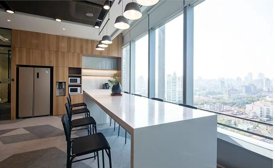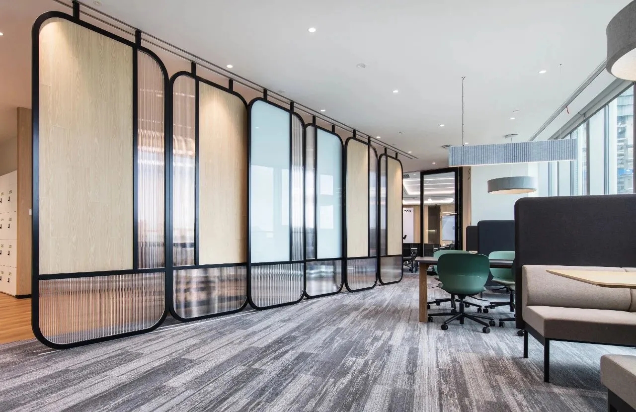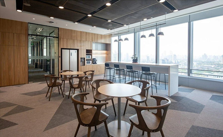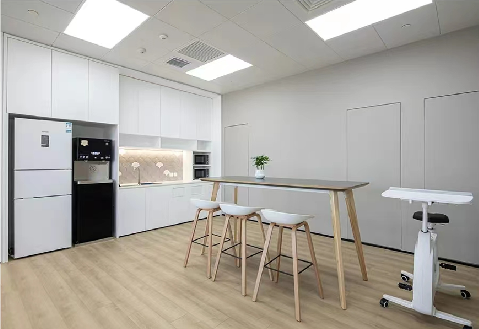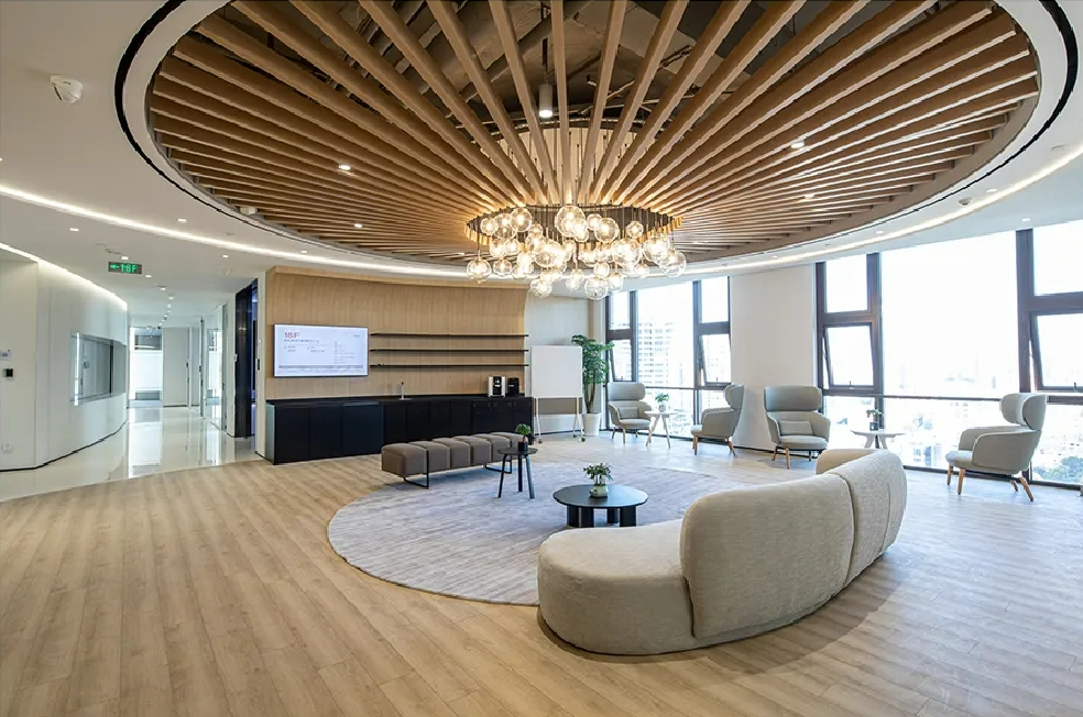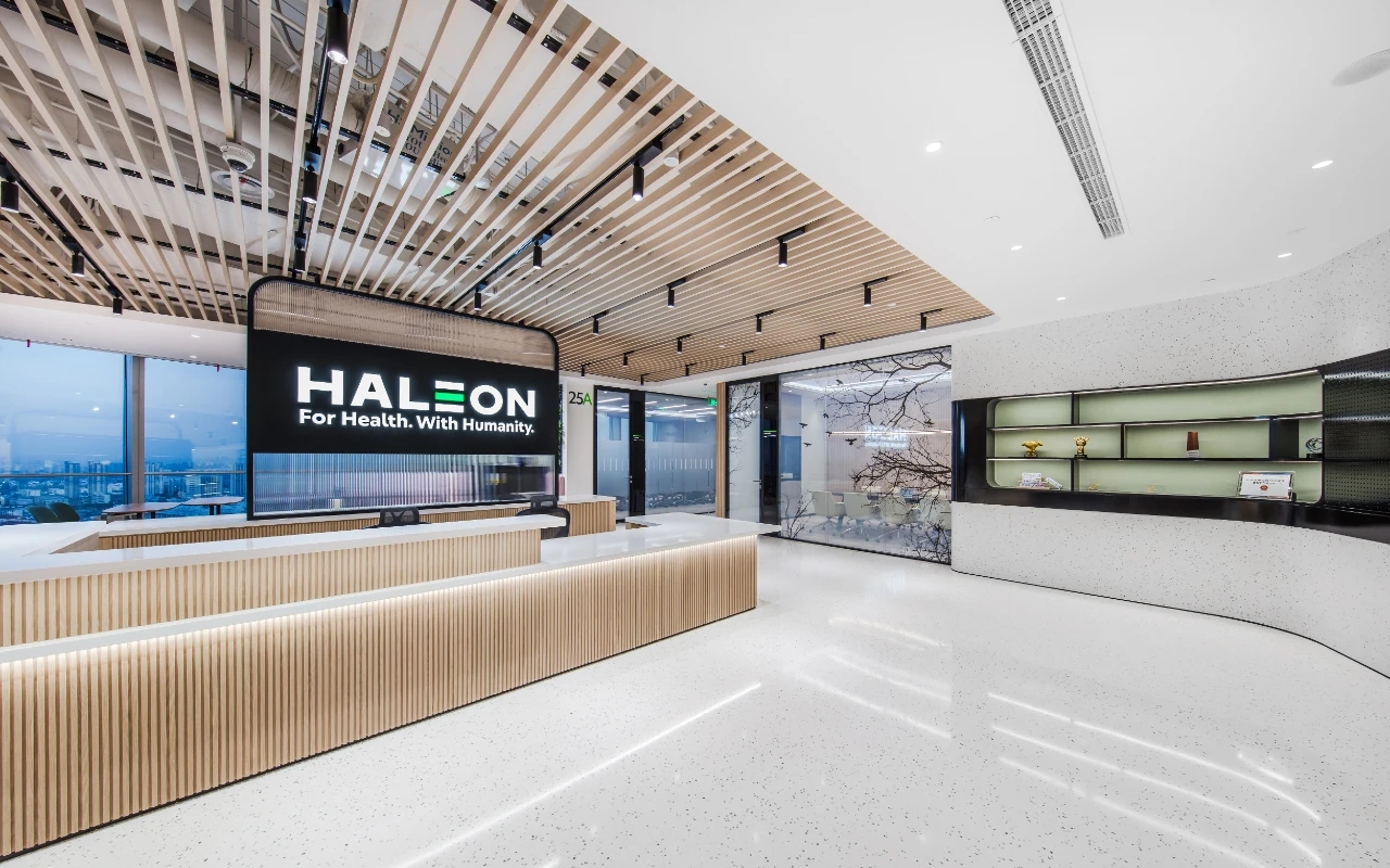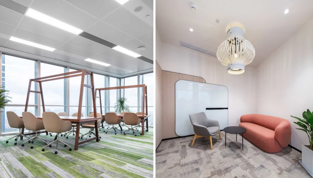 设计中体现了社区精神、展现了上海本土文化,提倡工作与生活平衡的设计理念。为了体现HALEON上海办公室的人文理念,设计师从上海市中心的植物园区域中汲取灵感,创造了一个“社区公园”的概念。这些充满城市能量和文化的景观元素,在设计中充分的体现;大面积的绿植应用在办公空间的各个区域中,给人一种置身于花园中的感受,不仅丰富了空间的层次,也缓解了工作中的视觉疲劳。