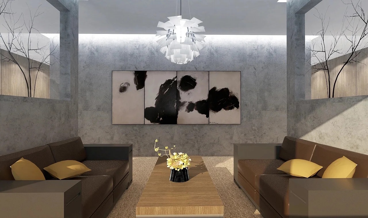 在极简风格中常用的手法是留白,打造出留白空境的感受。“空”并非虚无,而有无实之假名;色不异空、空不异色,破执世俗所取色外别有真空。
