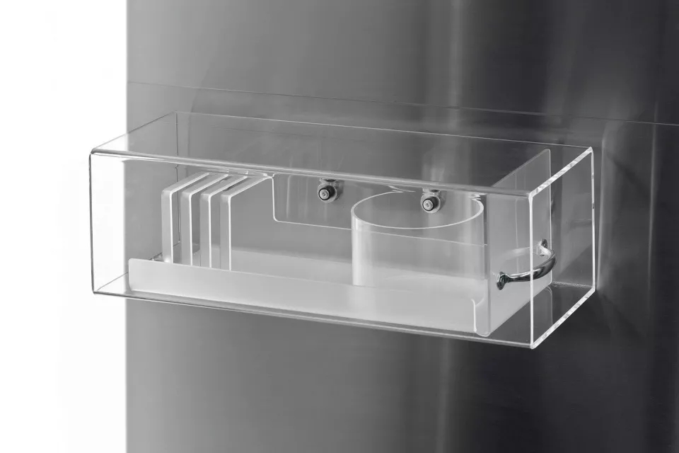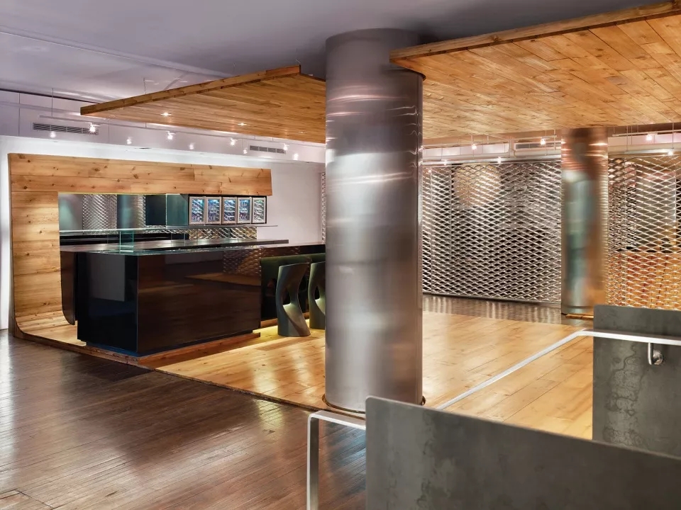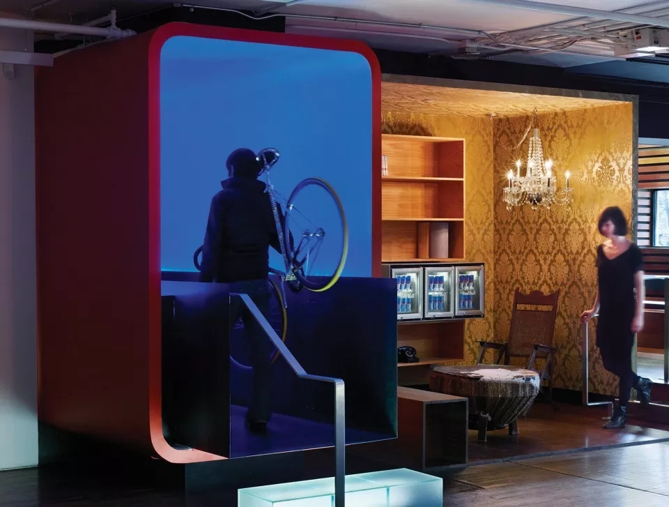 这里是一个思想碰撞的场所,为了及时地将将瞬间迸发的灵感记录下来,建筑师在中庭空间内设计了一片名为“记忆碎片之墙”的二层高的墙体。墙上可以嵌入透明的丙烯酸方盒子,盒子里可以放置任何物品、写作手稿和其他的突发灵感,以便于为来此参加活动的艺术家们提供创作的灵感来源。