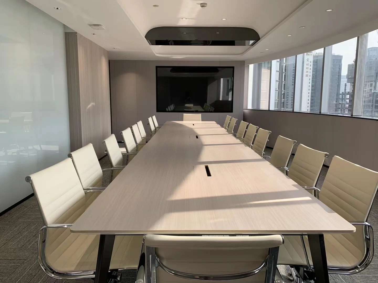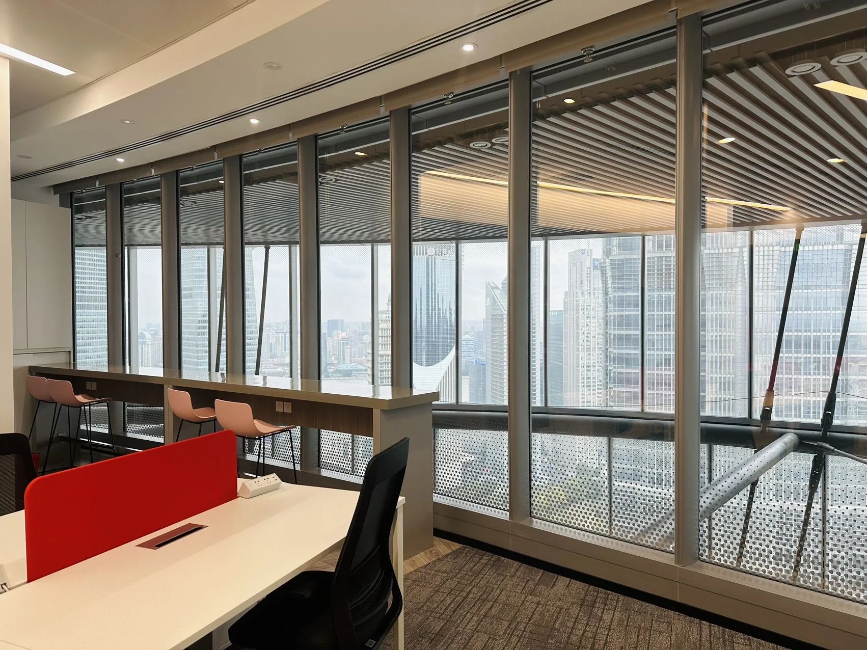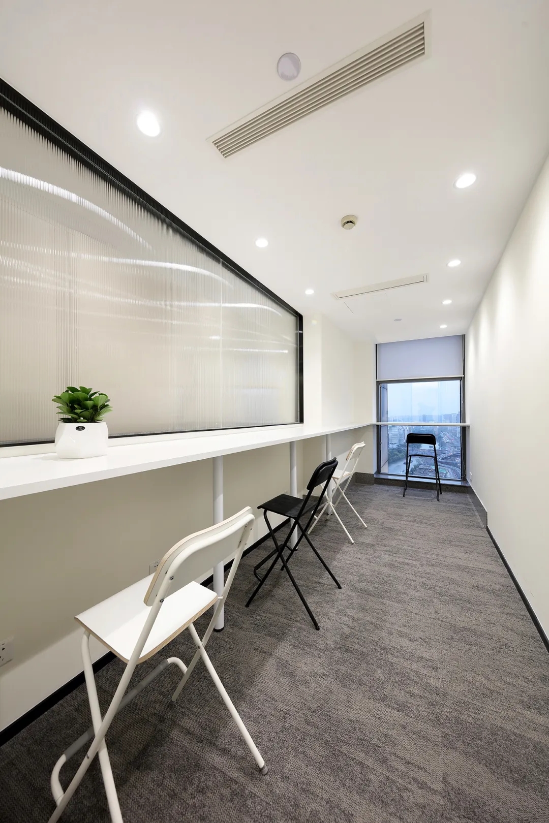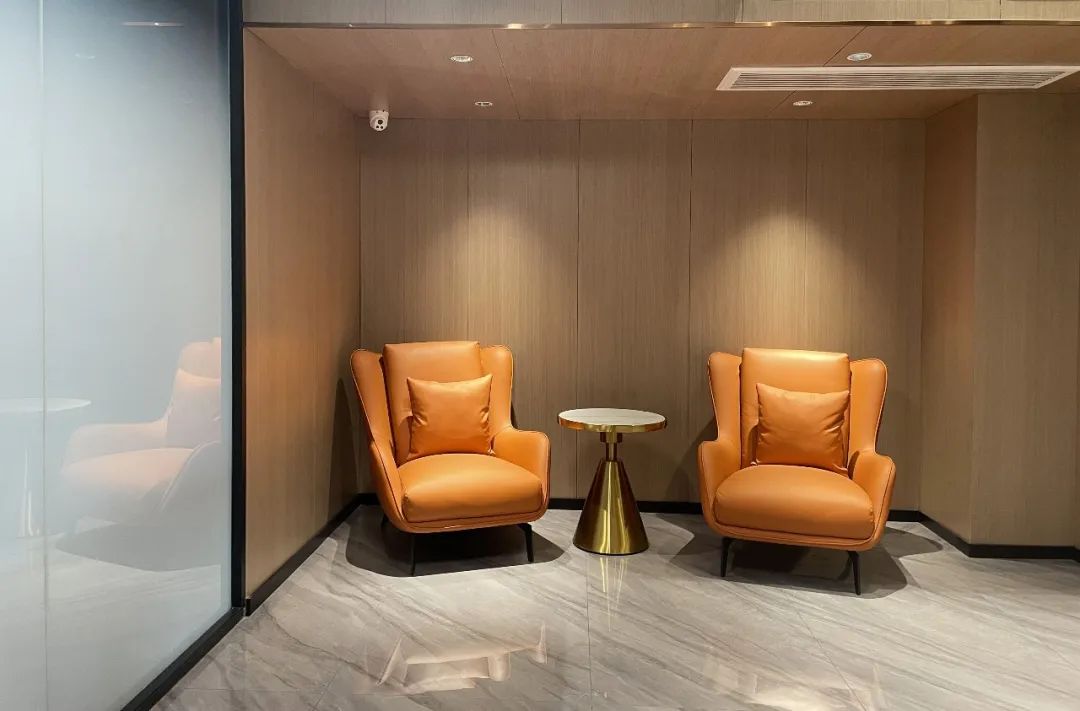 茶水区,这里还有一处非常特别的空间,位于前厅logo墙后,也位于整个空间的中心,方便员工或访客在舒适的环境中交流协作,员工可以喝着喜欢的饮料/咖啡聊聊天,重新蓄满能量后再次回到工作中。充足的自然光和开阔的城市景观视野,在温馨恬淡的氛围中完美的诠释了“兼相爱、和为贵、重友谊”的企业精神。