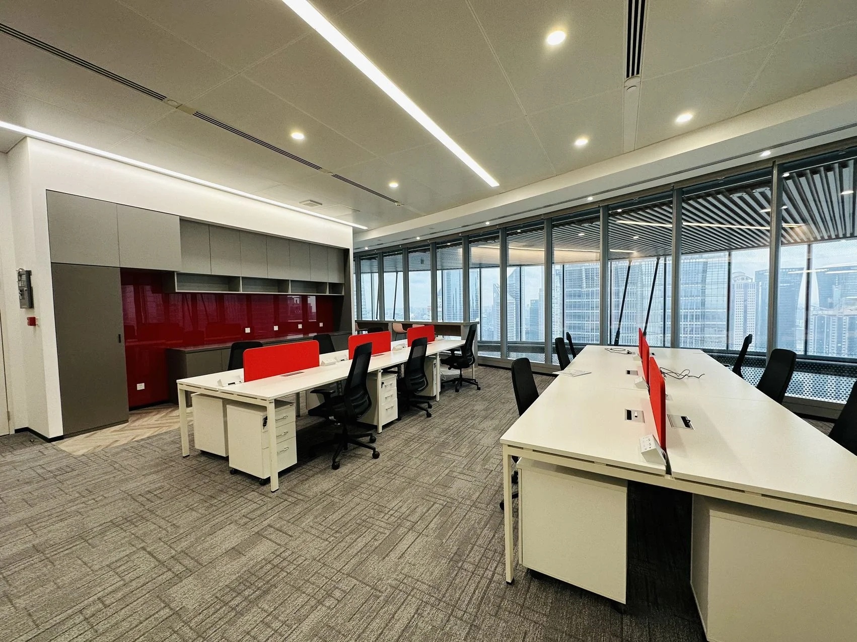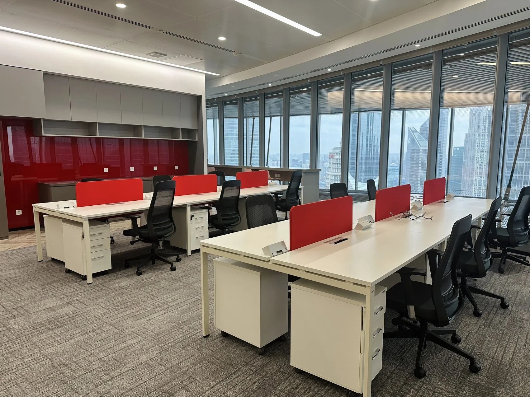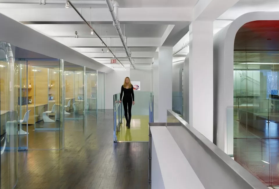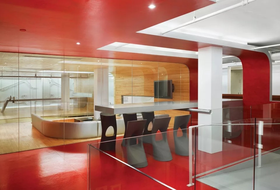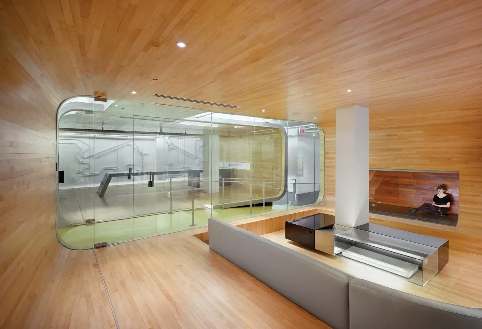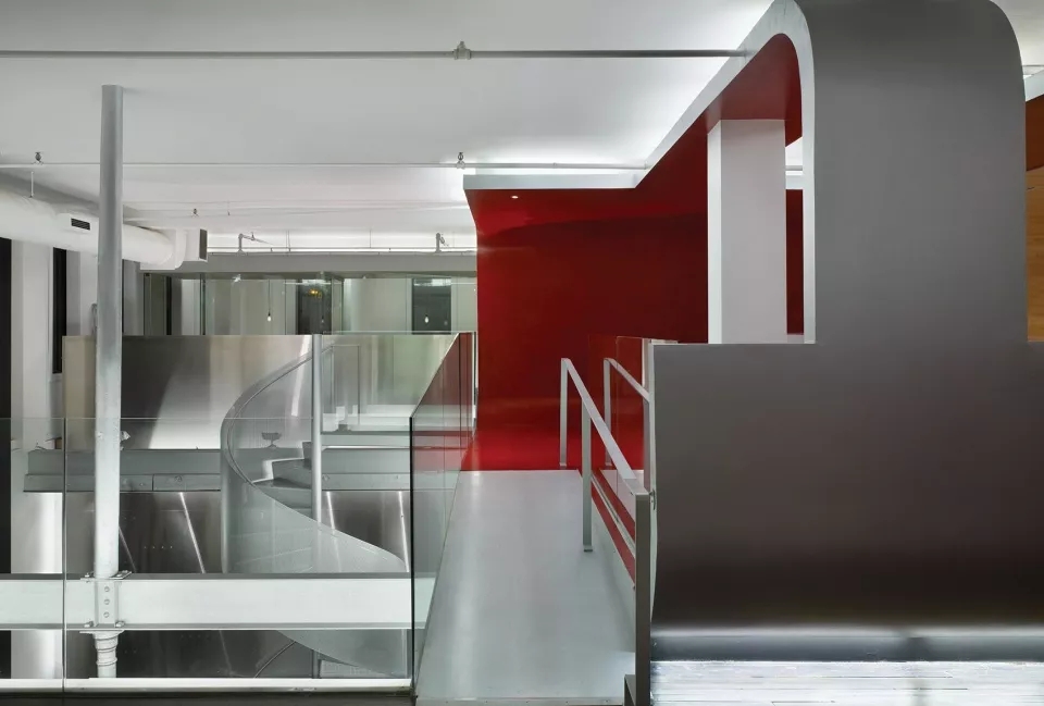 茶水区,这里还有一处非常特别的空间,位于前厅logo墙后,也位于整个空间的中心,方便员工或访客在舒适的环境中交流协作,员工可以喝着喜欢的饮料/咖啡聊聊天,重新蓄满能量后再次回到工作中。充足的自然光和开阔的城市景观视野,在温馨恬淡的氛围中完美的诠释了“兼相爱、和为贵、重友谊”的企业精神。