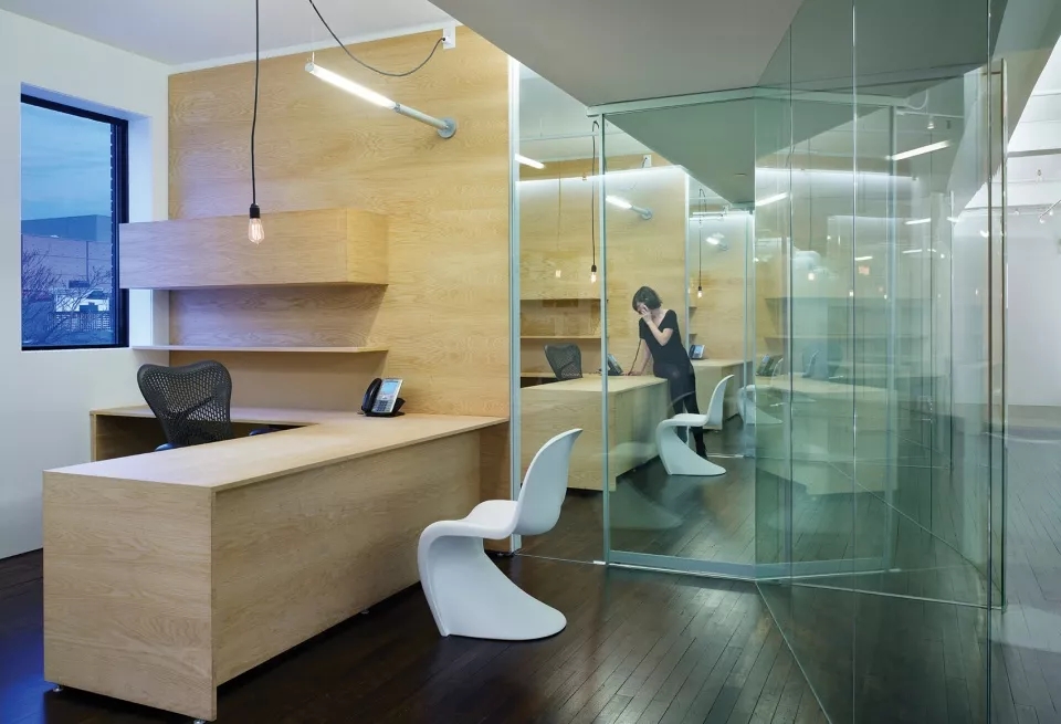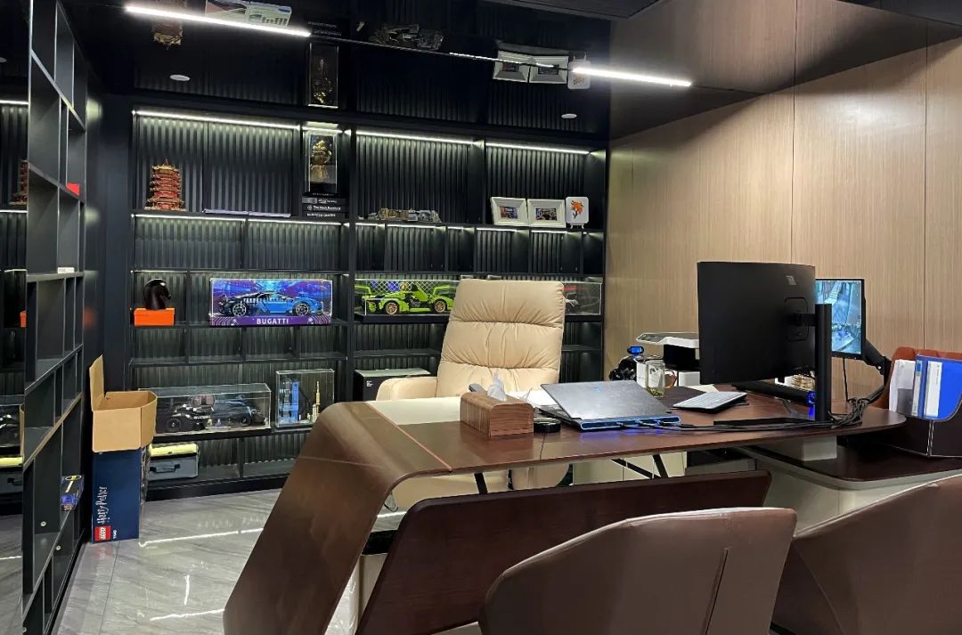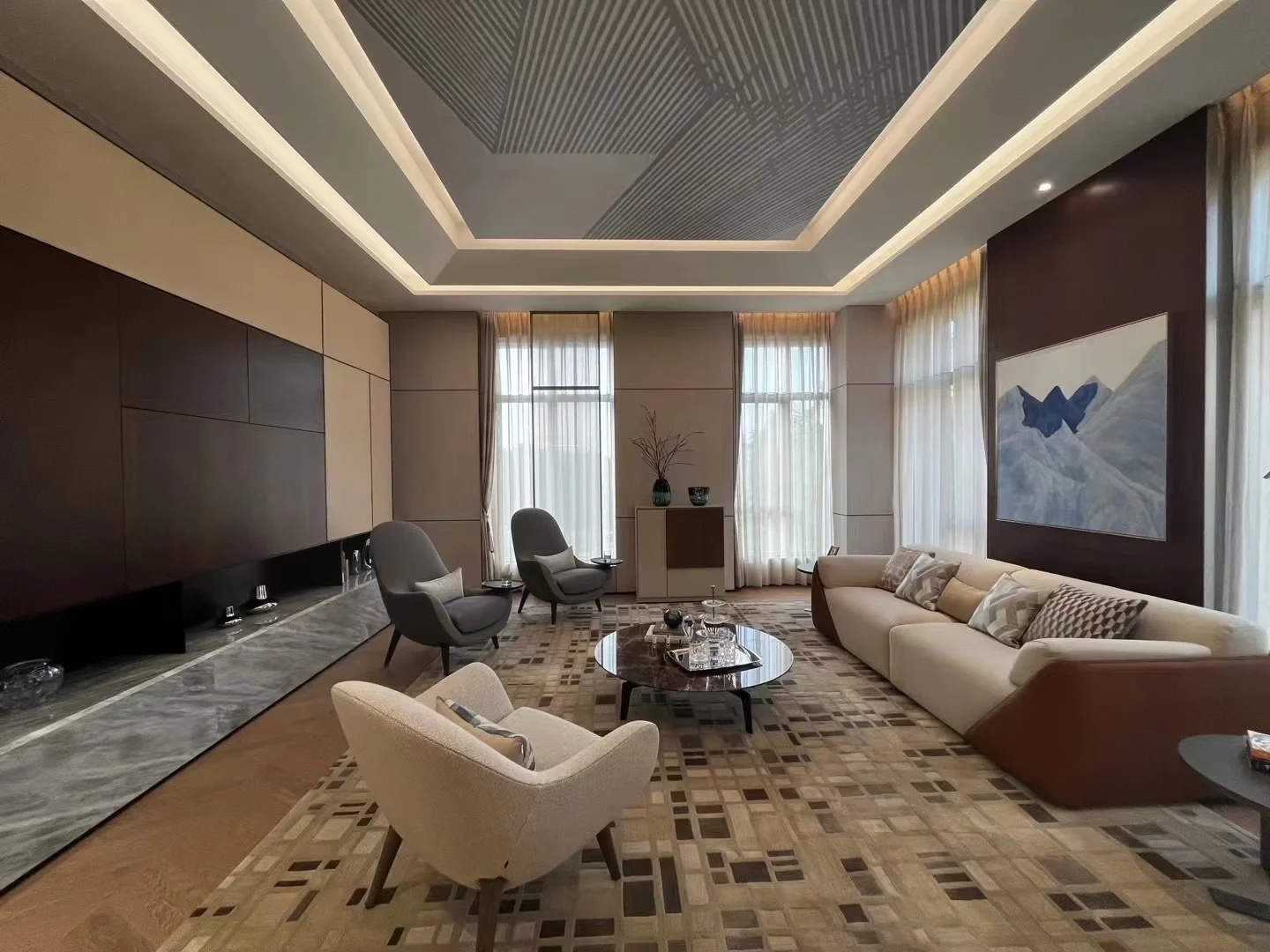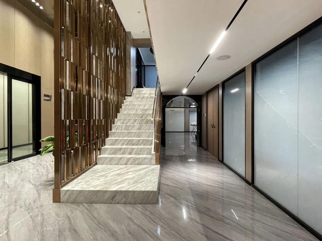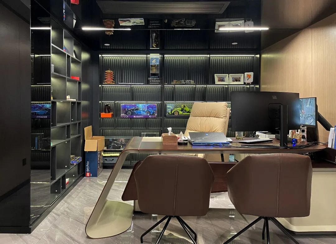 淡雅的木饰面、神秘高雅的墨绿色、隐约透光的玻璃隔间,让整个空间在简约凝练的现代美学中增添了时尚与沉稳的气息。