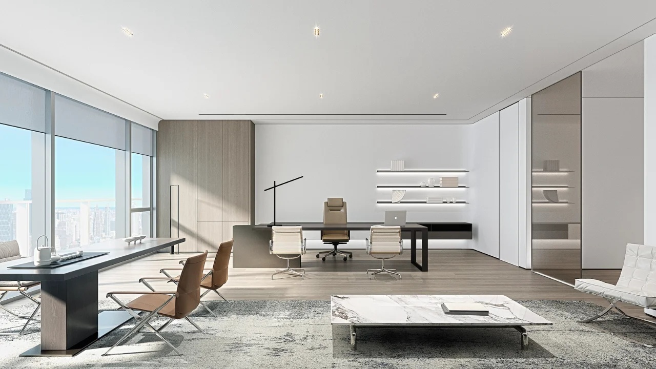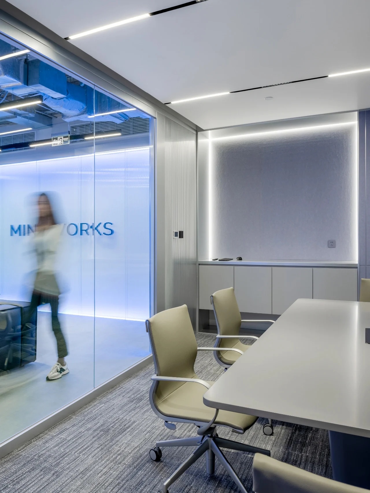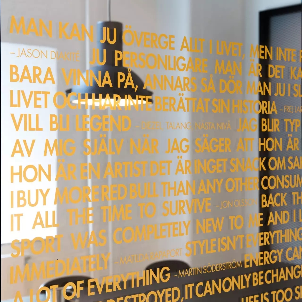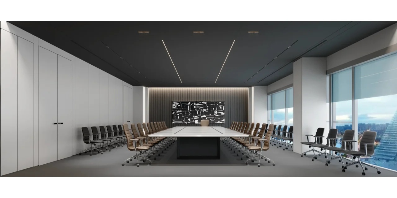 该项目的设计灵感来源于红牛的企业精神和标志,设计师将阳光、菱形、公牛和字体作为主要设计元素。大量的皮革家具代表公牛,圆形家具则寓意着阳光,而带有菱形图案的家具、地毯以及附有字体的丝网印刷玻璃都体现了红牛品牌标识中的菱形元素,为人们营造出一种唯美、和谐的感觉。白色作为室内的背景色,得到大面积运用,时尚且浪漫,不禁让人联想起地处北欧的斯德哥尔摩这里常常是一片冰雪的天地,设计师寻求的正是这样一种天然寂静和唯美浪漫的感觉。整个室内采用褐色作为点缀色,低调优雅。在褐色接待台的上方,醒目地标识着金色的红牛公司LOGO。蓝色和黄色作为互补色,不仅给人带来视觉上的冲击,更是为空间增添了生机与活力。