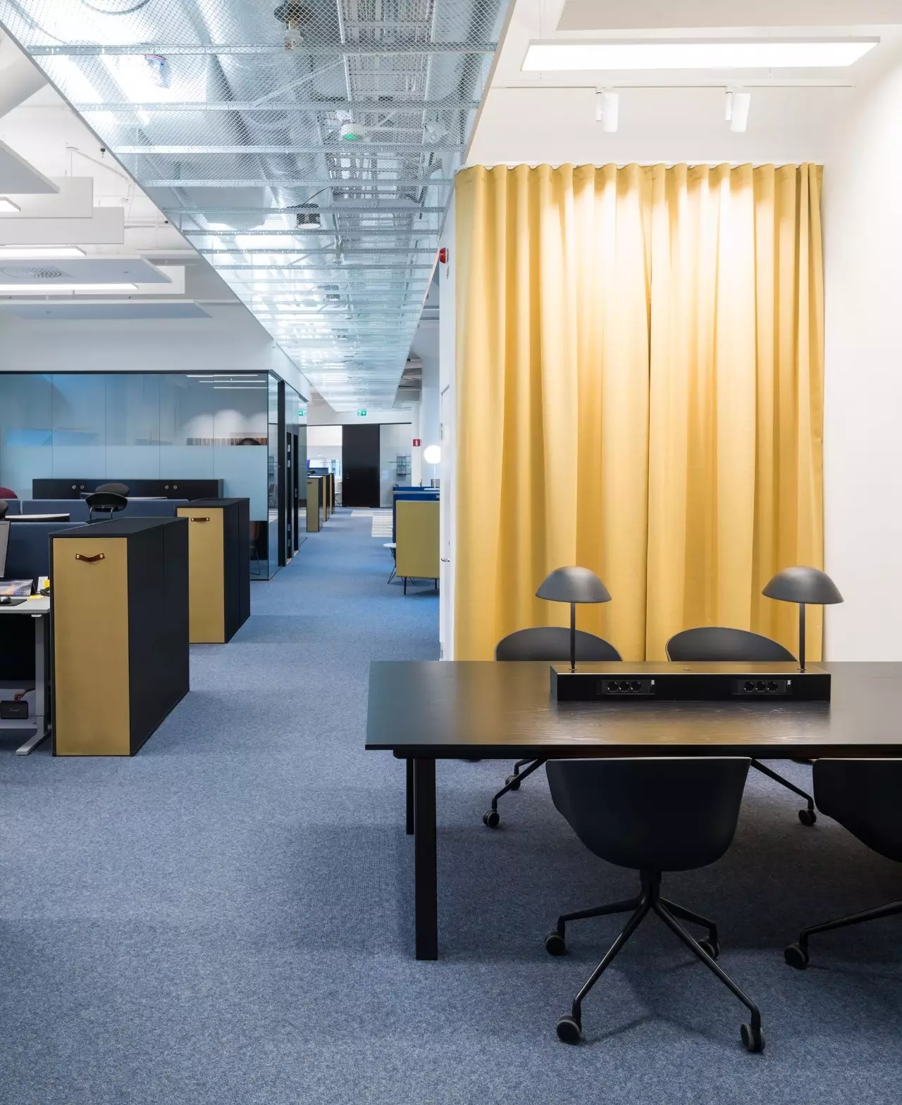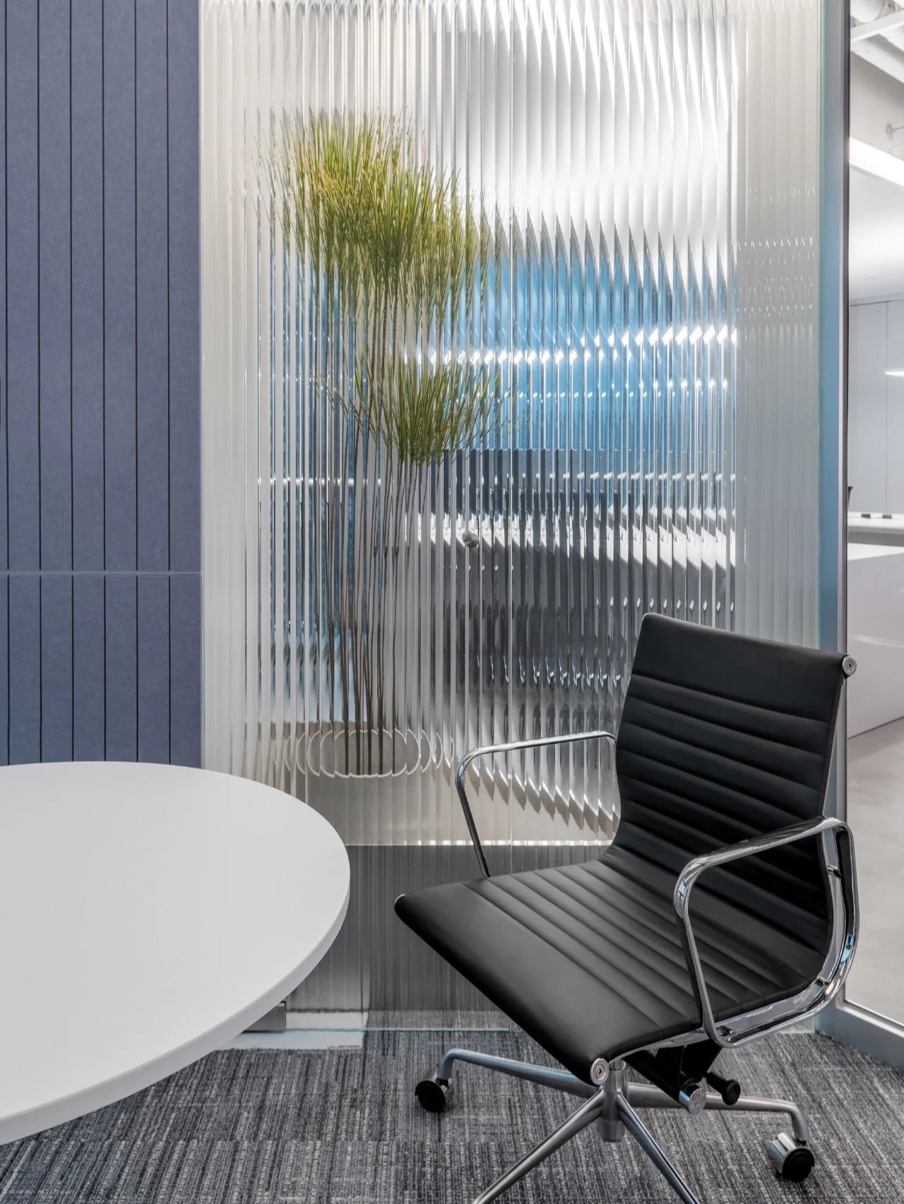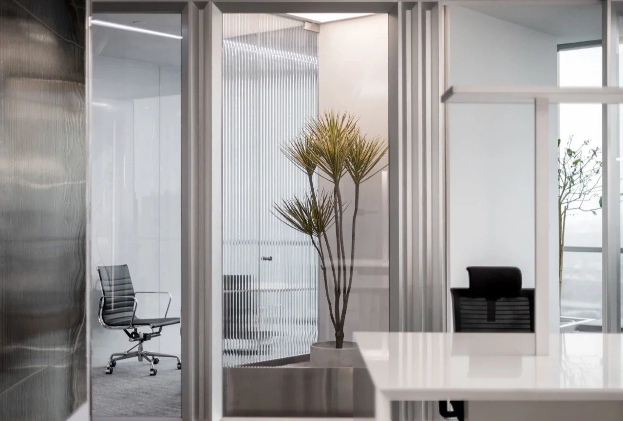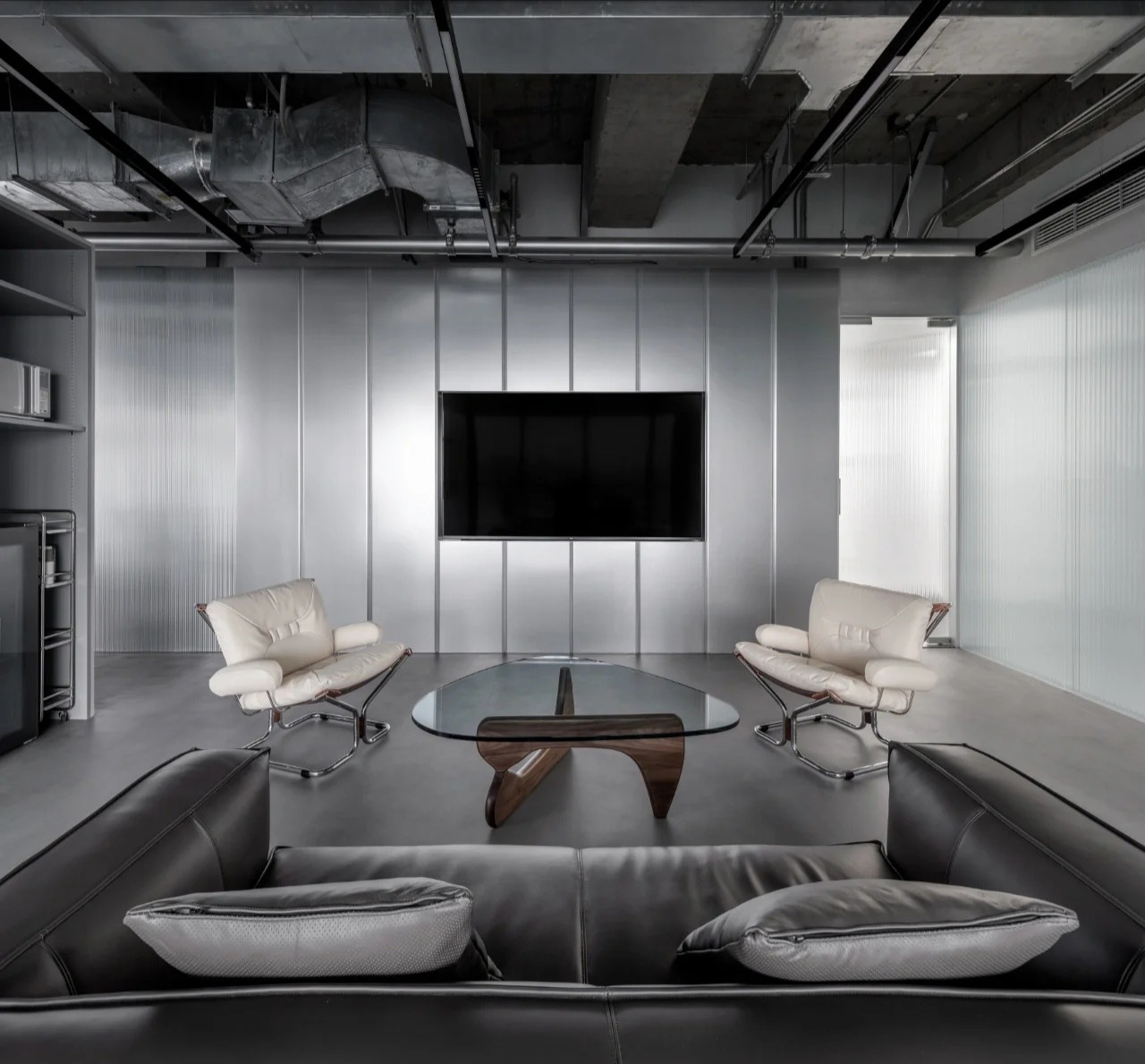 该项目的设计灵感来源于红牛的企业精神和标志,设计师将阳光、菱形、公牛和字体作为主要设计元素。大量的皮革家具代表公牛,圆形家具则寓意着阳光,而带有菱形图案的家具、地毯以及附有字体的丝网印刷玻璃都体现了红牛品牌标识中的菱形元素,为人们营造出一种唯美、和谐的感觉。白色作为室内的背景色,得到大面积运用,时尚且浪漫,不禁让人联想起地处北欧的斯德哥尔摩这里常常是一片冰雪的天地,设计师寻求的正是这样一种天然寂静和唯美浪漫的感觉。整个室内采用褐色作为点缀色,低调优雅。在褐色接待台的上方,醒目地标识着金色的红牛公司LOGO。蓝色和黄色作为互补色,不仅给人带来视觉上的冲击,更是为空间增添了生机与活力。