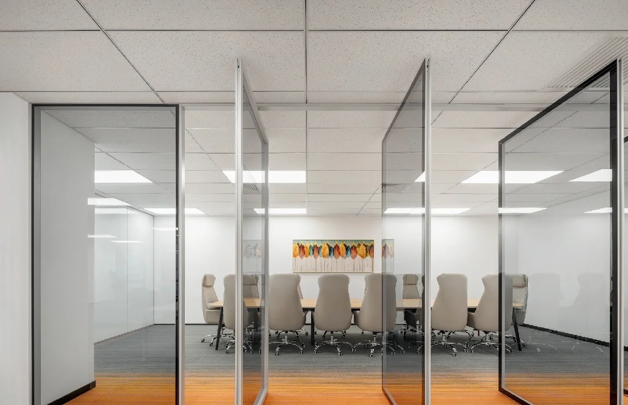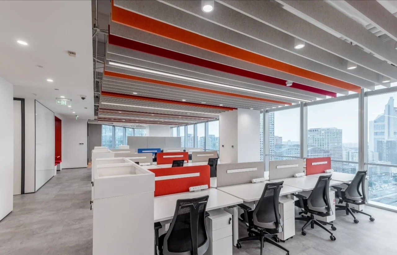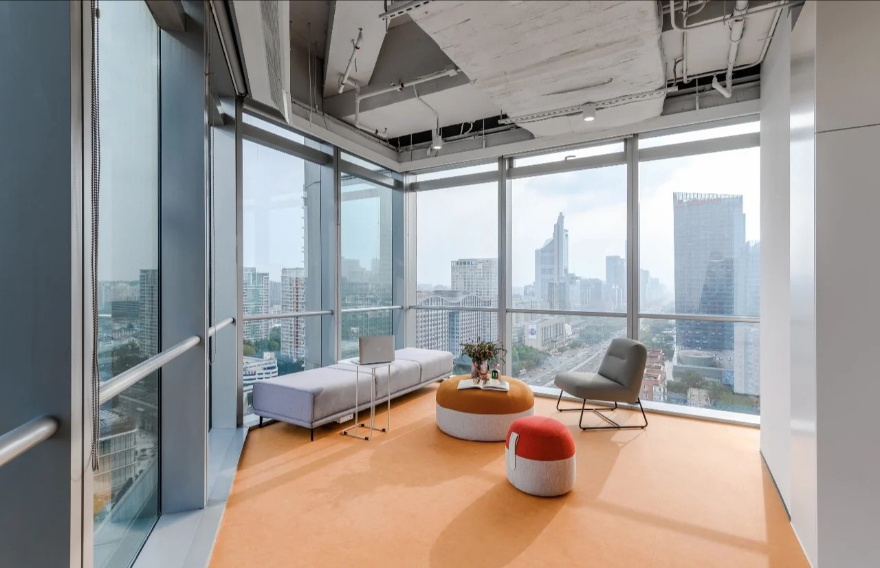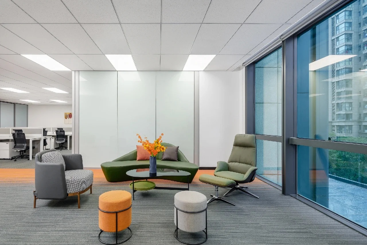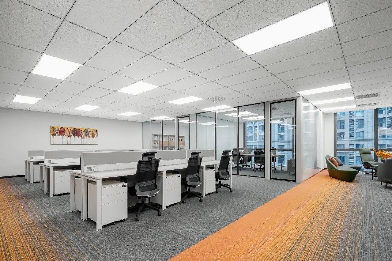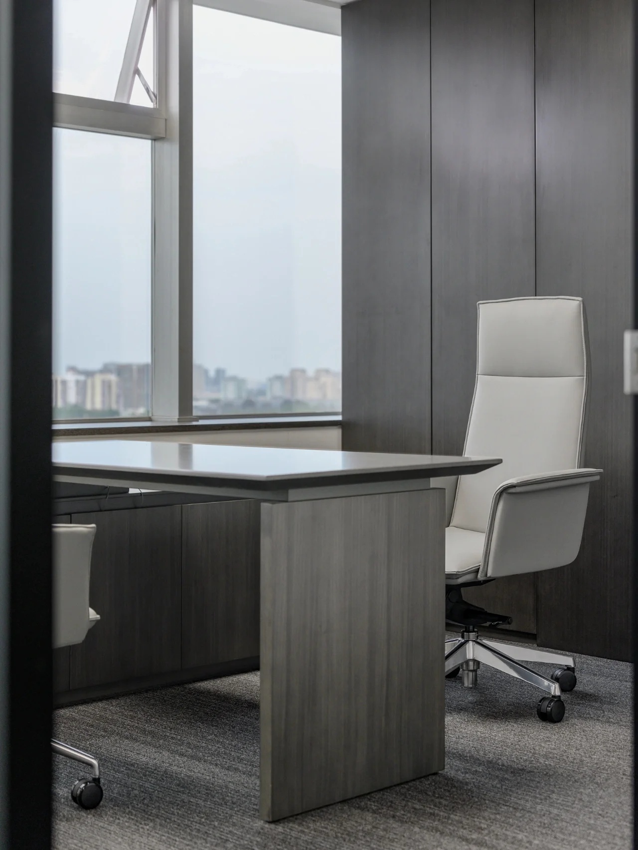 该案例为一个L型500㎡的办公空间,考虑到办公日常需求,设计师在布局方面将部分空间改为双层,将空间利用最大化来满足日常办公的需求在材料方面,地面统一采用了灰色的水磨石,墙面和隔断则采用仿木地板拼装。