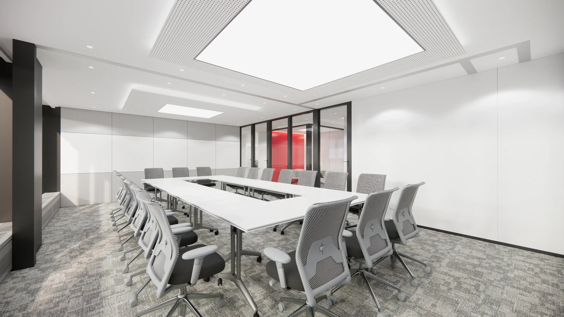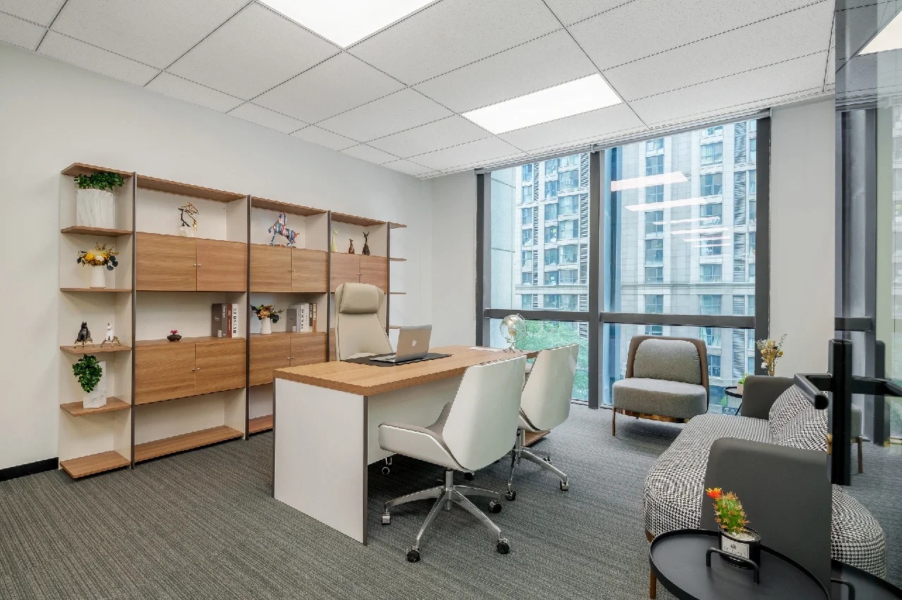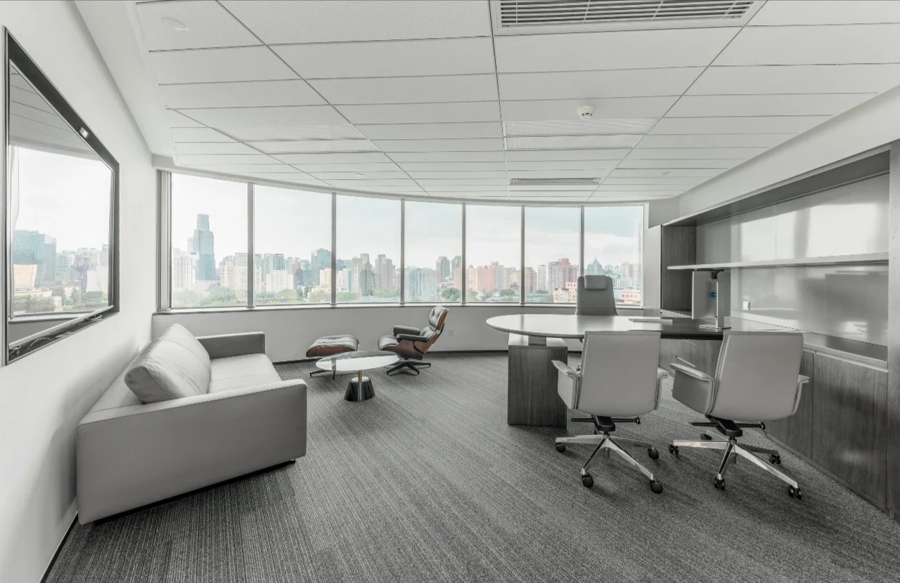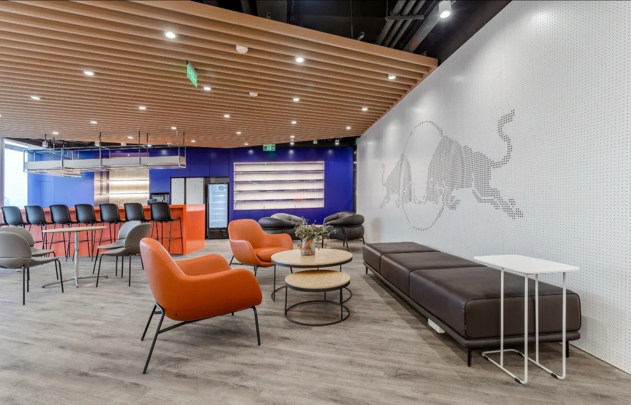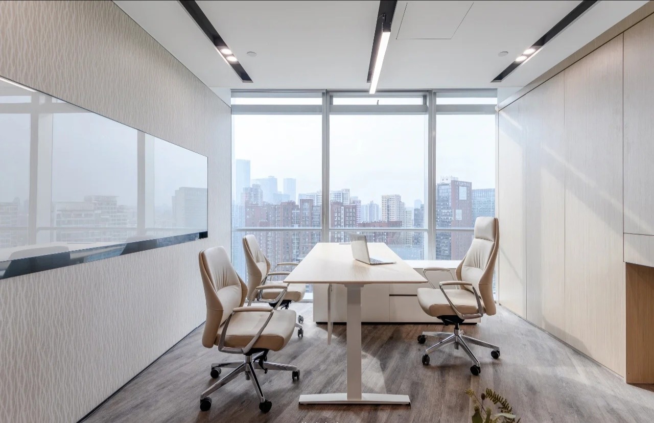 该案例为一个L型500㎡的办公空间,考虑到办公日常需求,设计师在布局方面将部分空间改为双层,将空间利用最大化来满足日常办公的需求在材料方面,地面统一采用了灰色的水磨石,墙面和隔断则采用仿木地板拼装。