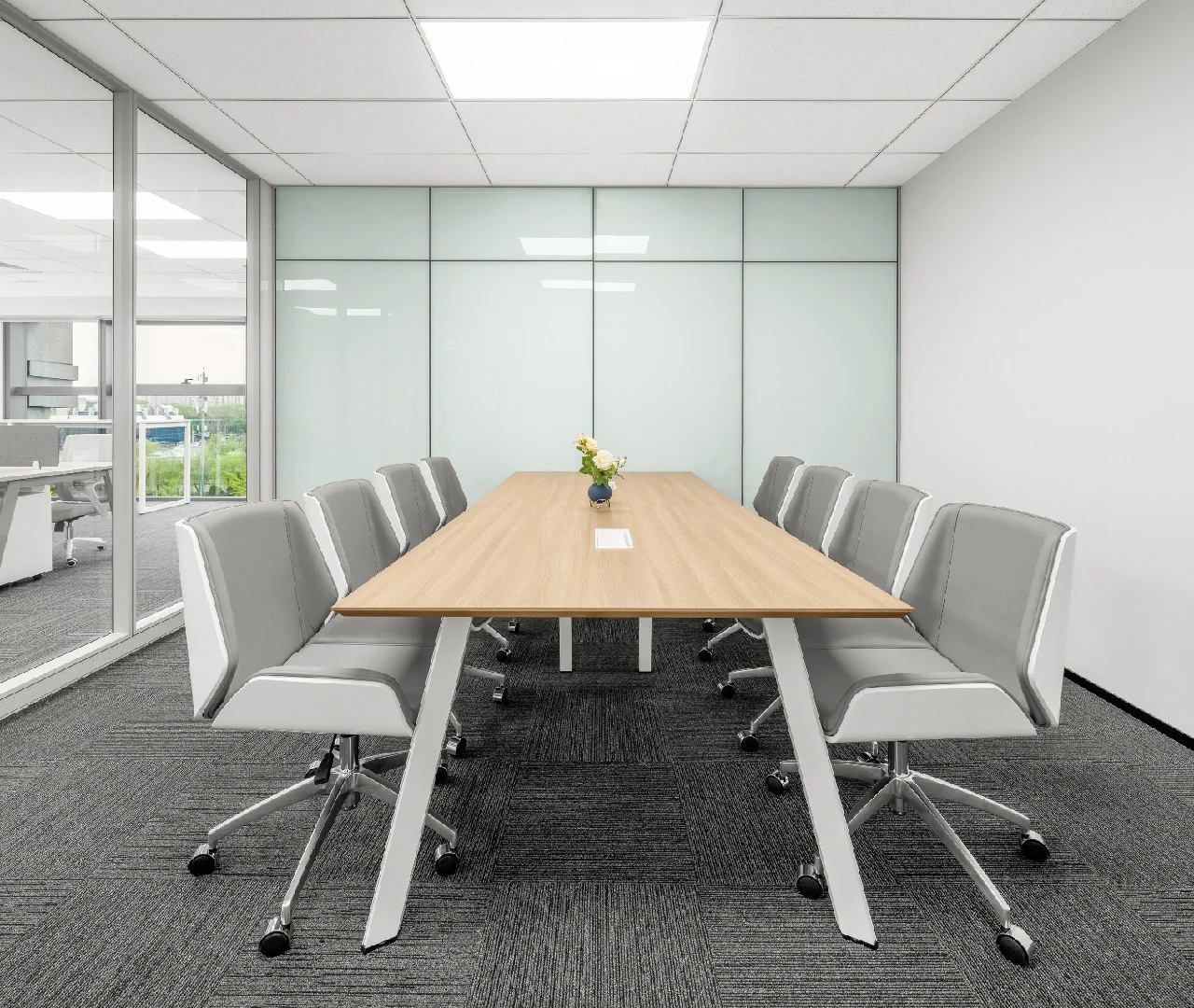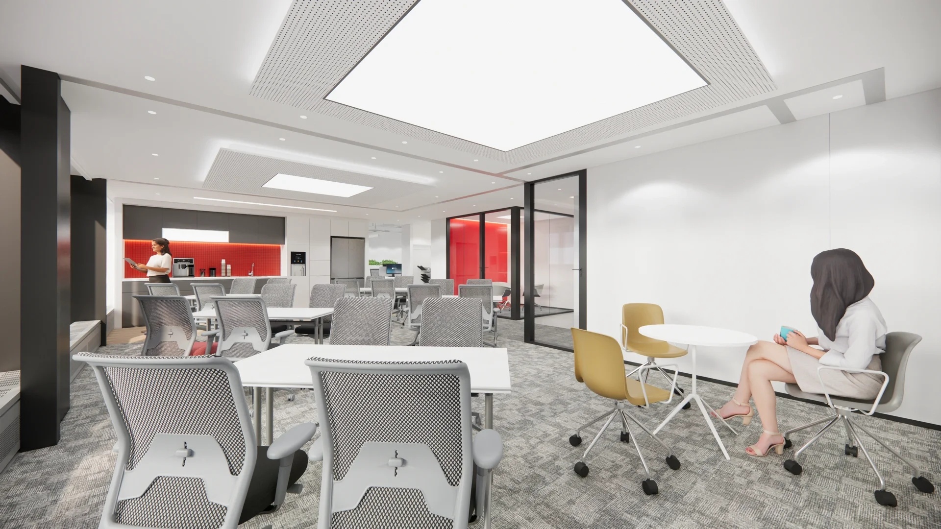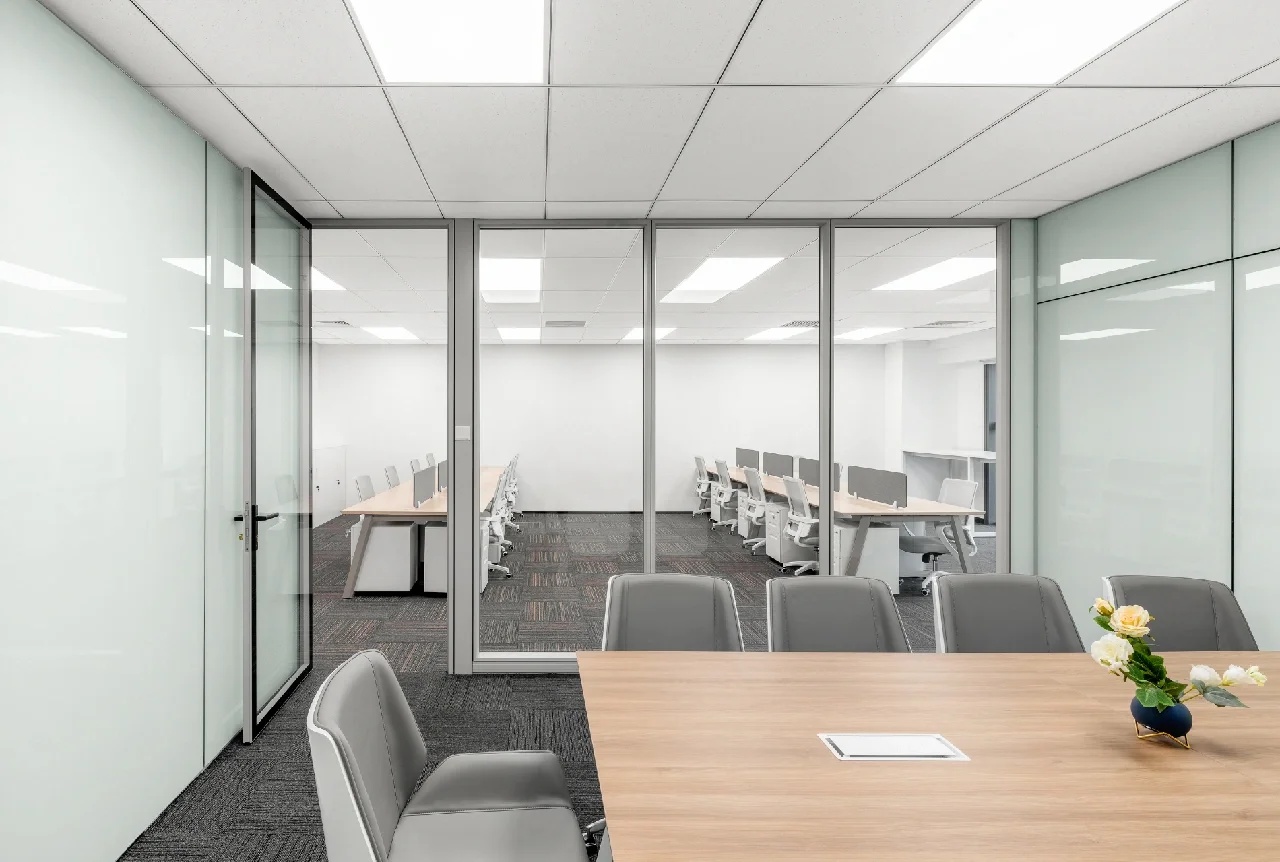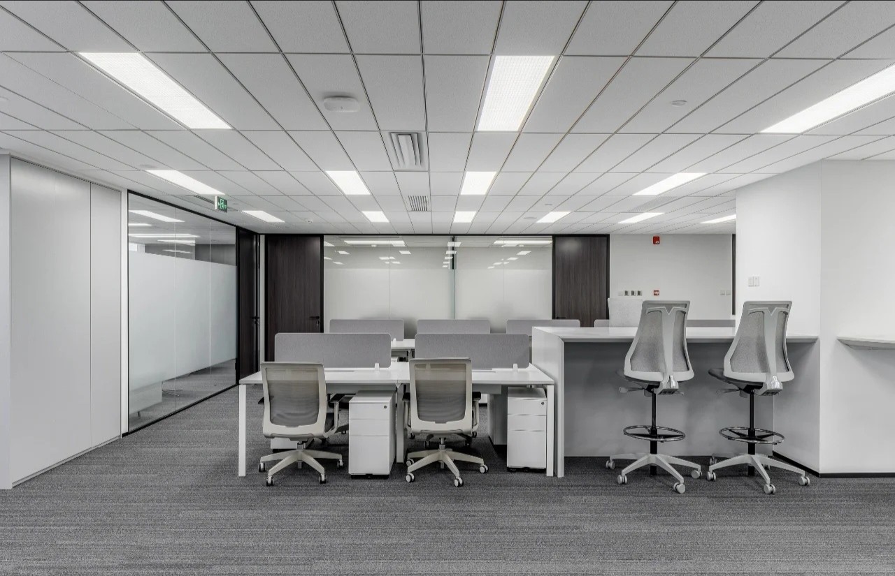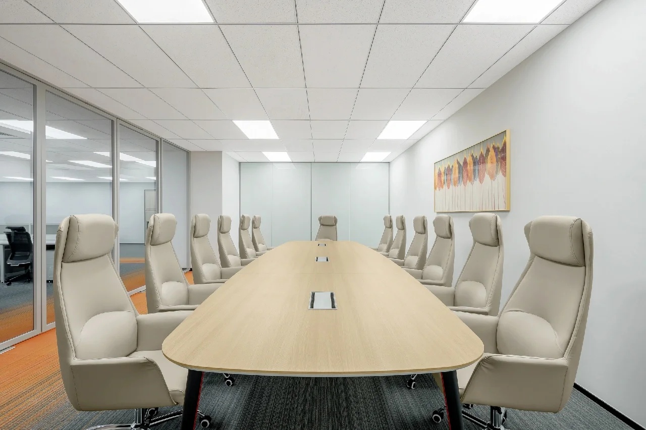 该案例为一个L型500㎡的办公空间,考虑到办公日常需求,设计师在布局方面将部分空间改为双层,将空间利用最大化来满足日常办公的需求在材料方面,地面统一采用了灰色的水磨石,墙面和隔断则采用仿木地板拼装。