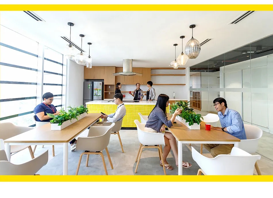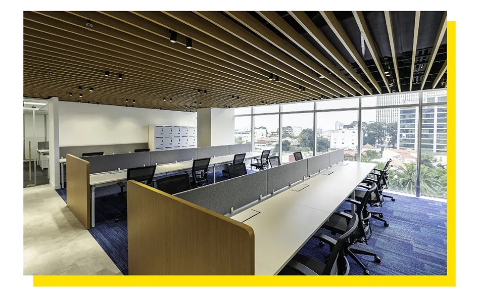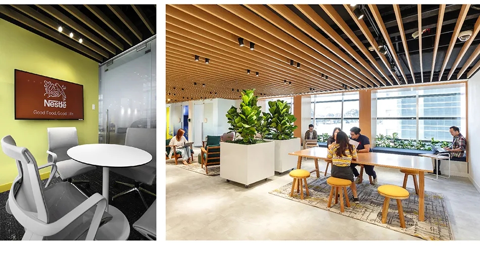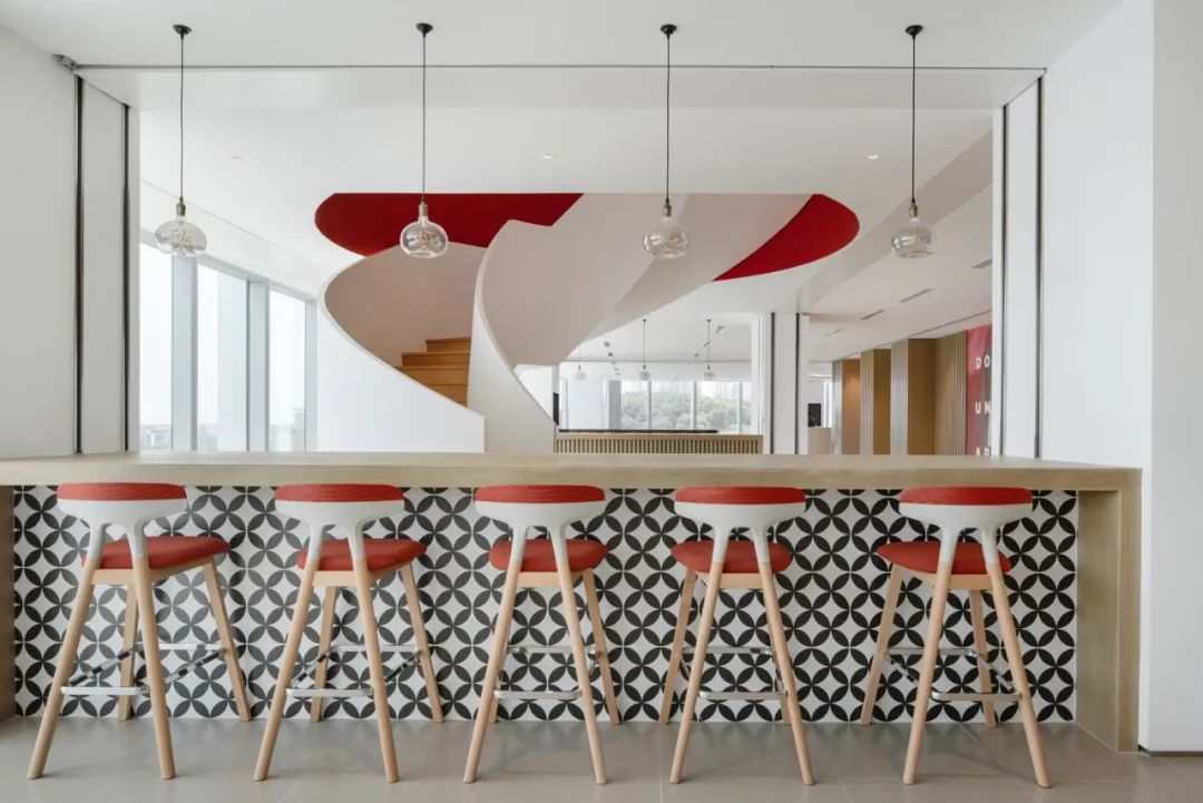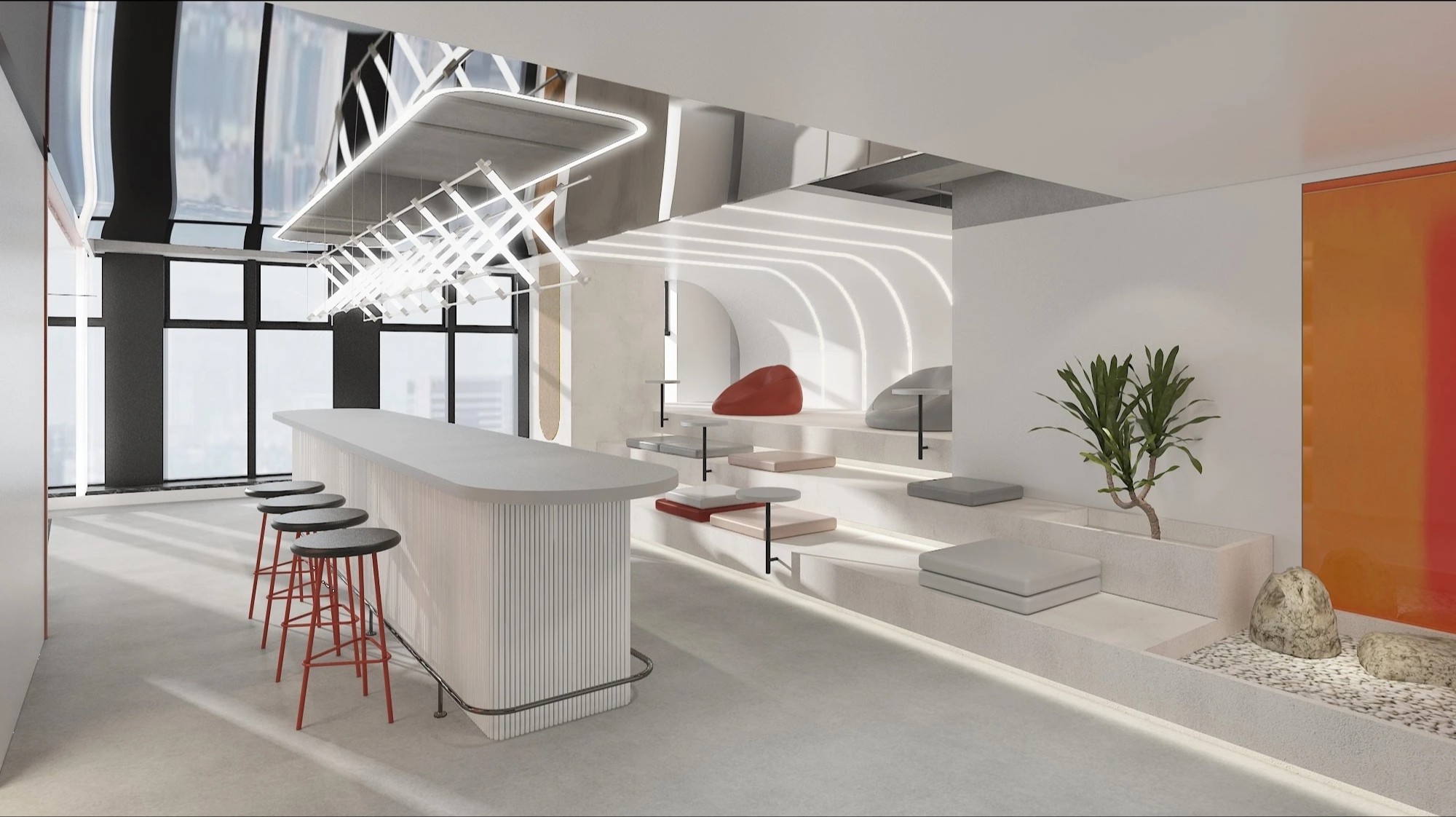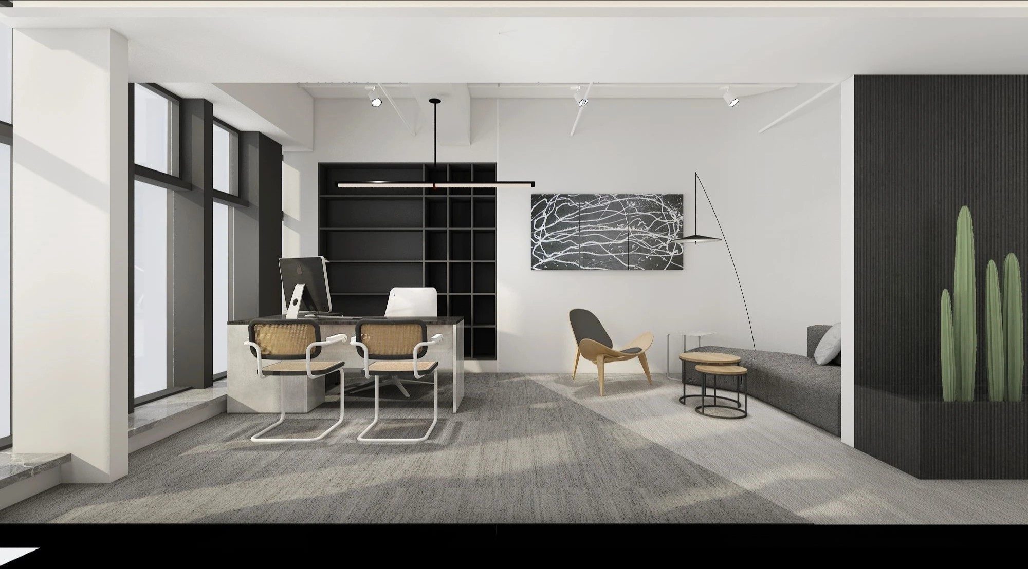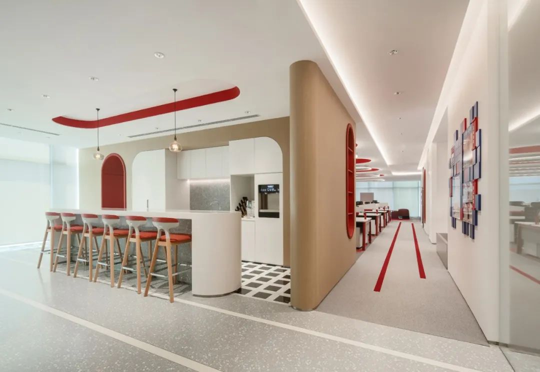 色彩的把握能控制空间情绪。开阔的前台及等候区呈现第一视觉印象亦可谓初见。橙、黑、白相互之间的搭配画面十分和谐。新时代的办公空间象征着人性化的更新,办公空间设计不仅带来审美上的愉悦,更为成员营造真切的“灵感激发”气氛场。所以置身于这样一个时代,办公空间设计无法缺少【柯布西耶】艺术化的造诣。