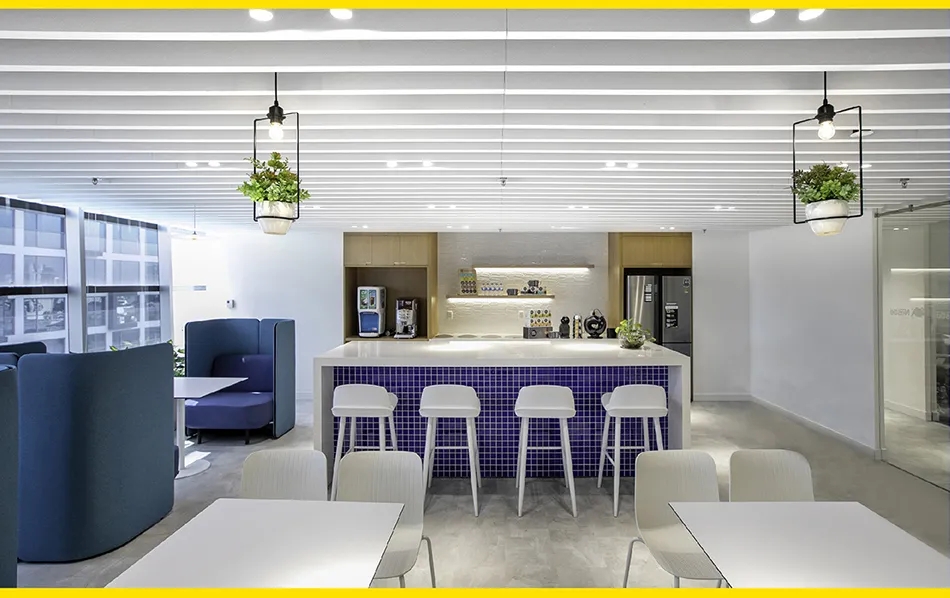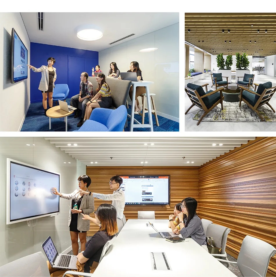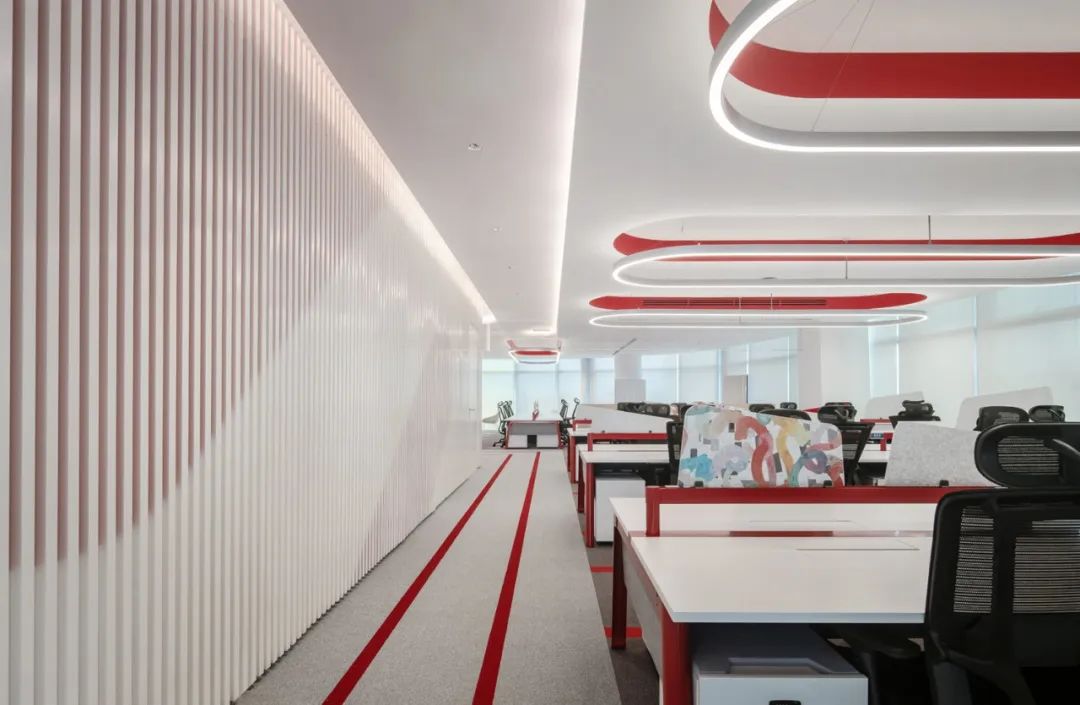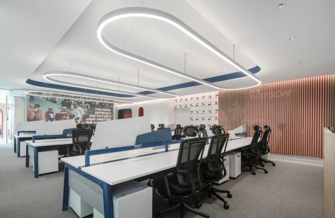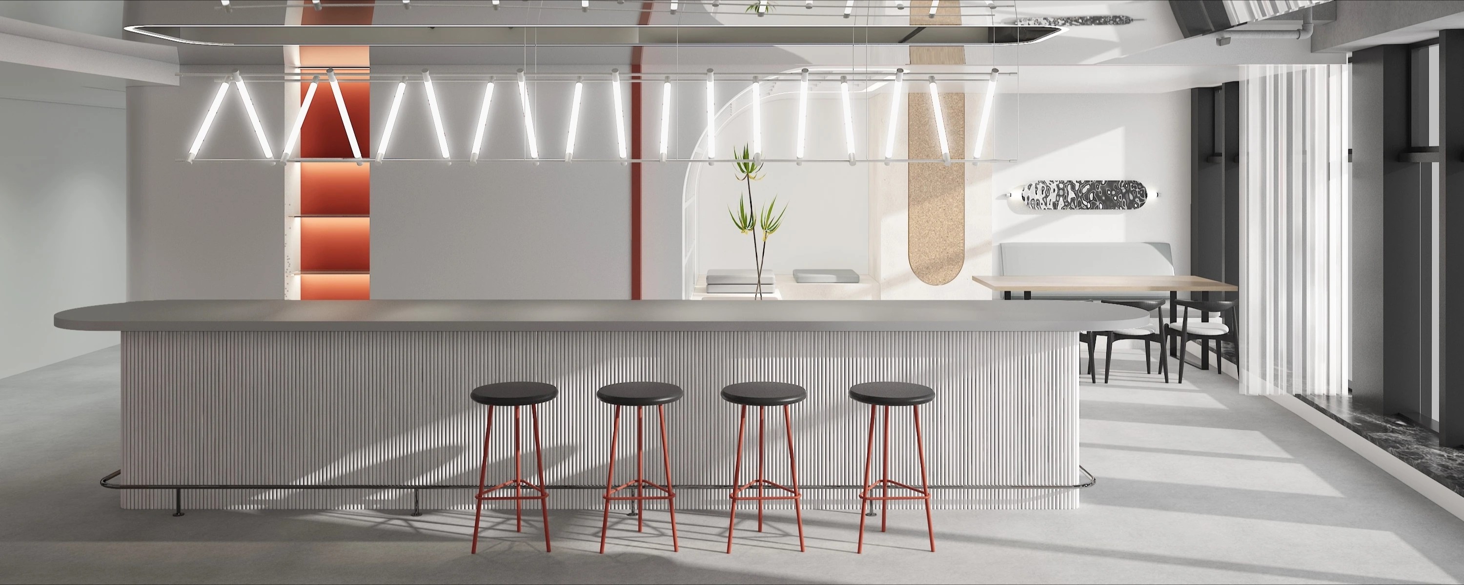 选择了具有科技感的直线灯元素,配合着有秩序的支架,撑起空间质感。自由开放且艺术的的办公环境,使员工随时随地都能找到与其工作相符的环境归属感。空间的形式在光线的存托下,光影交错,原有的面貌正在变化,空间维度上更具宽阔之感。诸多细节功能空间,用简洁的设计、色彩、光线,让好的建筑、好的艺术、好的空间有机互动,彼此独立而又相互辉映。在这样的空间里,我们能看得到富有无尽创造力的未来。