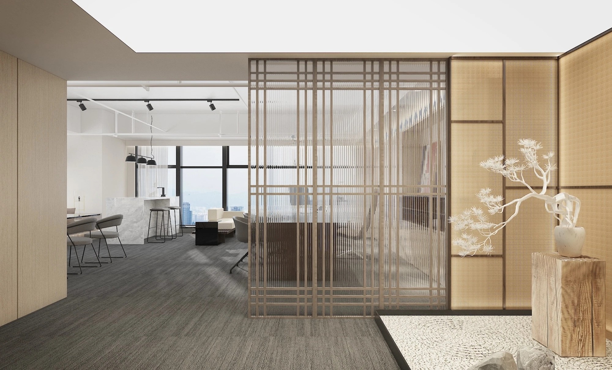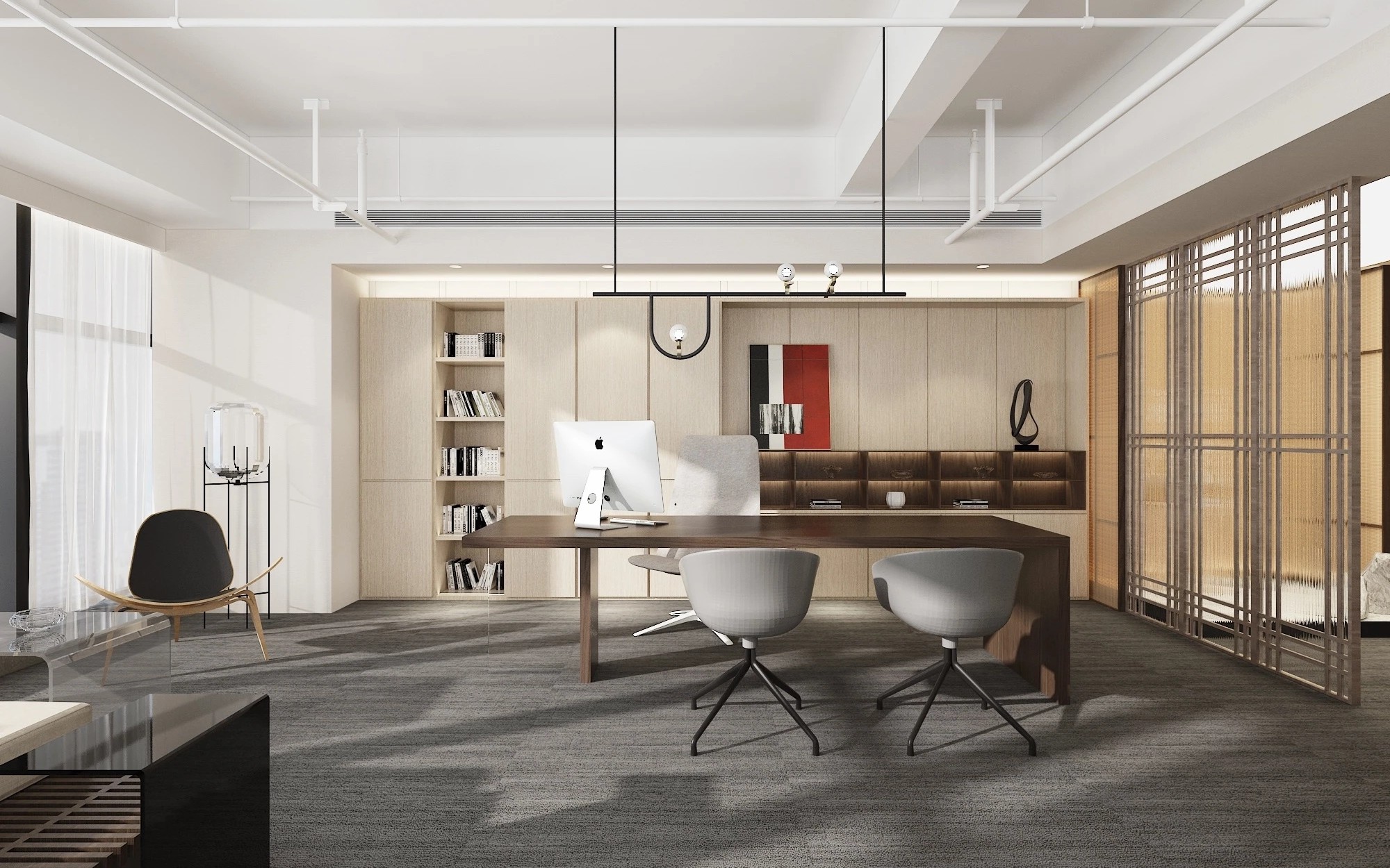 BOSS办公空间看似脱离整体之外的存在,其实不然。轻度的禅意点缀与现代感灯饰及软装陈设的完美融合既满足了使用者希望在写字楼享有宁静氛围的诉求同时也保留了功能空间该有的干练整洁和舒适感。色彩沉稳,空间统一,细节之处亦可圈可点.