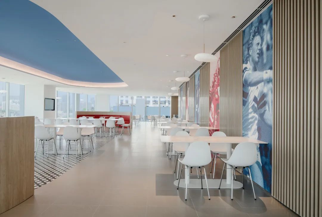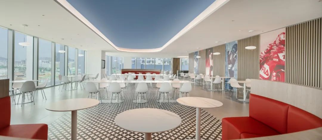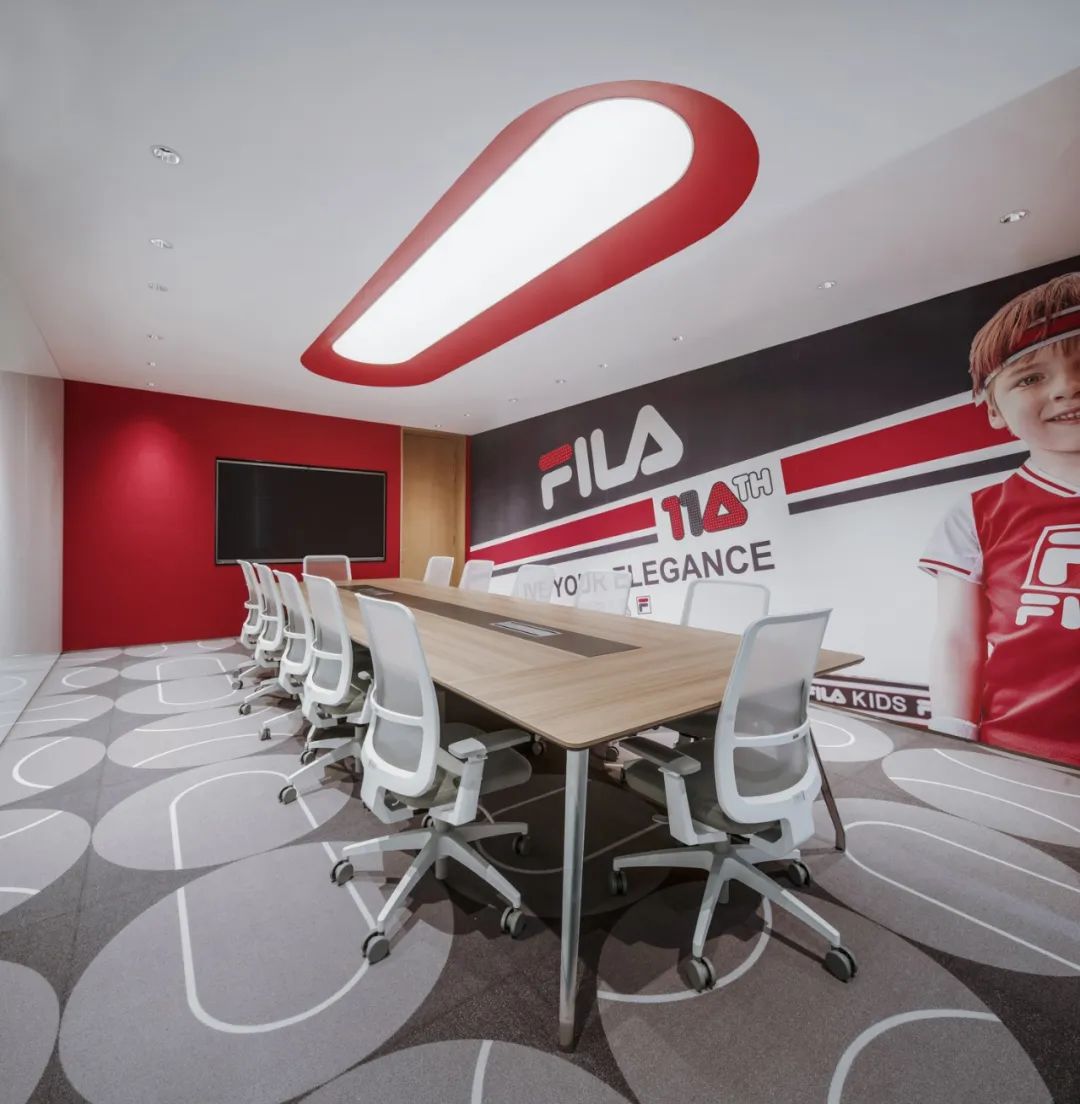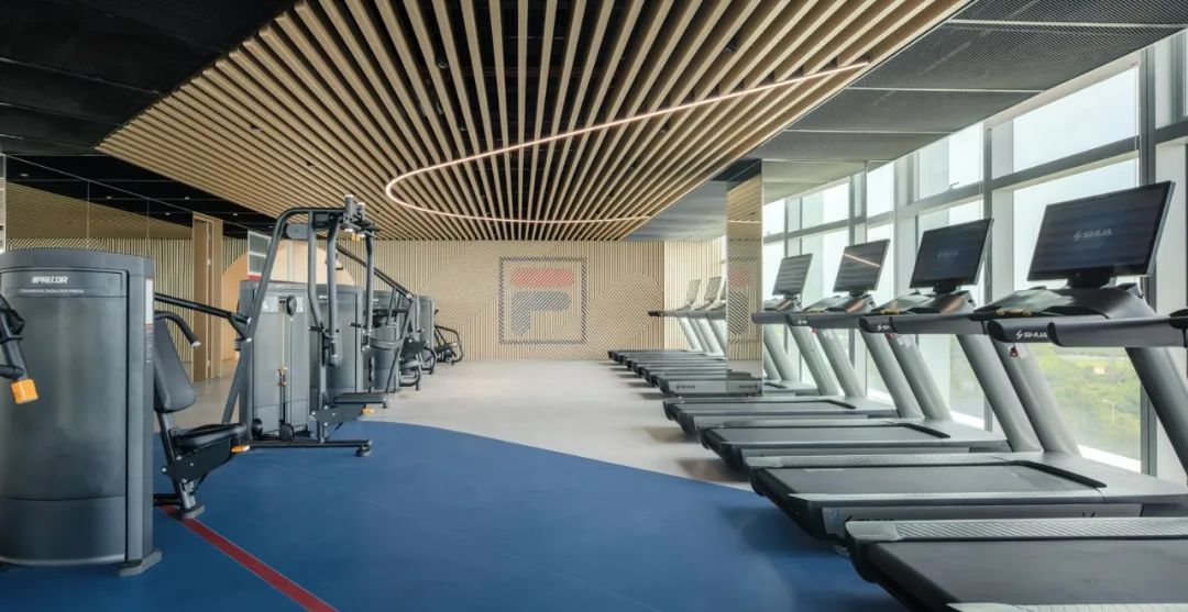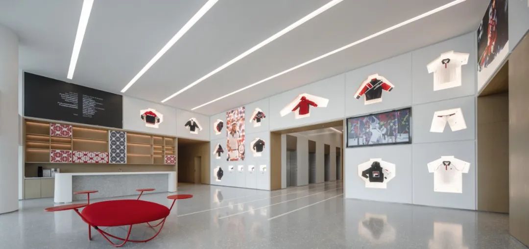 为了使员工们有更强健的体魄,办公楼在六楼设有超过400m²的大型健身房,配置先进的健身设备,为员工在工作中提供健康的生活方式。18楼特别设置的产品展示区和历史回顾墙,展现了FILA经典的、具有代表性的衣物和鞋子。