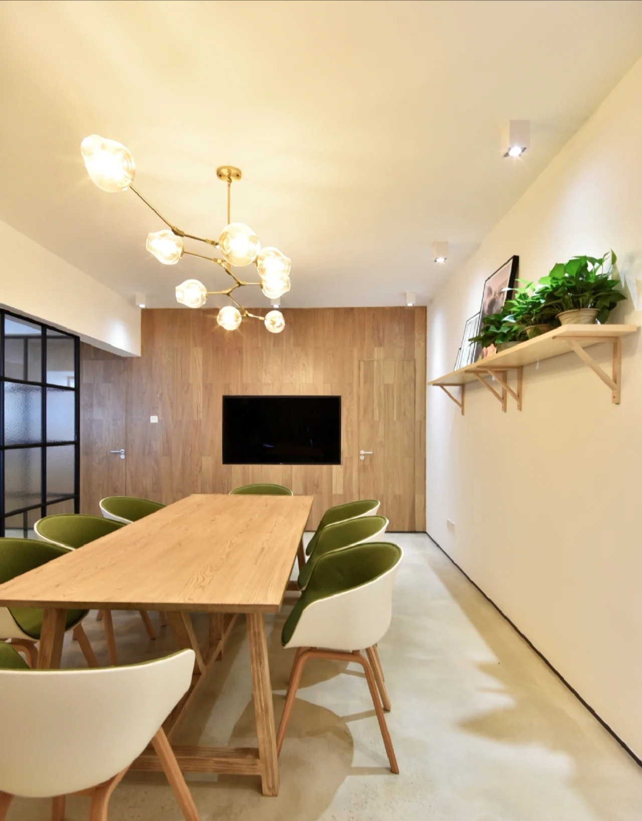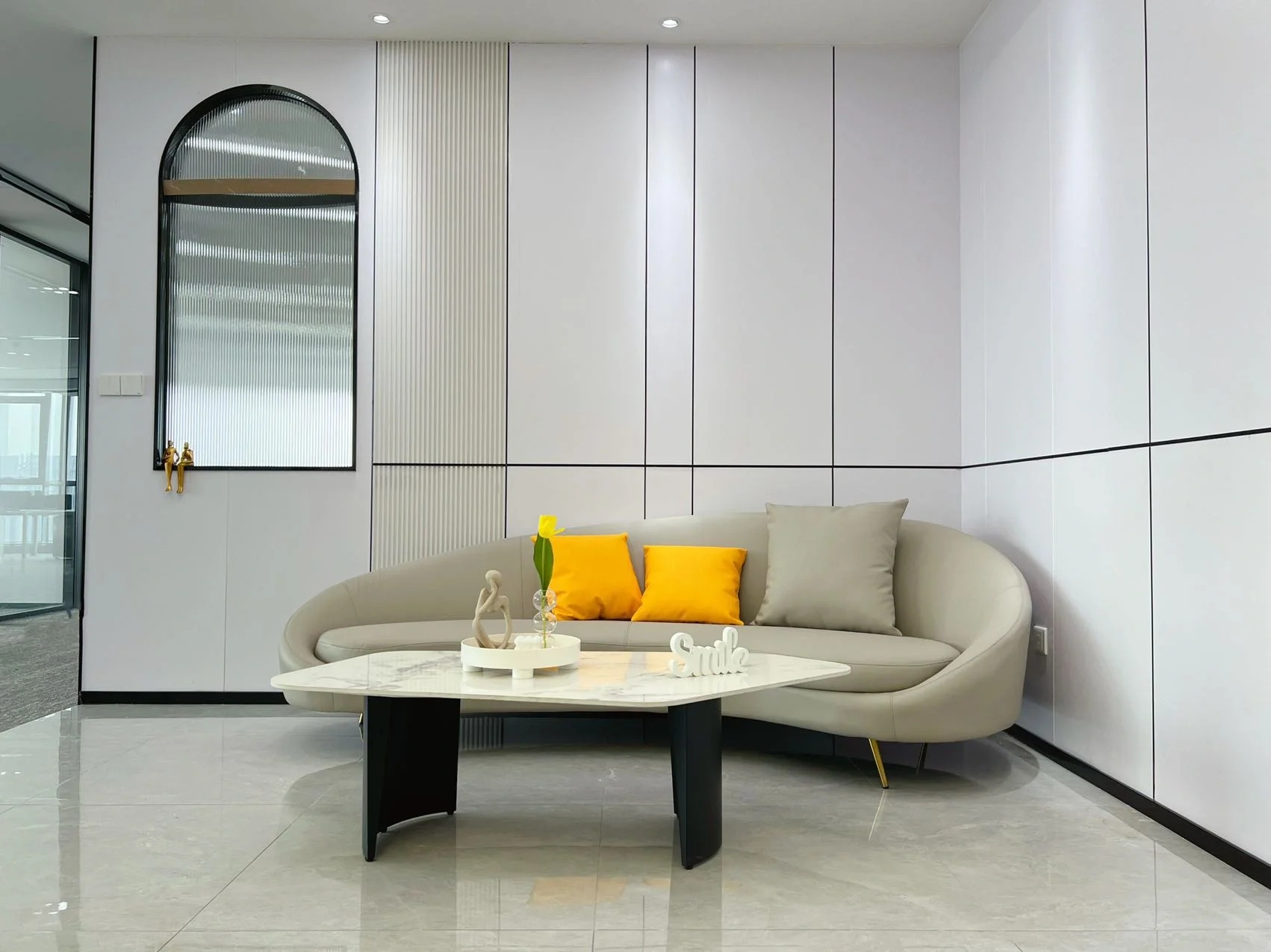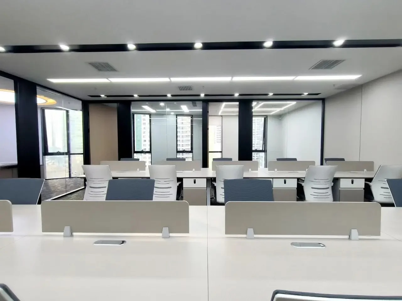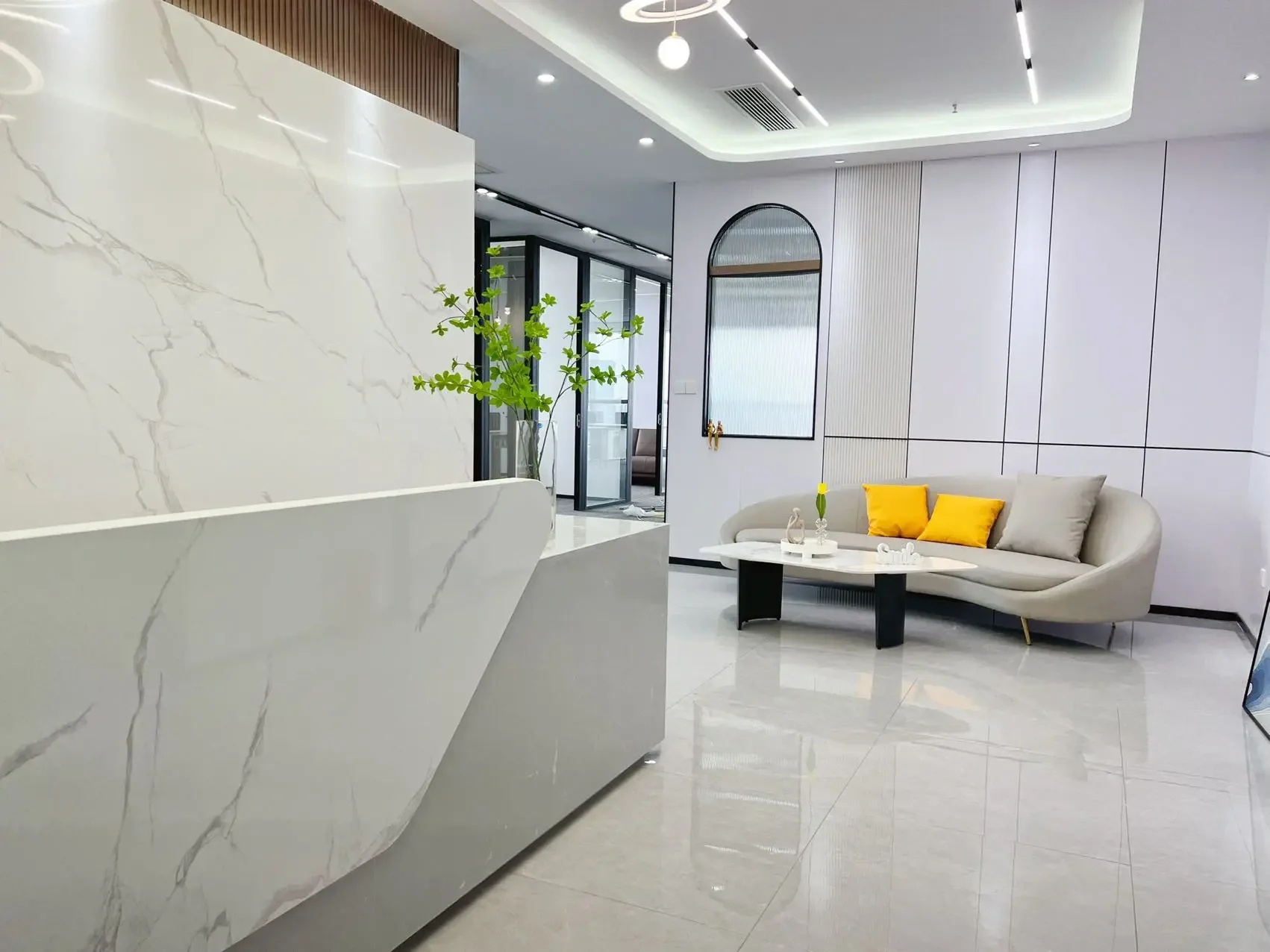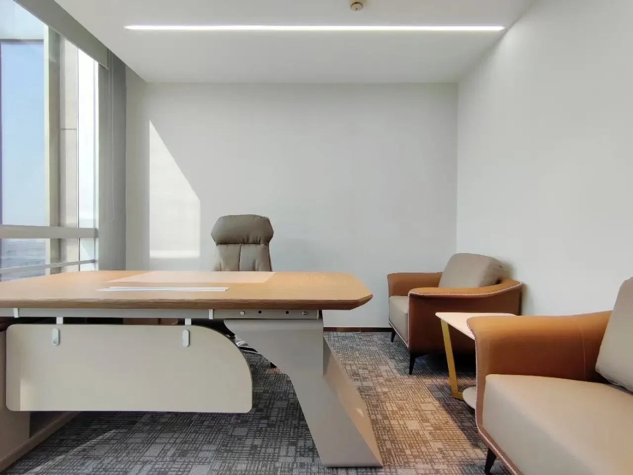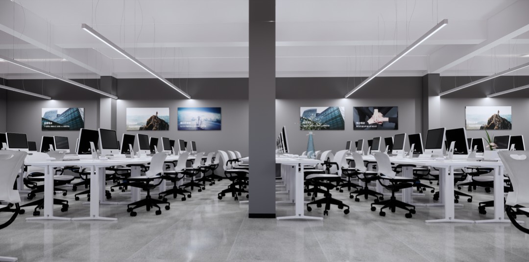 前台设计秉持着内外界限相融的概念,使外部空间向内渗透同时内部空间向外延伸,相互作用形成空间的延续。一缕阳光洒进室内,接收来自大自然满满的能量,使整个空间朝气蓬勃。办公区风格秉承现代时尚简约的设计语言,力求凸显力量与空间质感。开放办公区顺畅流转,让自由感在空间中流动,极大地方便使用者的协作与交流。通过简约的空间设计发挥出极强的表现力,让功能与视觉表达相一致,清爽大方地出现在视线之内,传达出设计的真实。