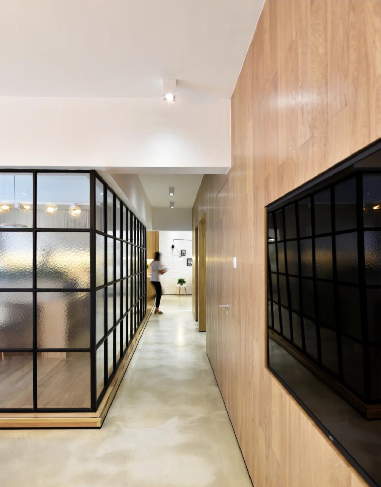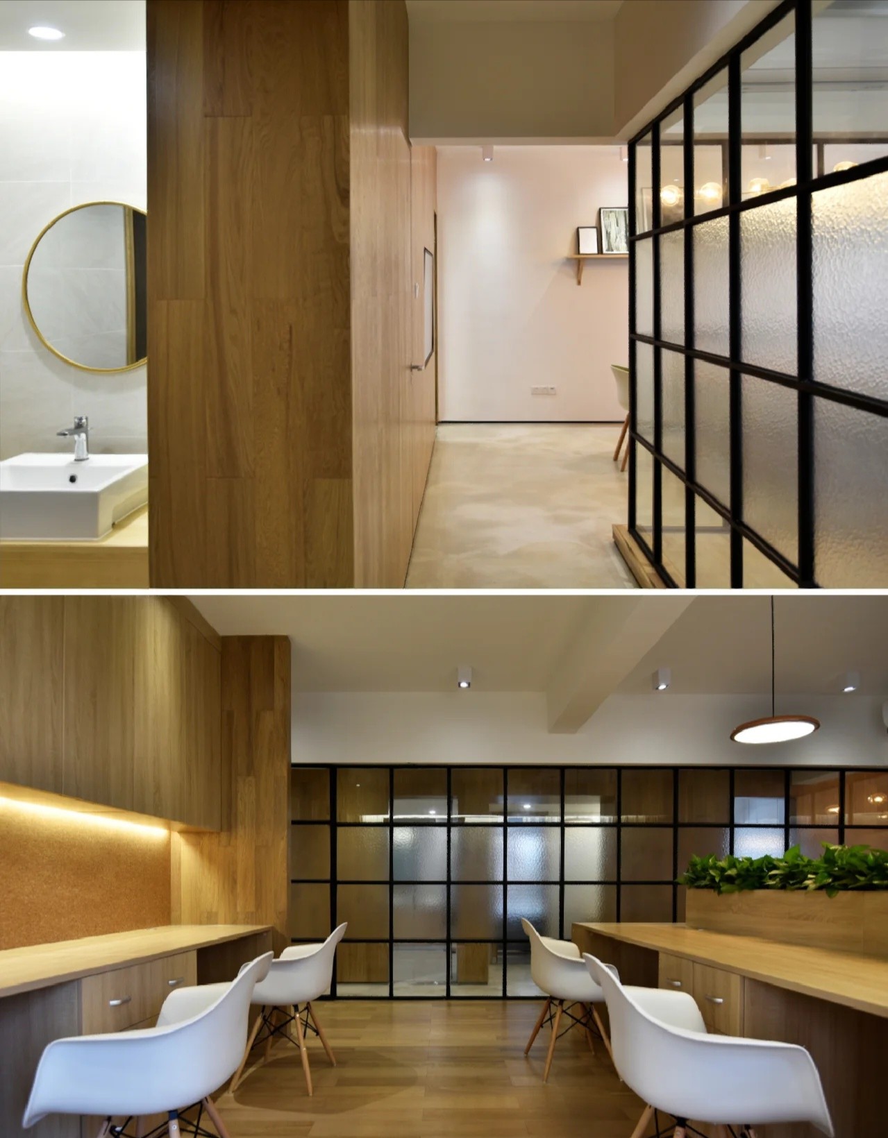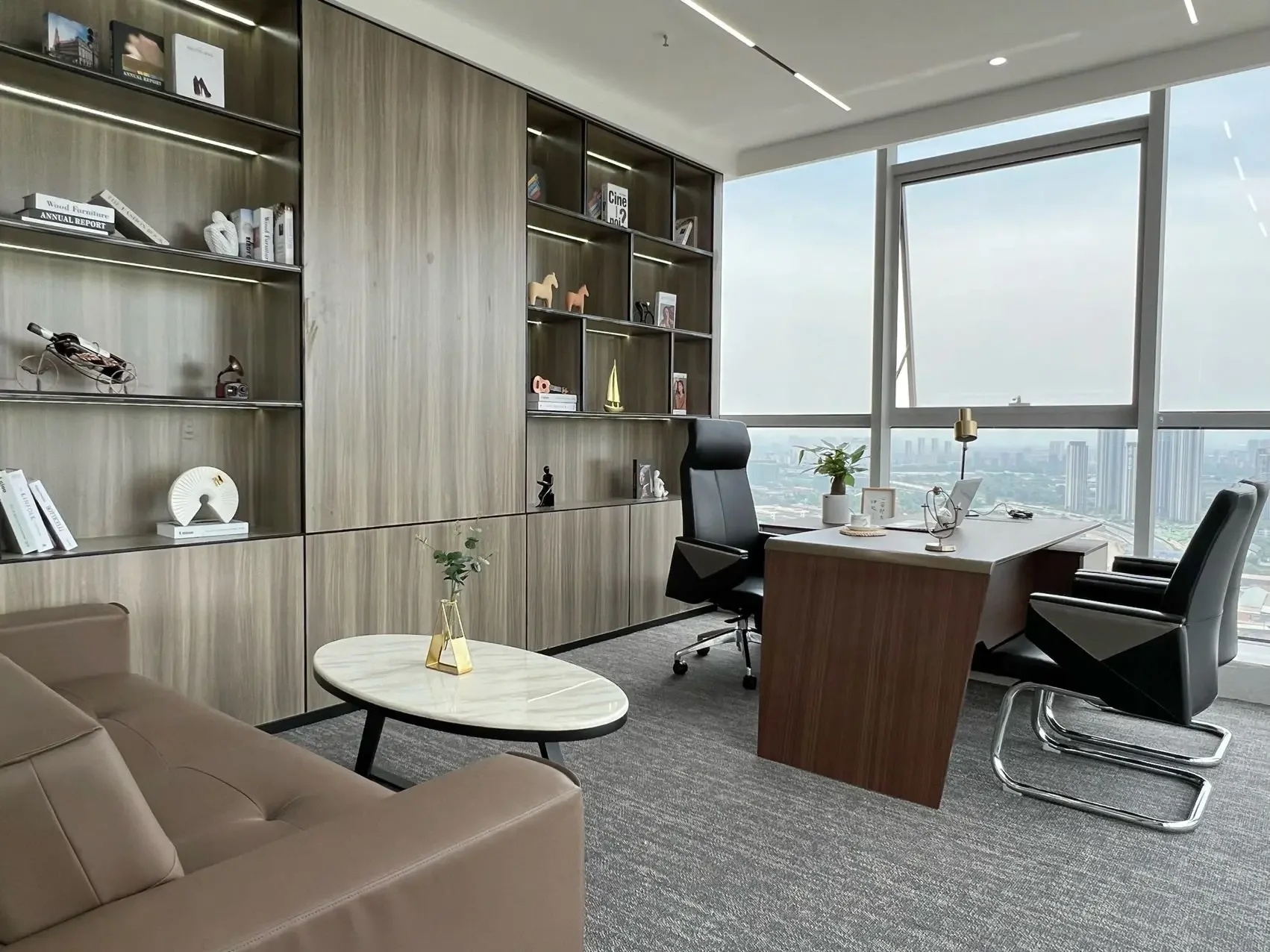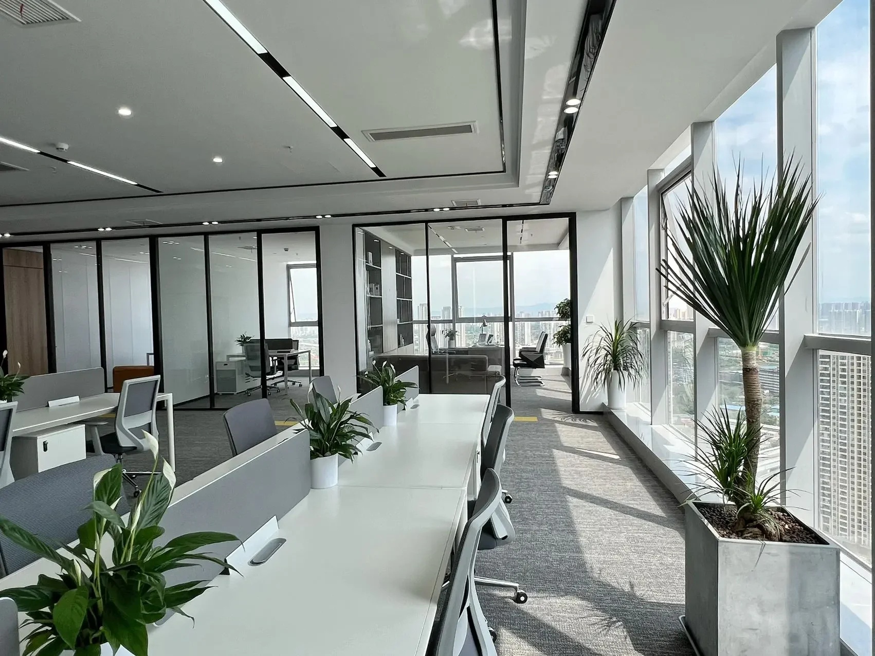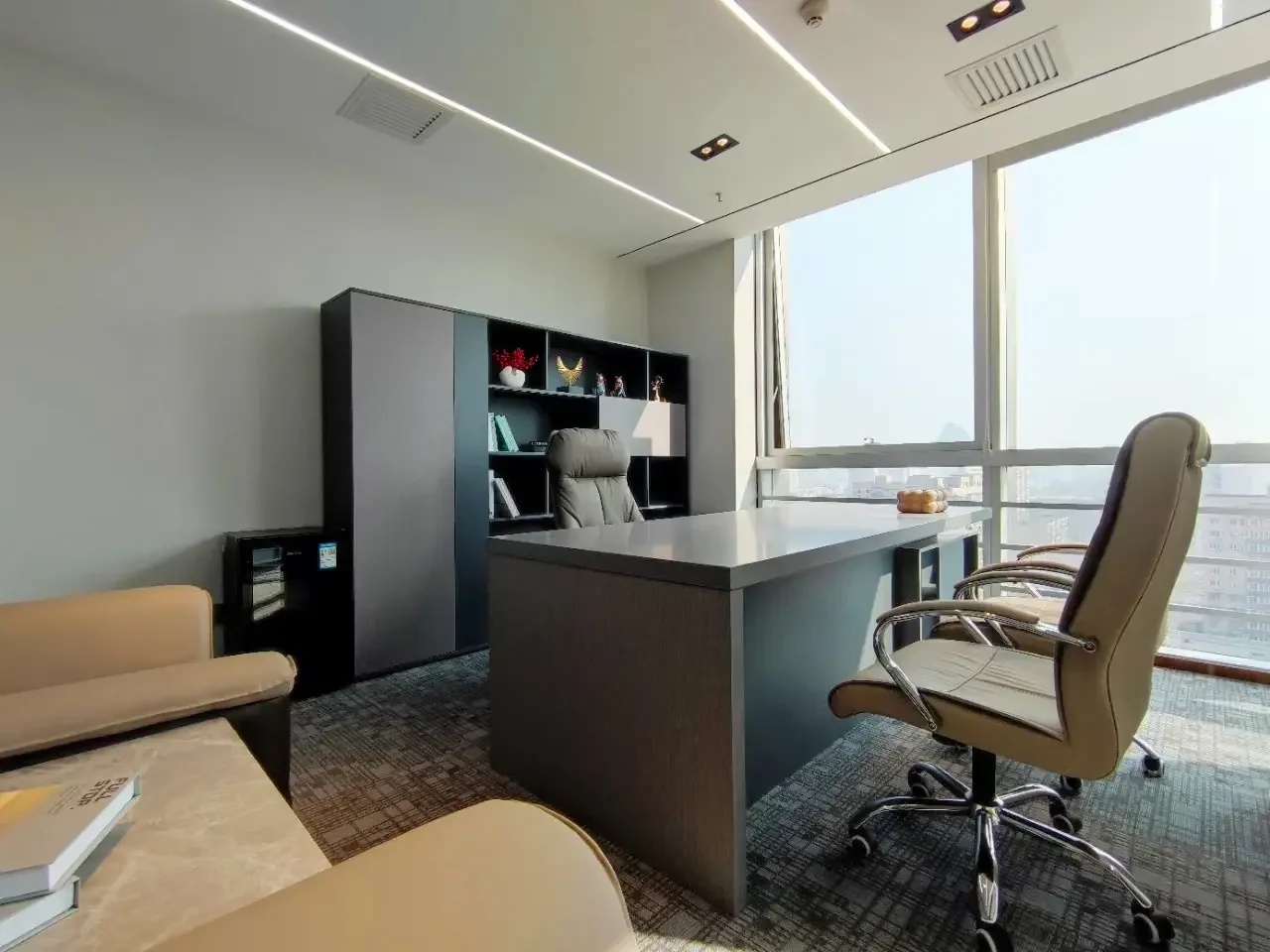 前台设计秉持着内外界限相融的概念,使外部空间向内渗透同时内部空间向外延伸,相互作用形成空间的延续。一缕阳光洒进室内,接收来自大自然满满的能量,使整个空间朝气蓬勃。办公区风格秉承现代时尚简约的设计语言,力求凸显力量与空间质感。开放办公区顺畅流转,让自由感在空间中流动,极大地方便使用者的协作与交流。通过简约的空间设计发挥出极强的表现力,让功能与视觉表达相一致,清爽大方地出现在视线之内,传达出设计的真实。