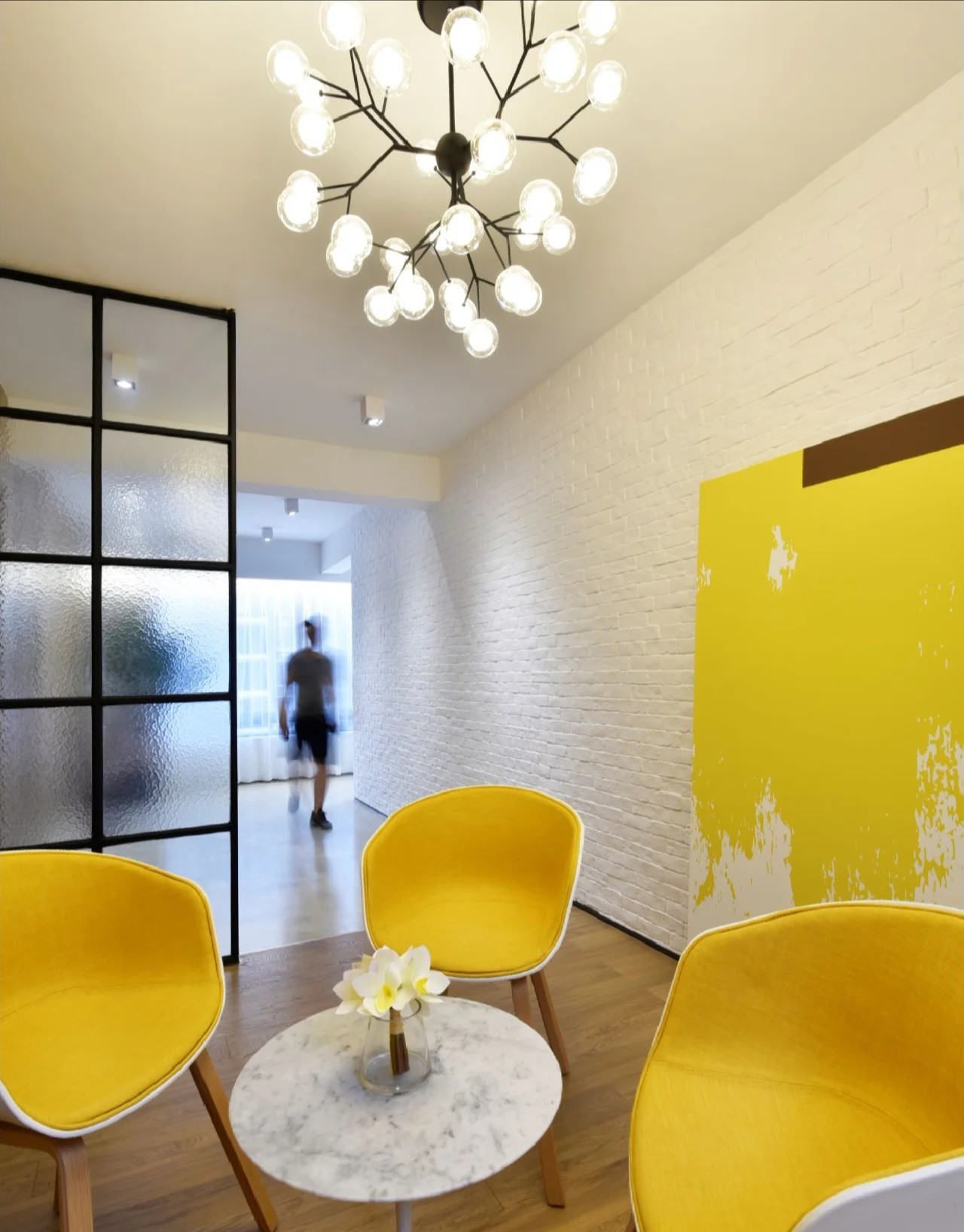 前台简洁大方,以规则的五彩斑斓的线性灯装饰,增加了空间的活力感。运用灯光与色彩冲击视野,展现创意十足氛围环境。
