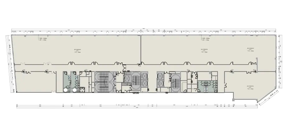 原始结构是一个1600㎡的长条形办公空间,面积充足但它的主要问题在于公共走廊比较狭长,与办公区的隔断墙显得空间比较昏暗幽闭,办公环境不够明亮通透,体验感不佳。大通间的原始格局没有考虑到不同功能的个性化需求。