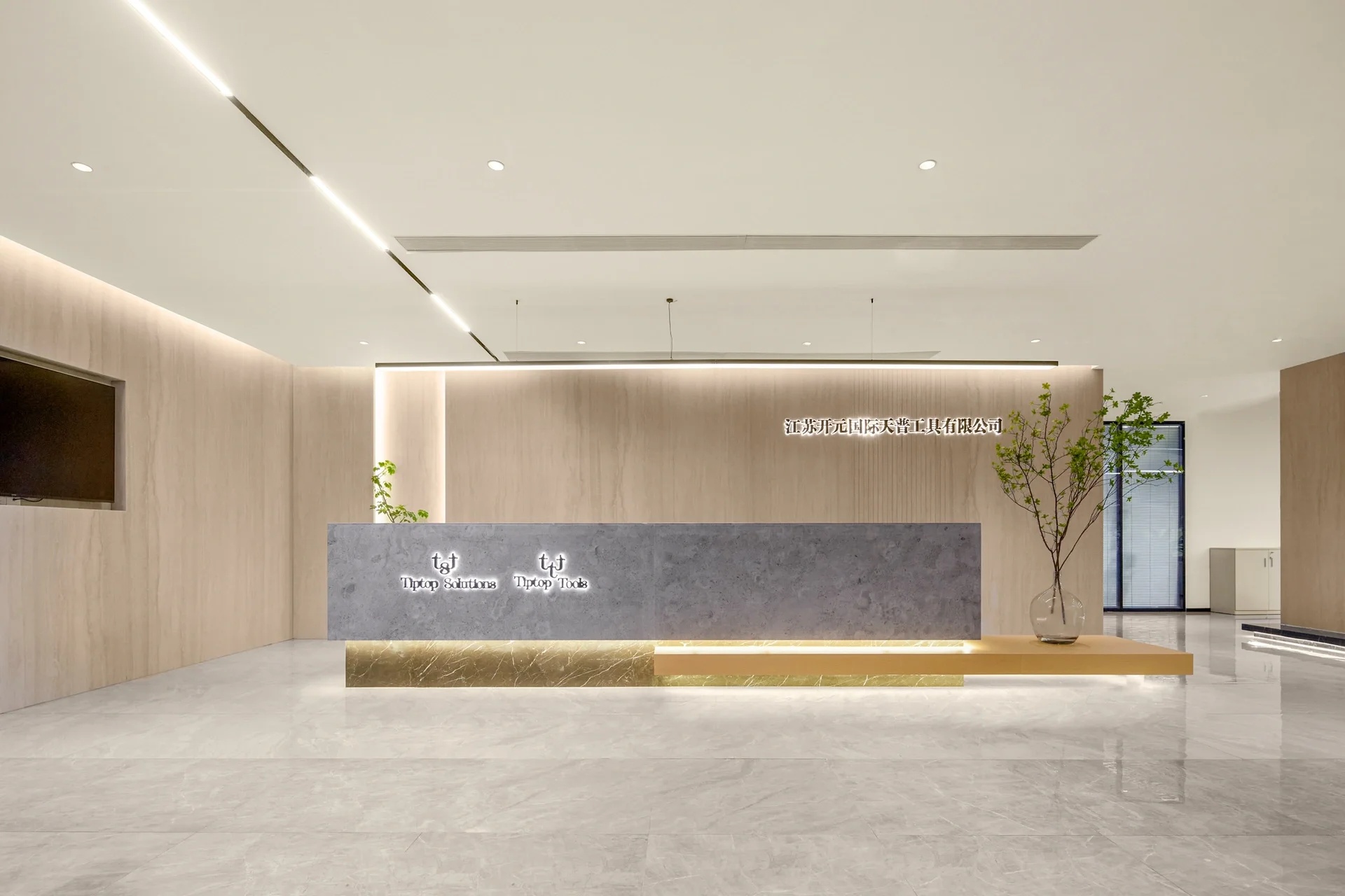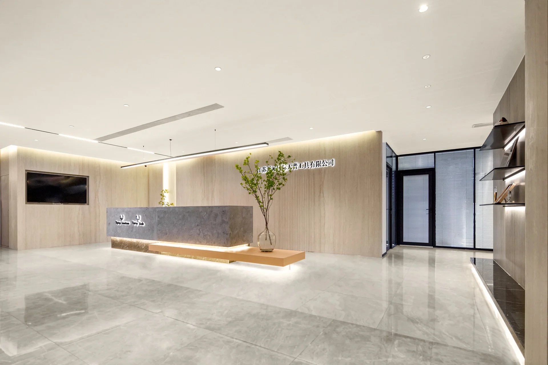 电梯出来是公司的门厅空间。