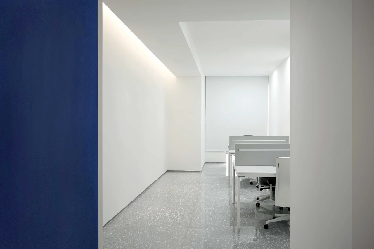 空间导视设计与极简的空间设计语言统一,将明亮的过道空间与企业文化语境结合,空间体感愉悦,并激励人心。