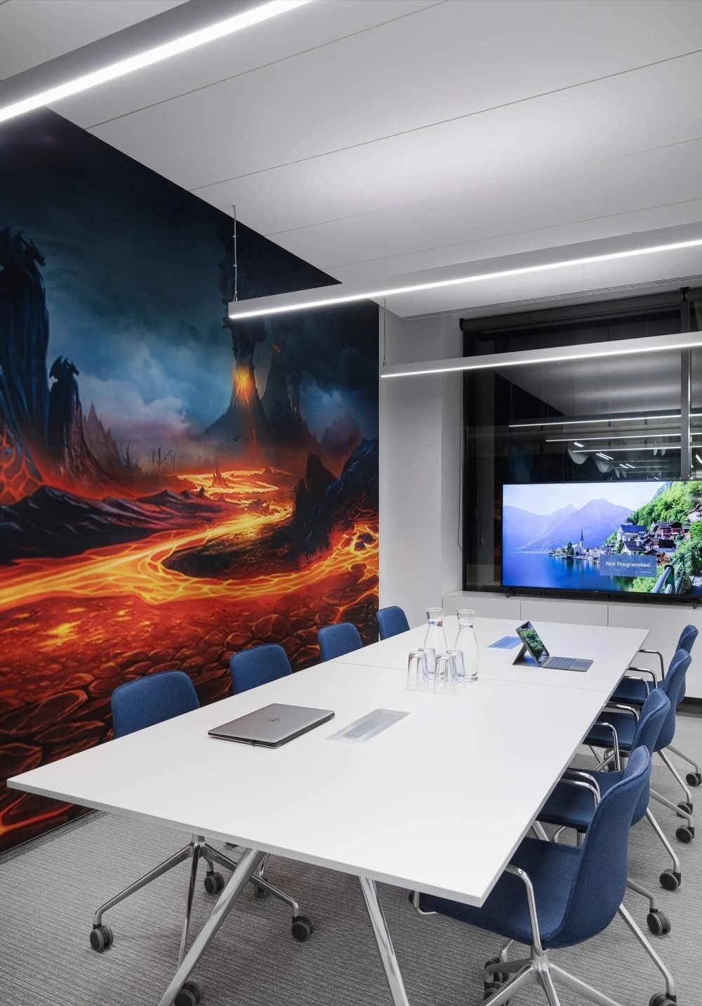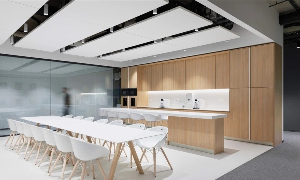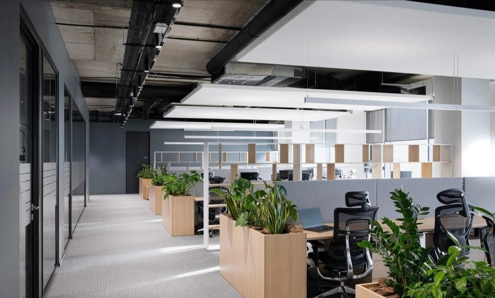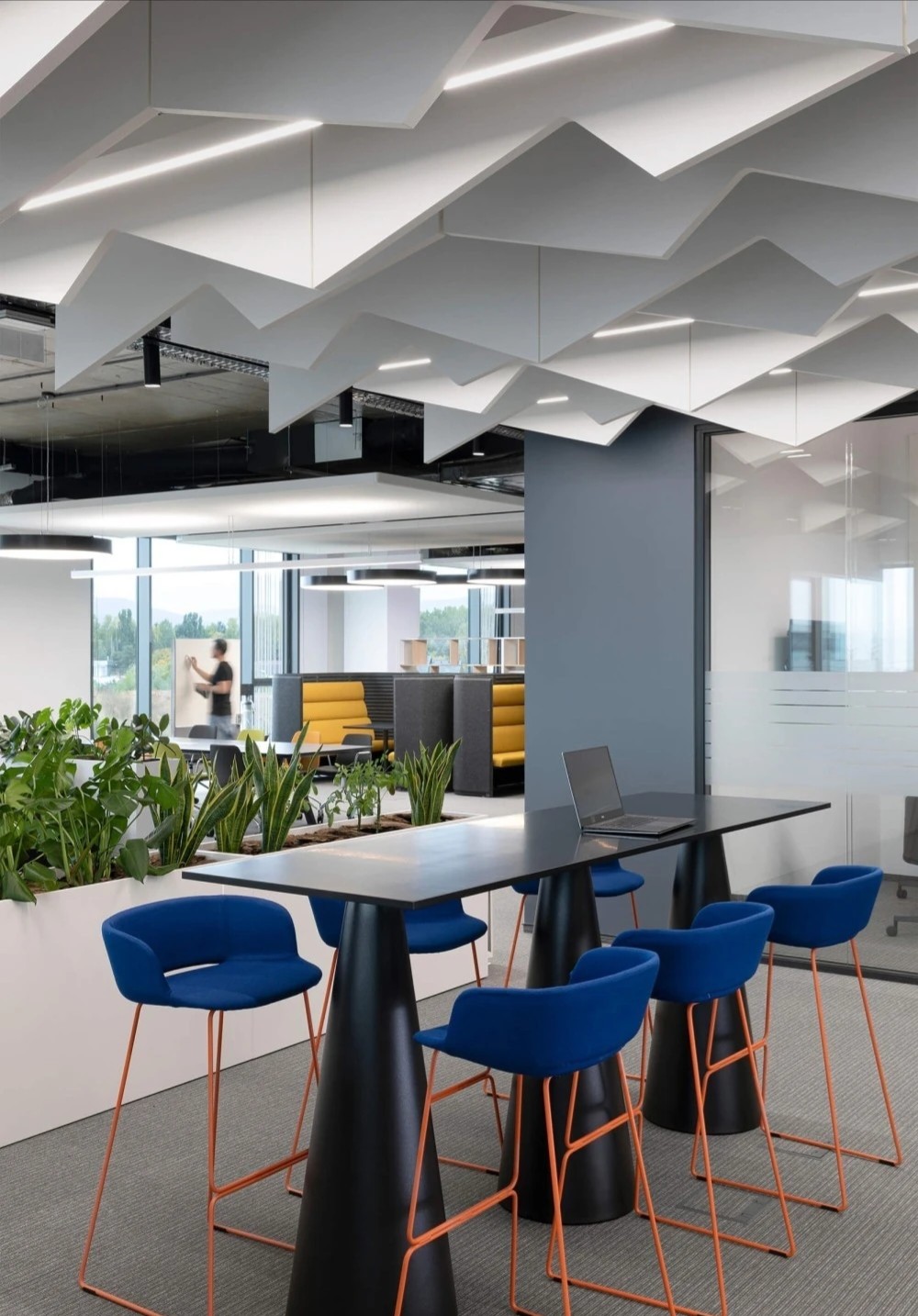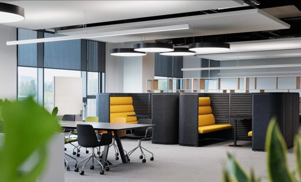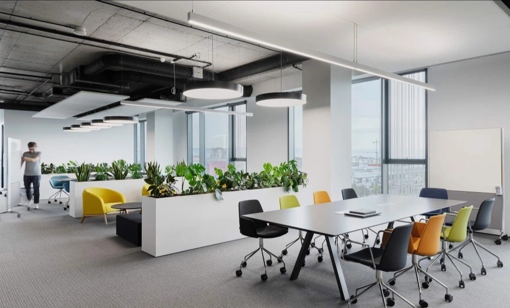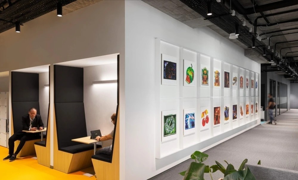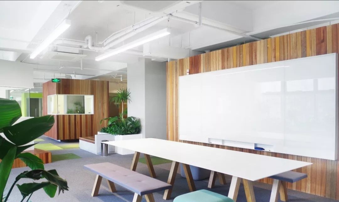 开放工作区沿建筑外窗布局,以最大限度的让自然光洒进室内深处。主题色系的运用是本案的一大特色,直观的映射出活力的企业文化,同时为空间增添了丰富的色彩和激情。