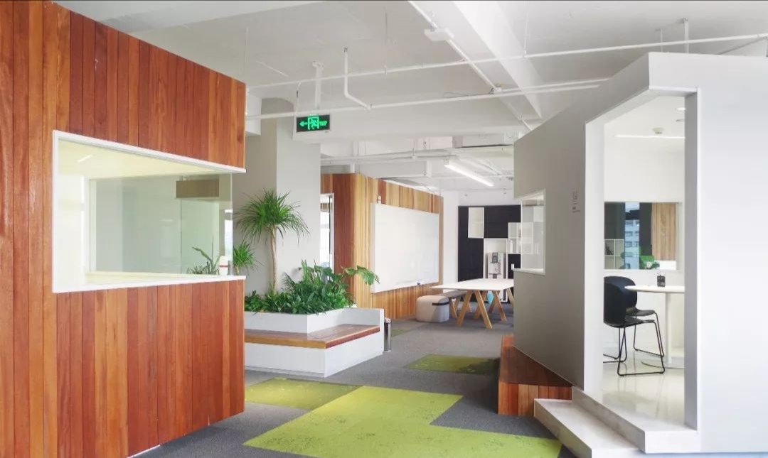 #办公智造# 新总部的设计体现了开放与连接的理念,以灵动多元的布局鼓励分享与交流。设计以盒子的形式通过穿插手法组团,使空间拥有舒适的人体尺度并极好的利用了建筑的采光优势。