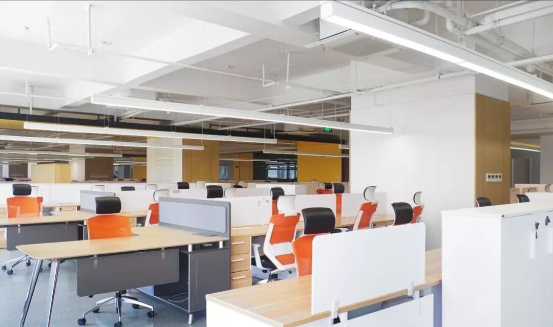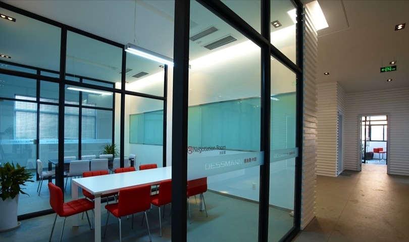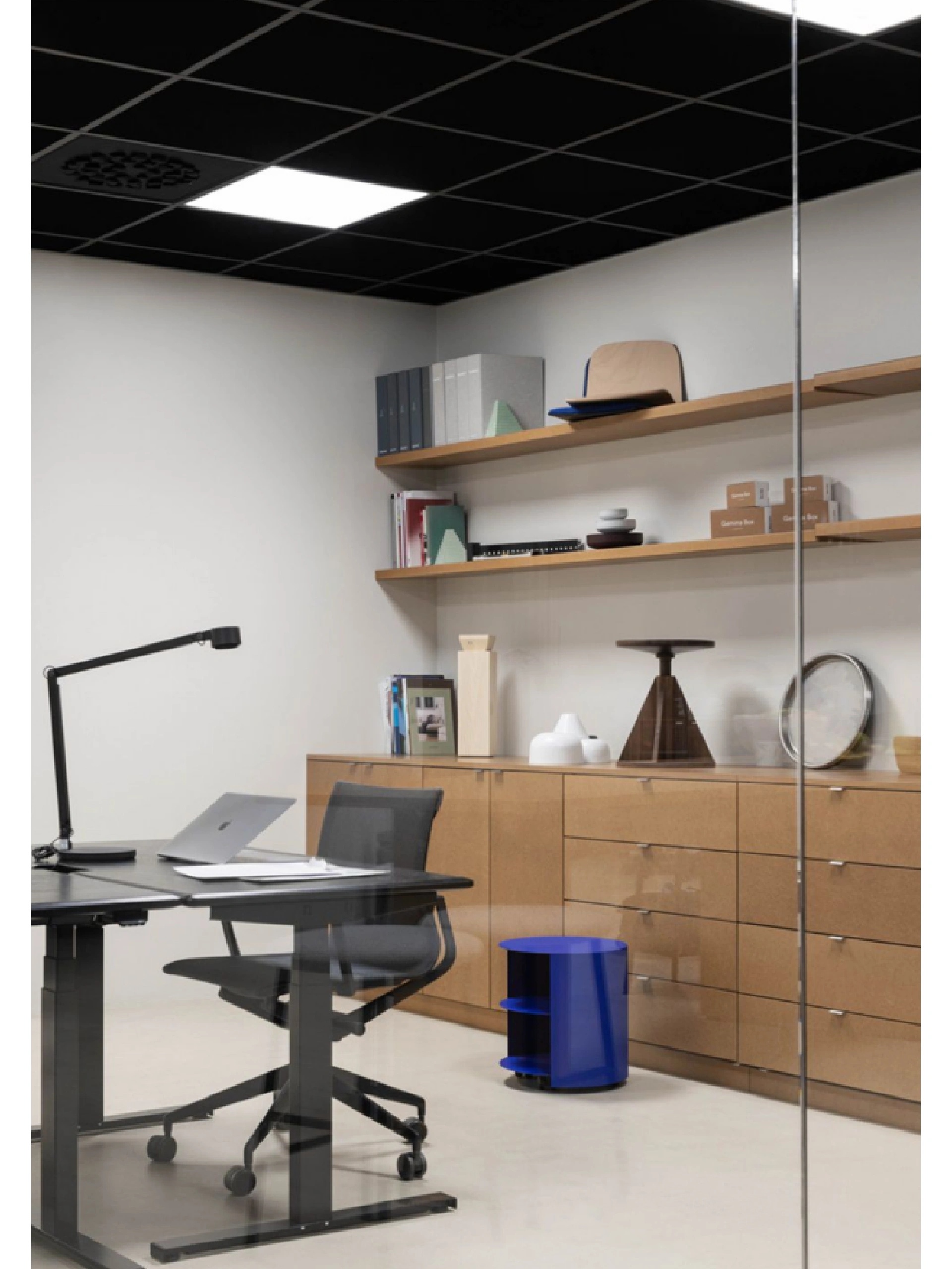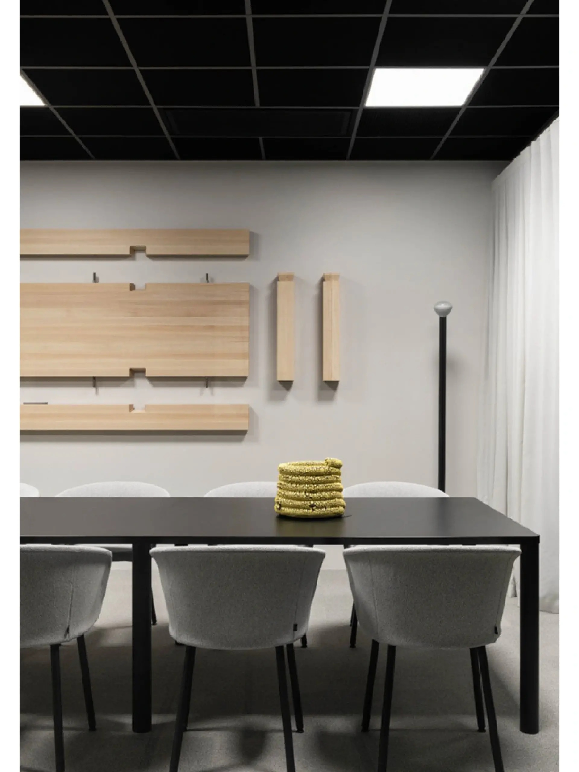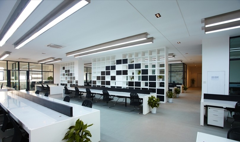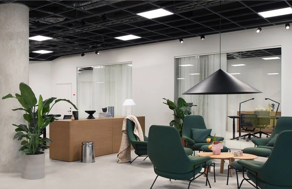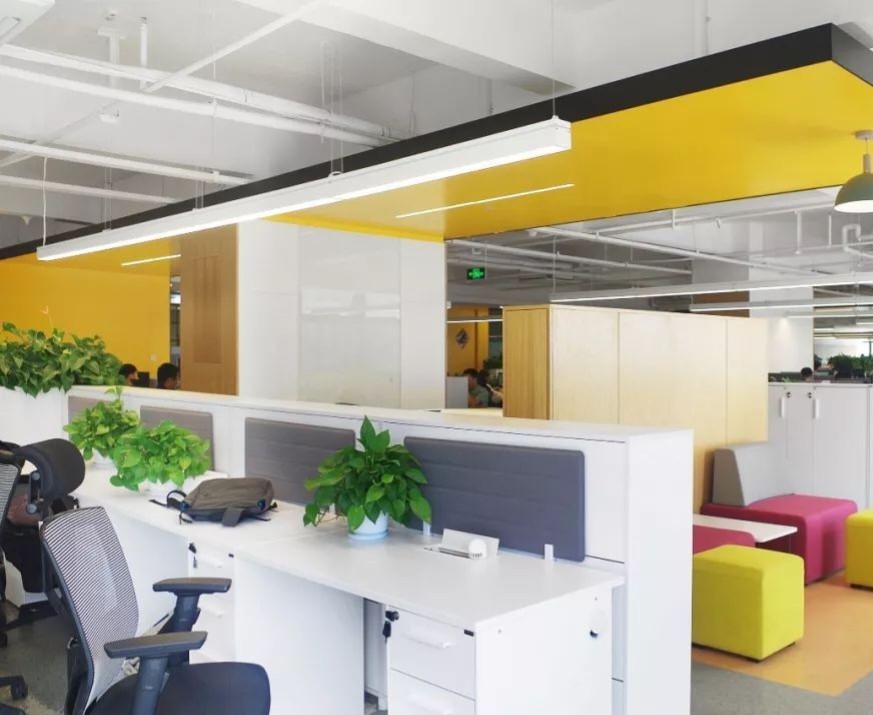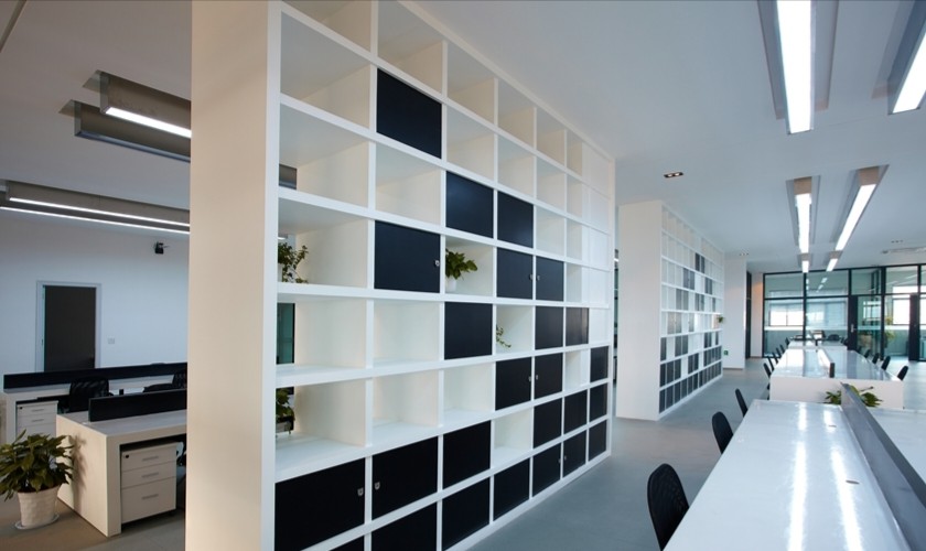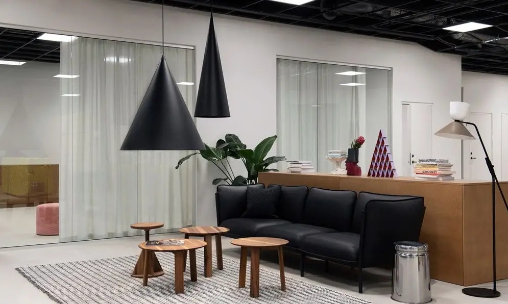 茶歇空间把管道隐藏在顶部,并利用现状设置局部通高空间,形成了空间的凝聚力,展现出干净纯粹的环境效果。