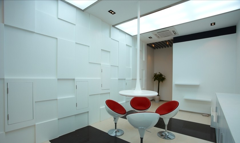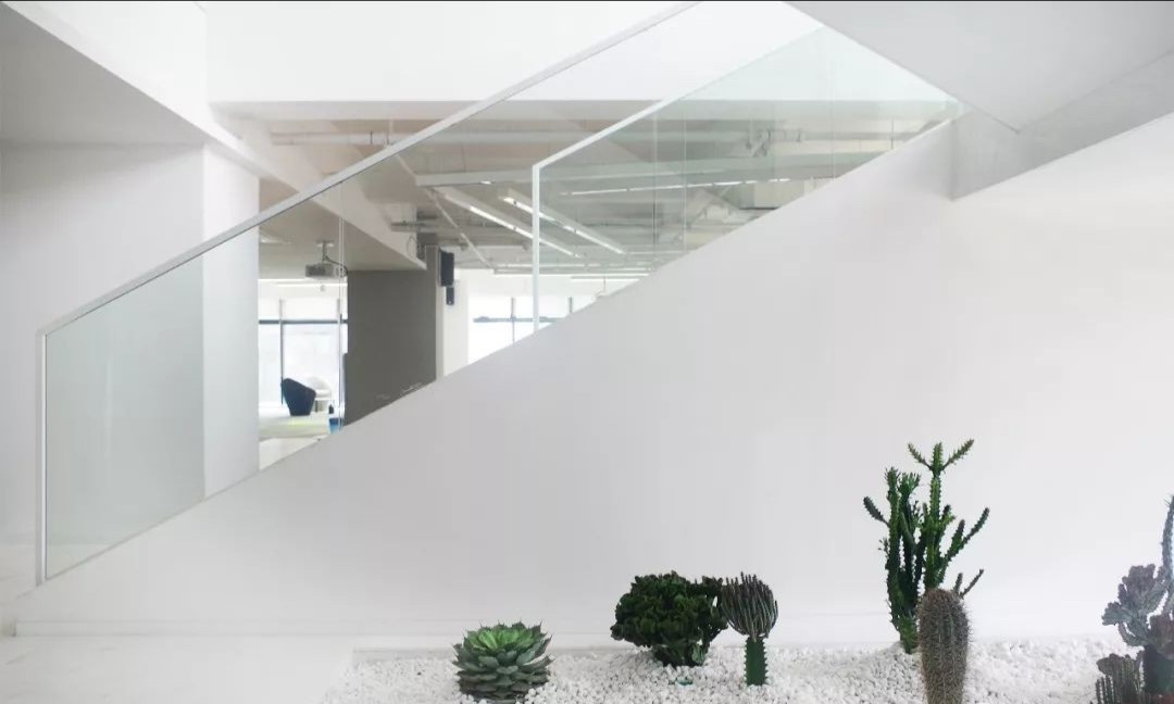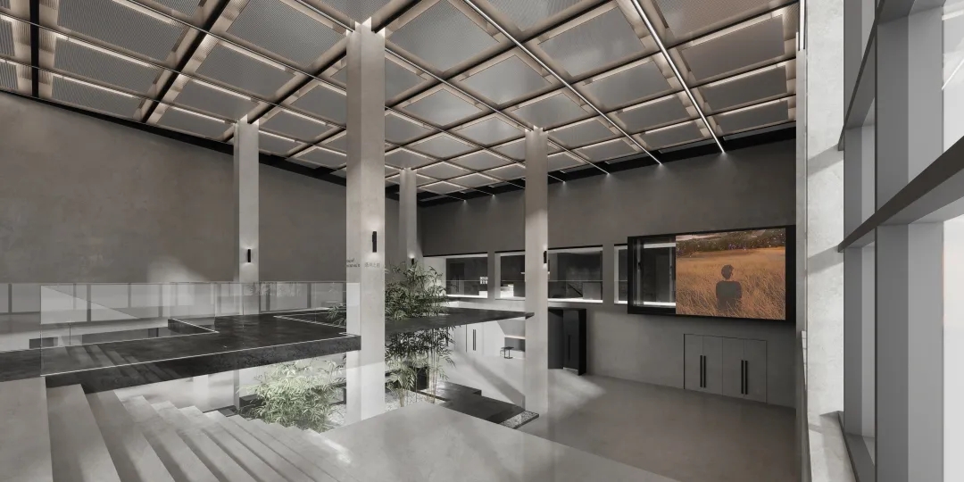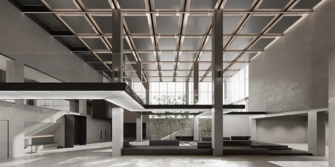 设计师希望利用现状结构,构建一个复合型景观——从入口飘扬蜿蜒进去的一条“悬浮之径”,这条浮径架在前厅通高空间的中央,像一条飘带干净又神秘;在悬浮之径的下方,顺势形成局部景观及部分休闲等候的区域。